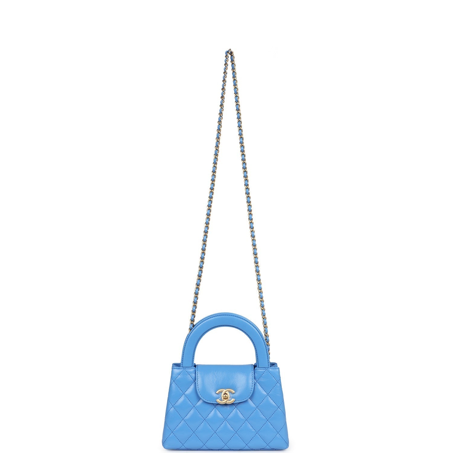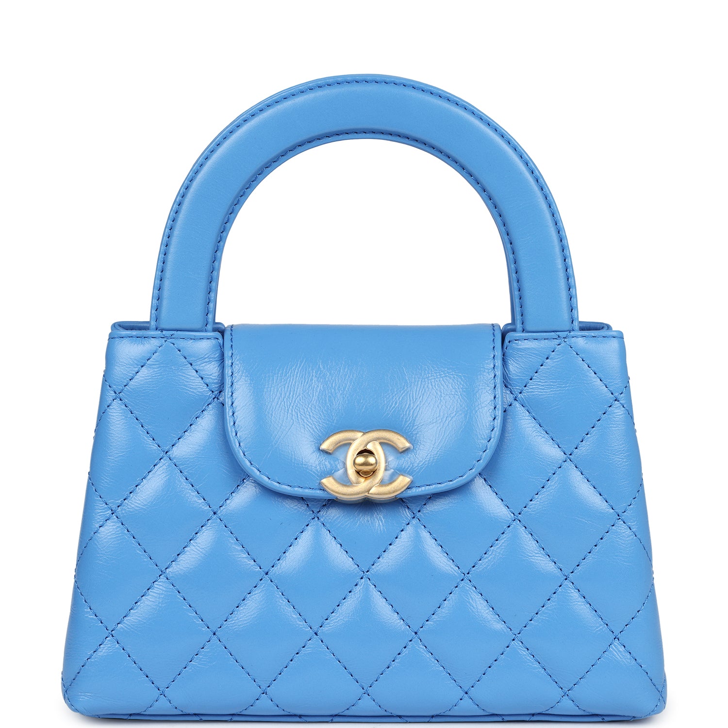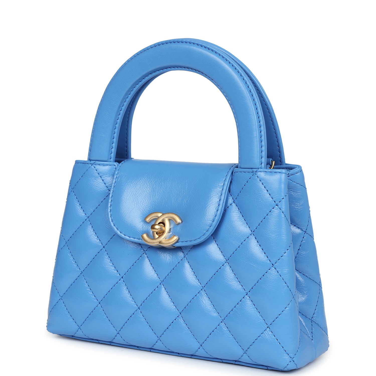 Chanel Small Kelly Shopper Blue Shiny Aged Calfskin Brushed Gold Hardware