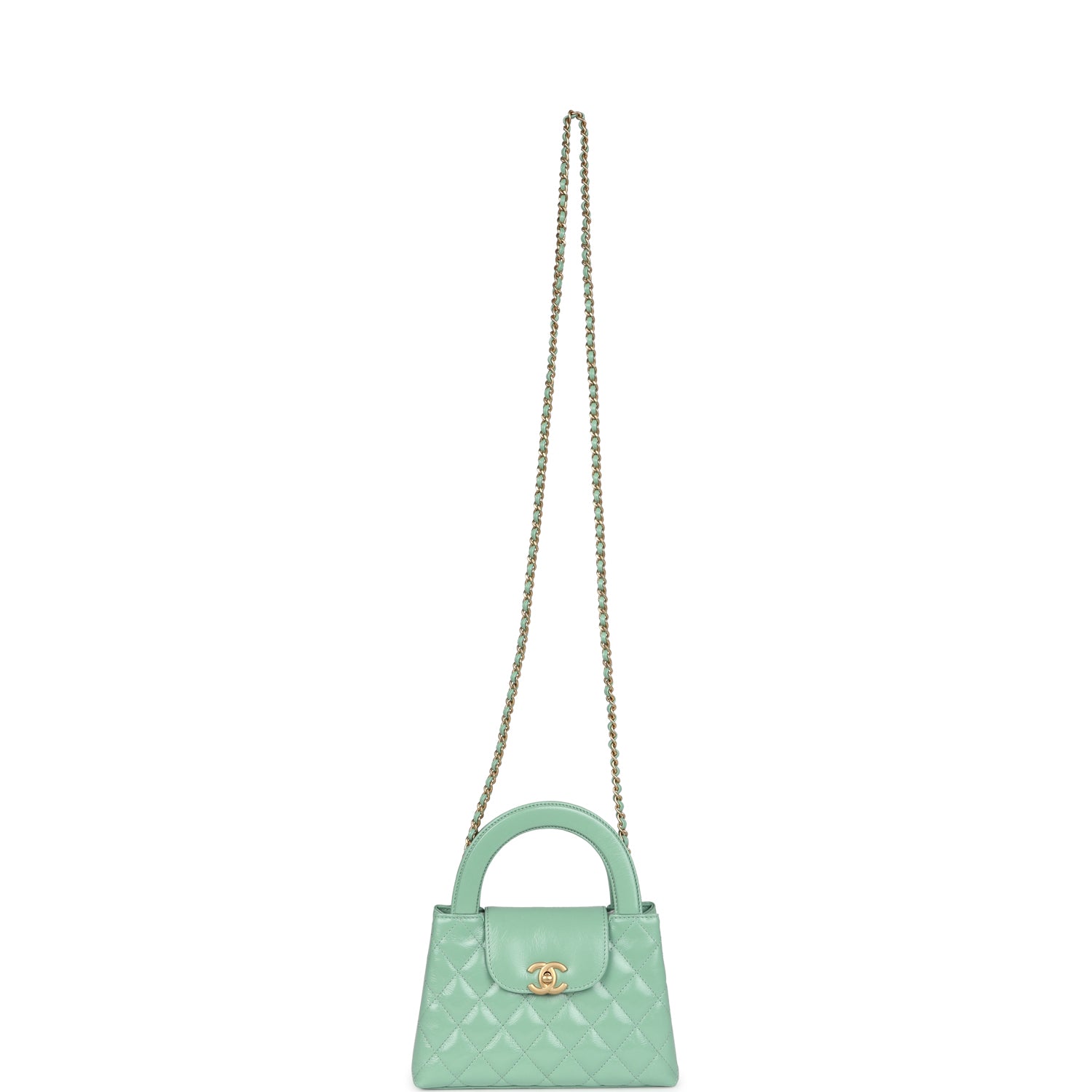Chanel Small Kelly Shopper Light Green Shiny Aged Calfskin Brushed Gold Hardware