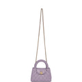 This small Kelly is in light purple shiny aged calfskin with brushed gold hardware, tonal stitching, two flat back top handles and an interwoven brushed gold with light purple leather shoulder strap, and CC turnlock closure.