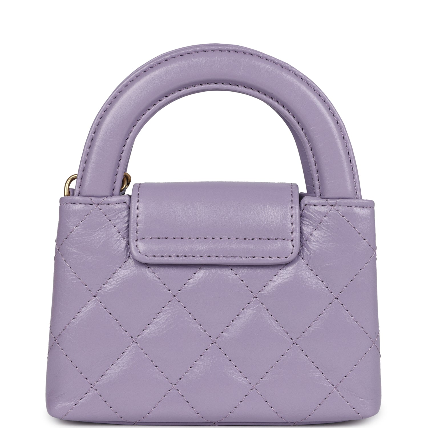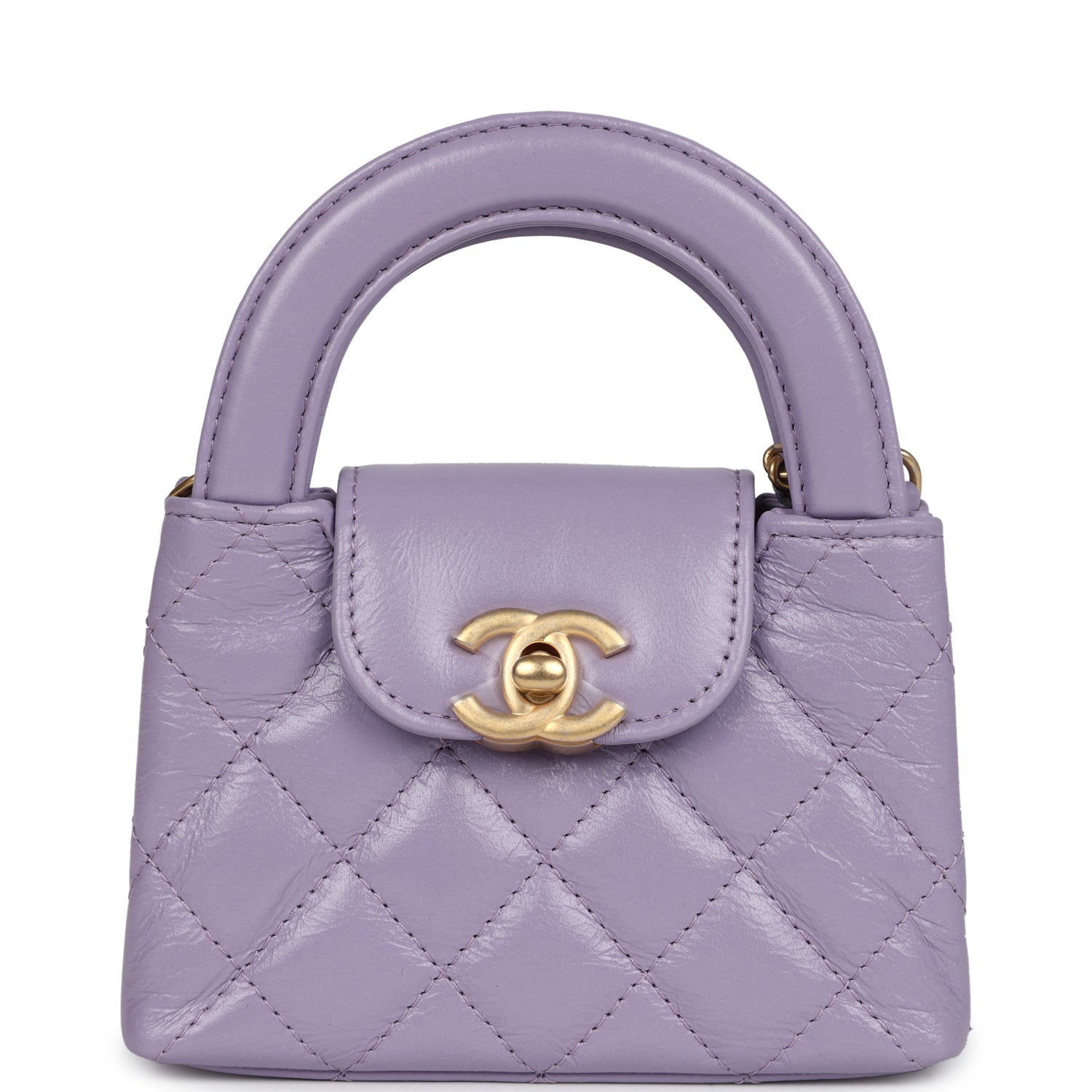 Chanel Nano Kelly Shopper Light Purple Shiny Aged Calfskin Brushed Gold Hardware