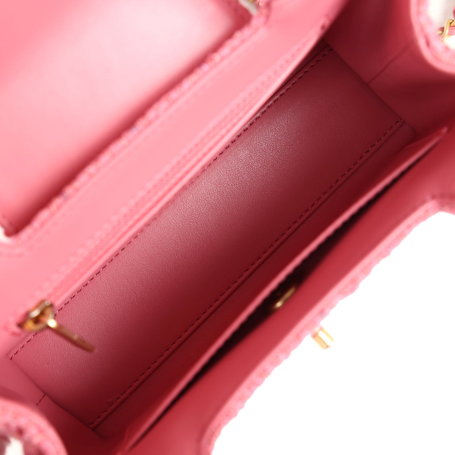 Chanel Small Kelly Shopper Pink Tweed Brushed Gold Hardware