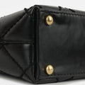 The Chanel Small Surpique Stitch Tote in black calfskin combines classic elegance with modern design. Crafted from smooth leather with signature topstitch detailing, this compact tote features a structured silhouette and antique gold hardware, making it a versatile accessory for day-to-night wear.