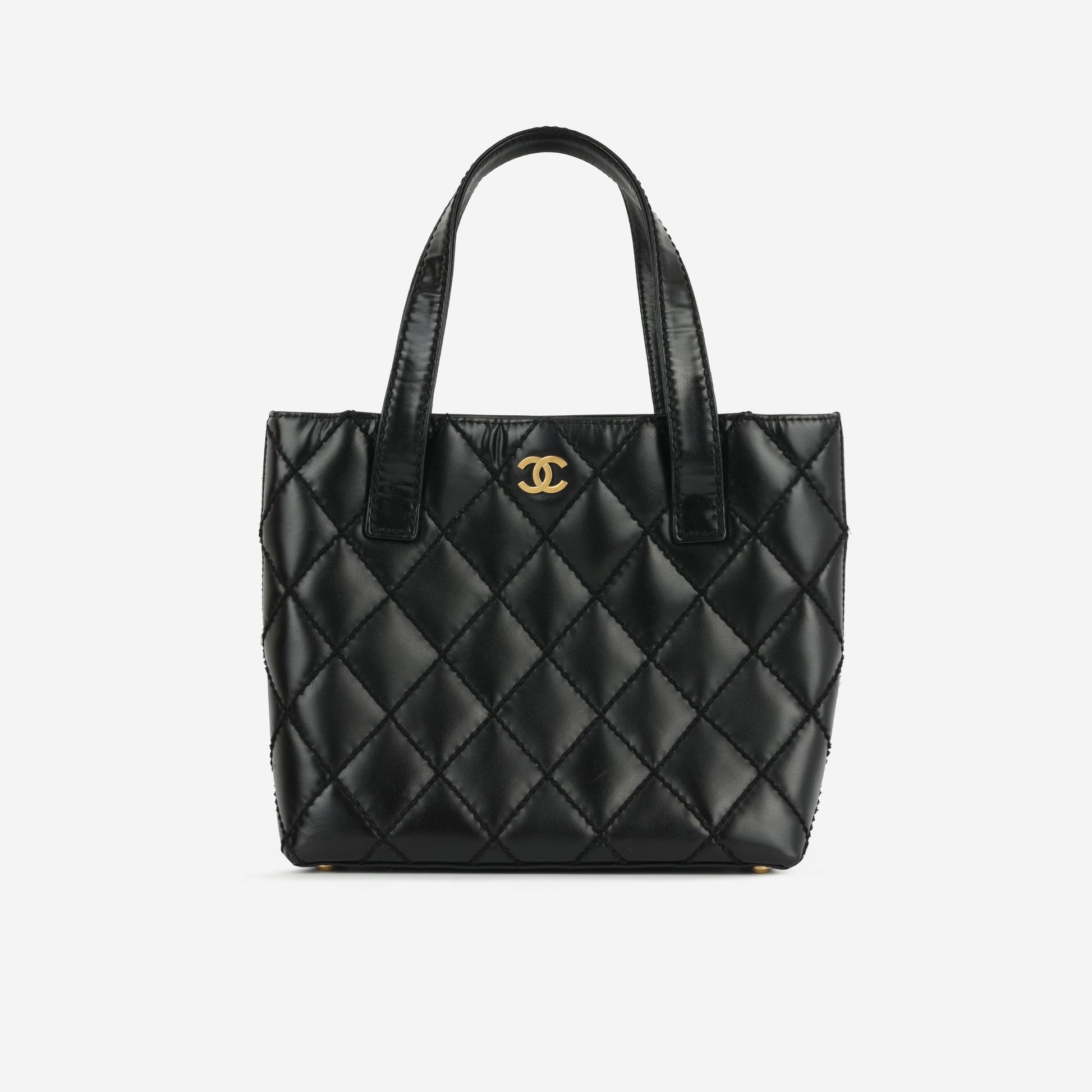 Chanel Small Surpique Stitch Tote Black Calfskin