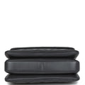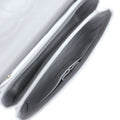 The interior is lined in dark grey leather and features three compartments, a zipper pocket with Chanel pull and an open pocket.