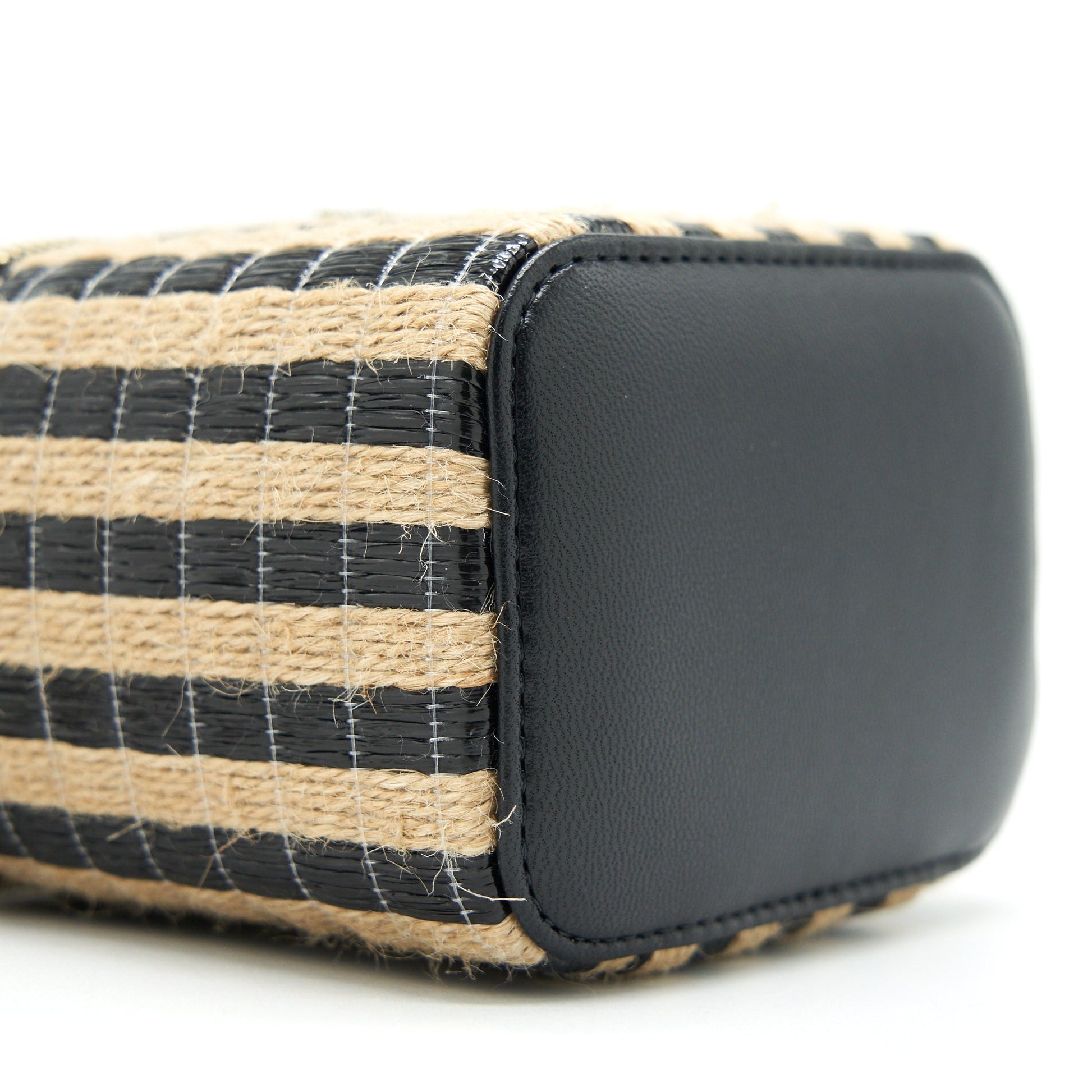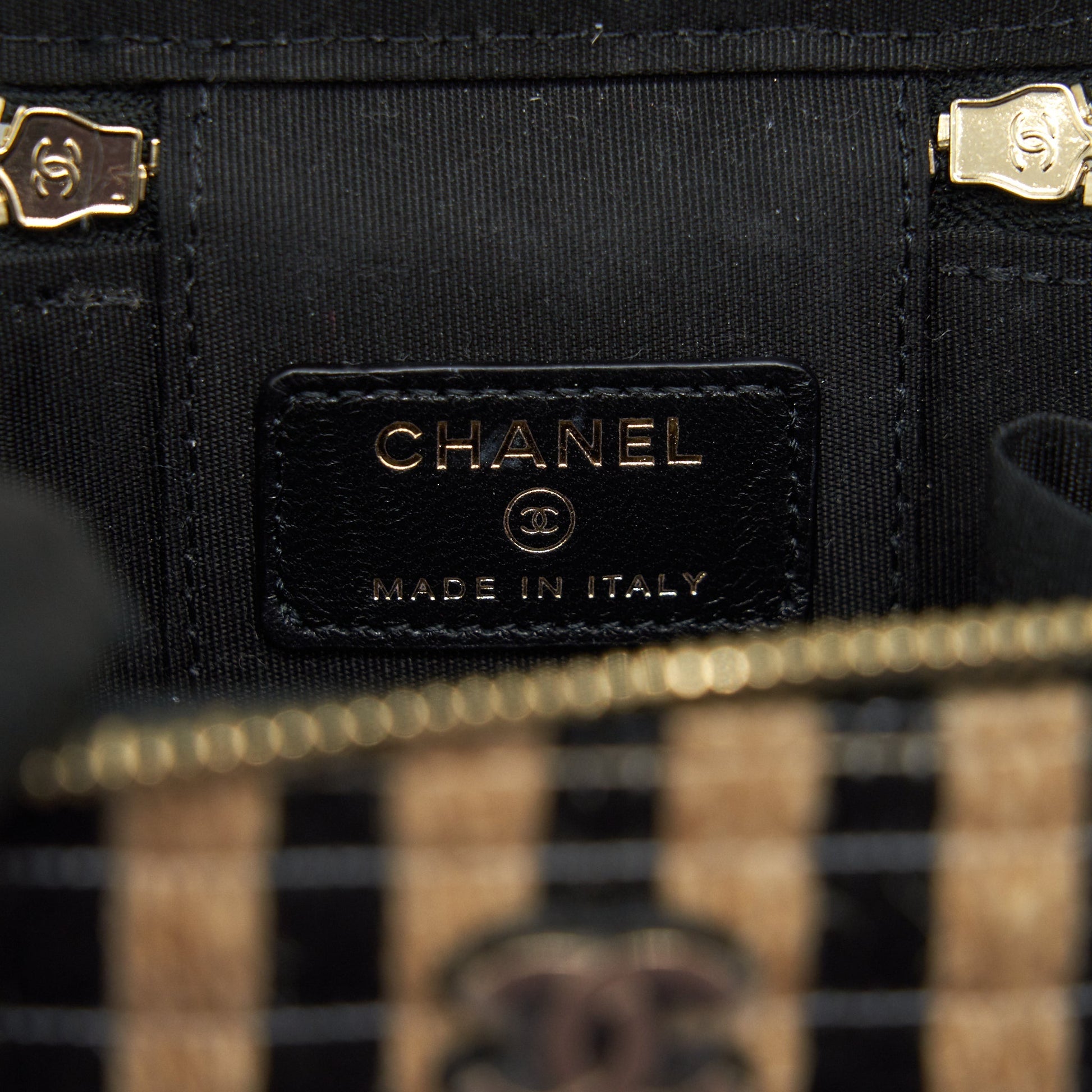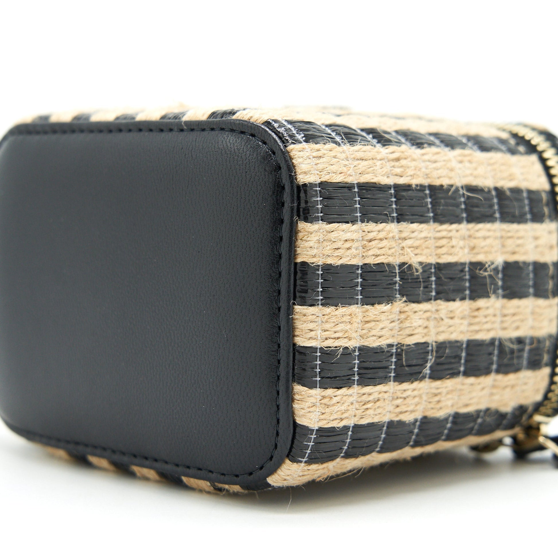 Chanel Small Vanity with Chain raffia Black Beige stripe