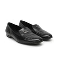Chanel 'Smoking Slipper' loafers in black glazed leather. Features gunmetal logo hardware on the front and slip-on design.