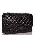 Chanel SO Black Shiny Crumpled Calfskin Jumbo Classic Double Flap Bag Black Hardware
