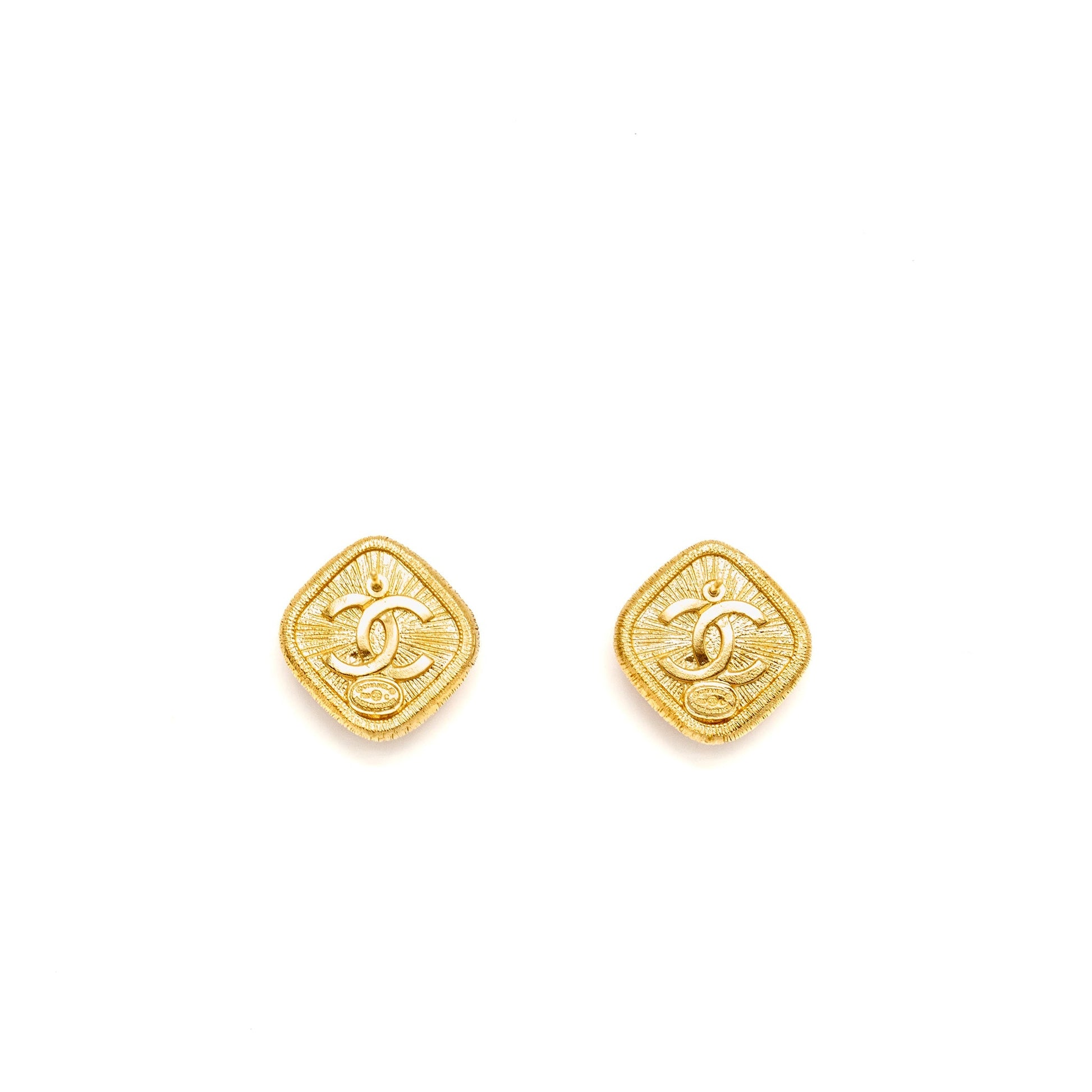 Chanel Square CC Logo Earrings Pink, Gold Tone