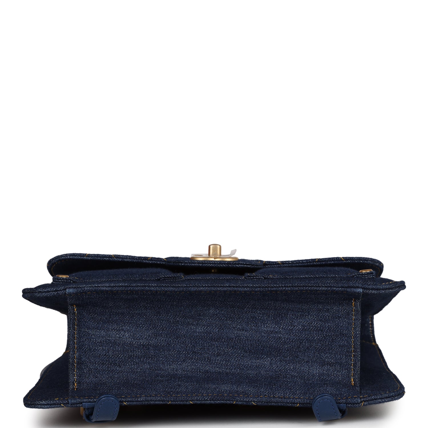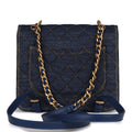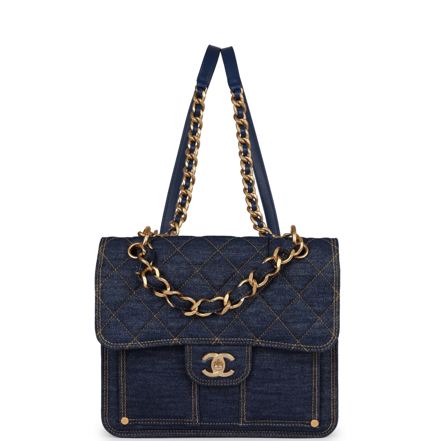 Chanel Square Flap Backpack Blue Denim Antique Gold Hardware