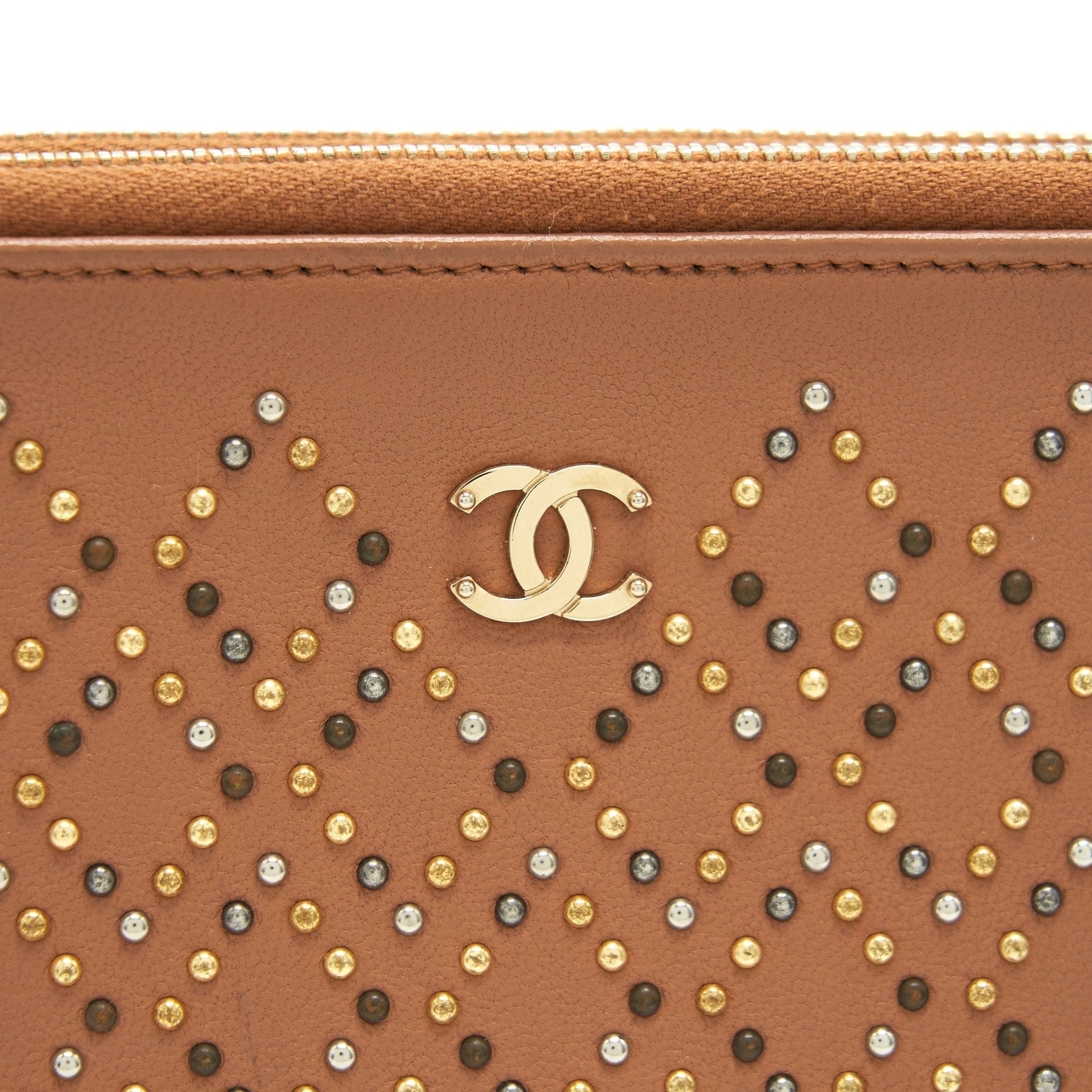 Chanel Stud Double Zip Wallet On Chain Dark Beige