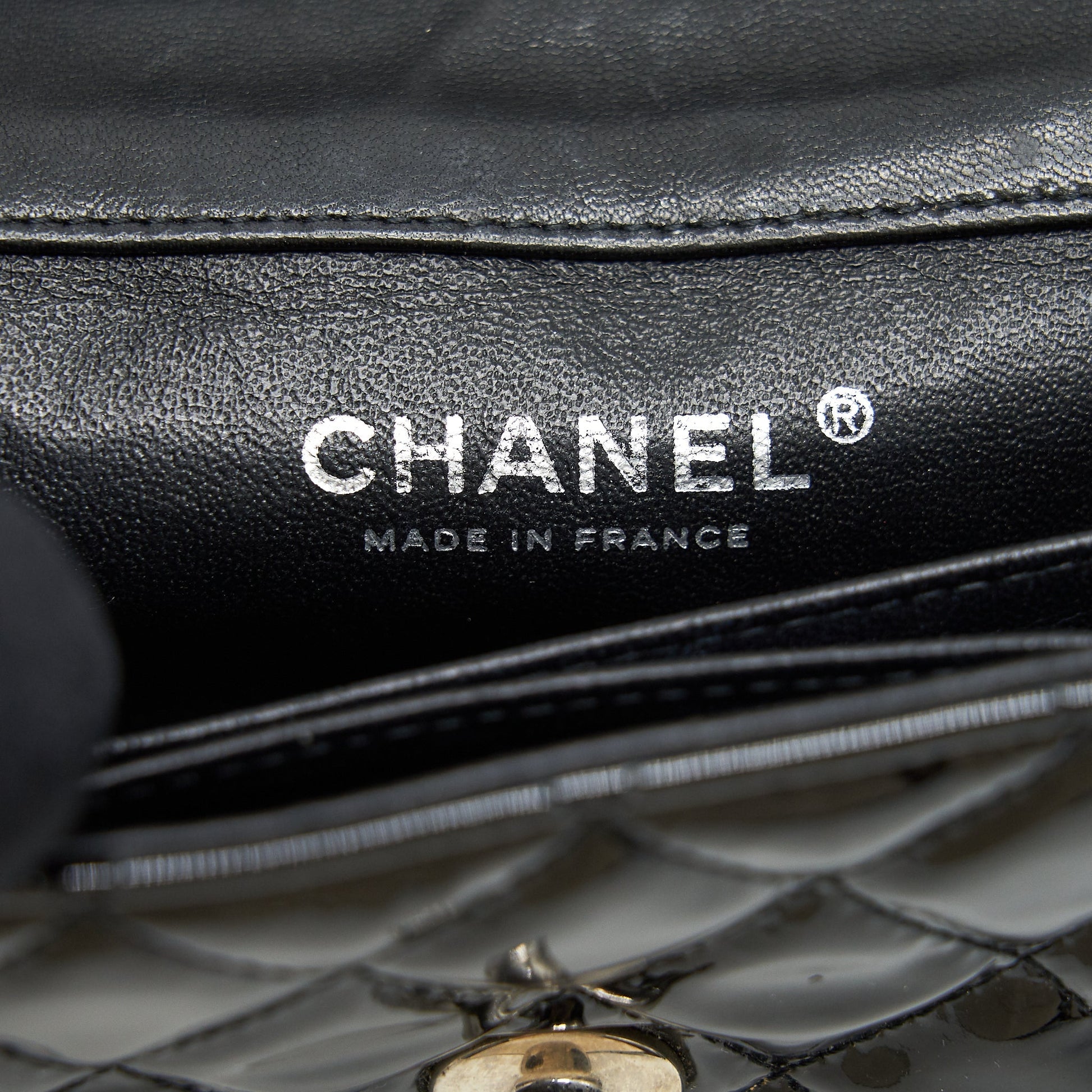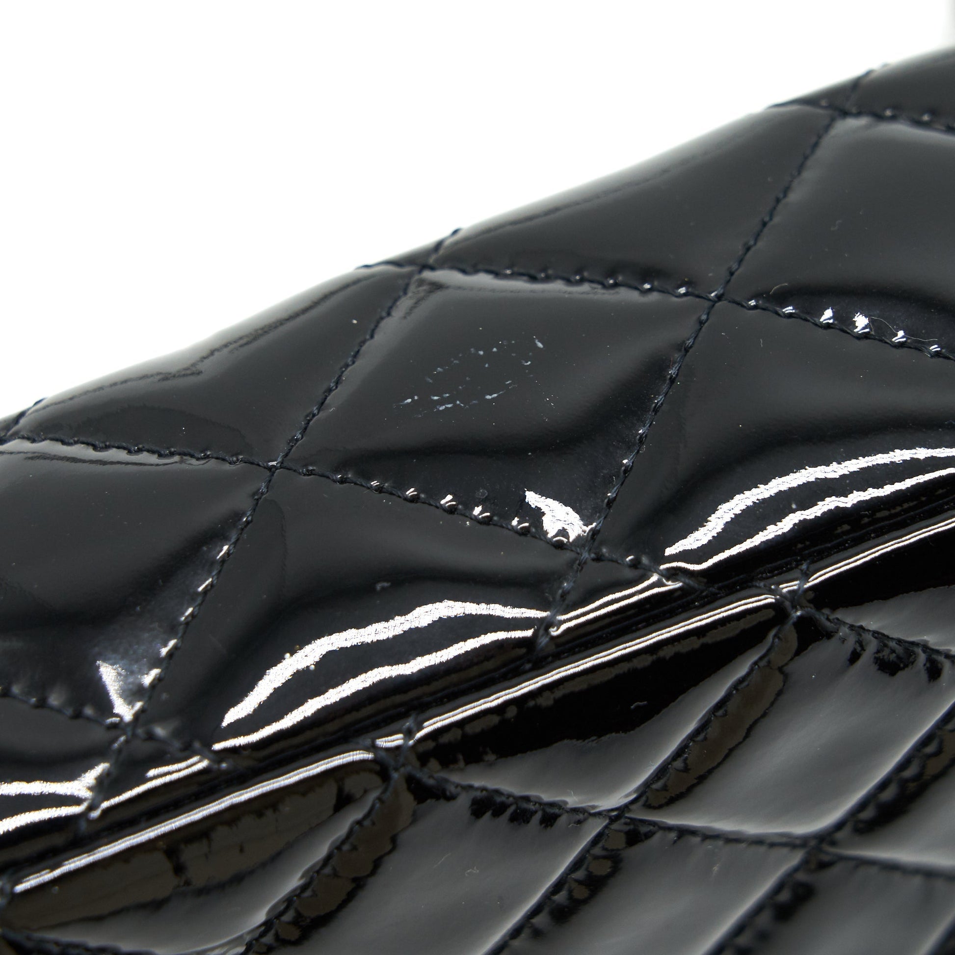 (This item is in fair condition with scratches and light marks on patent surface, scratches and sign of use inside.)