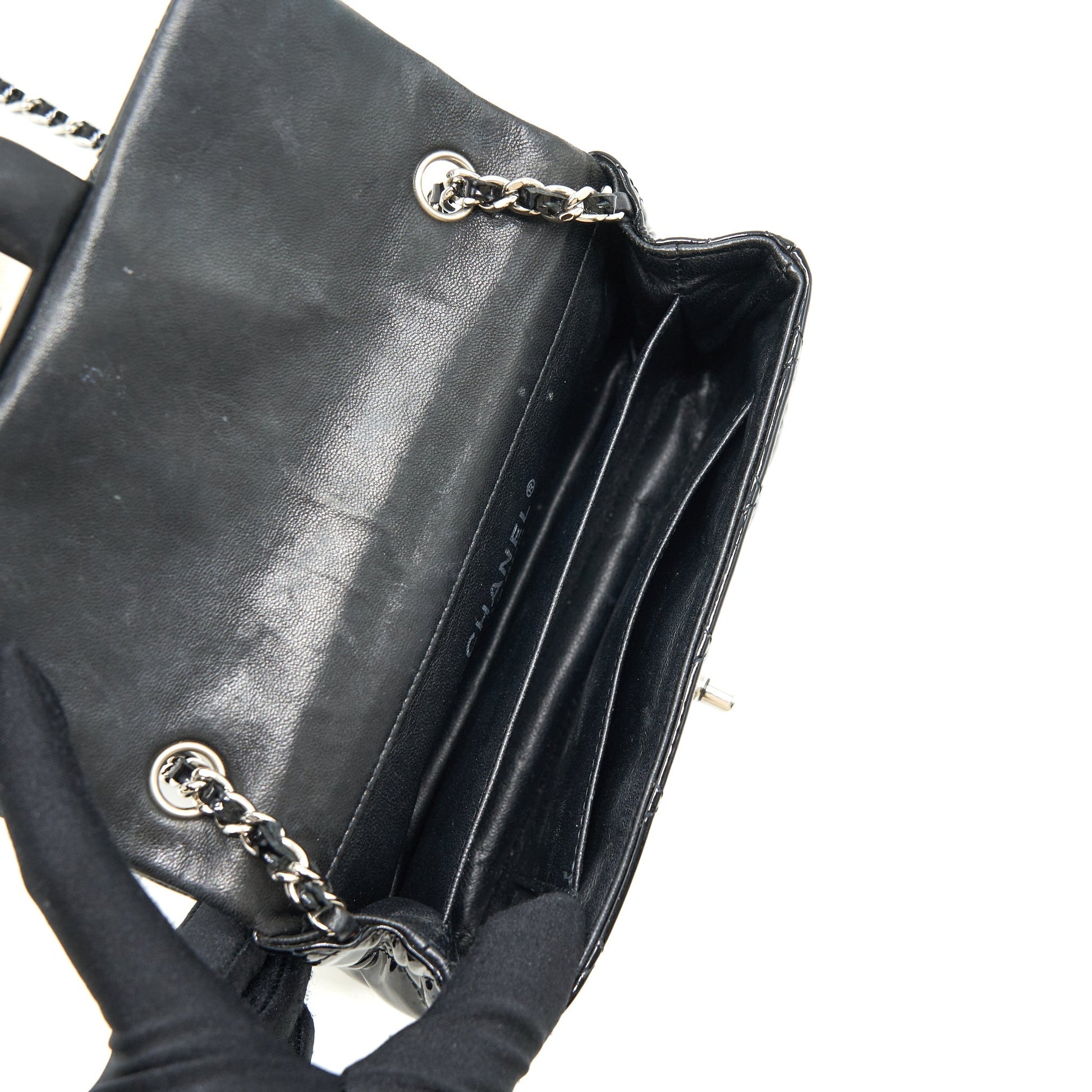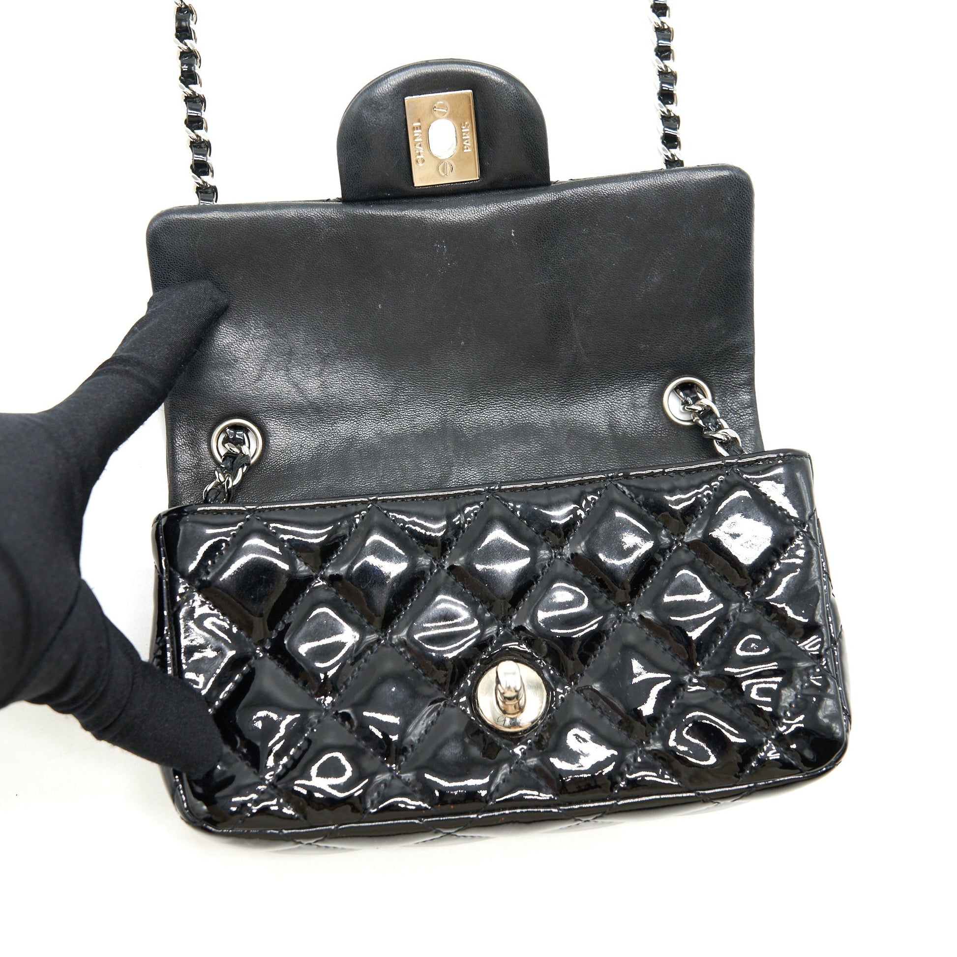 Chanel super mini Rectangular flap Bag Patent black SHW