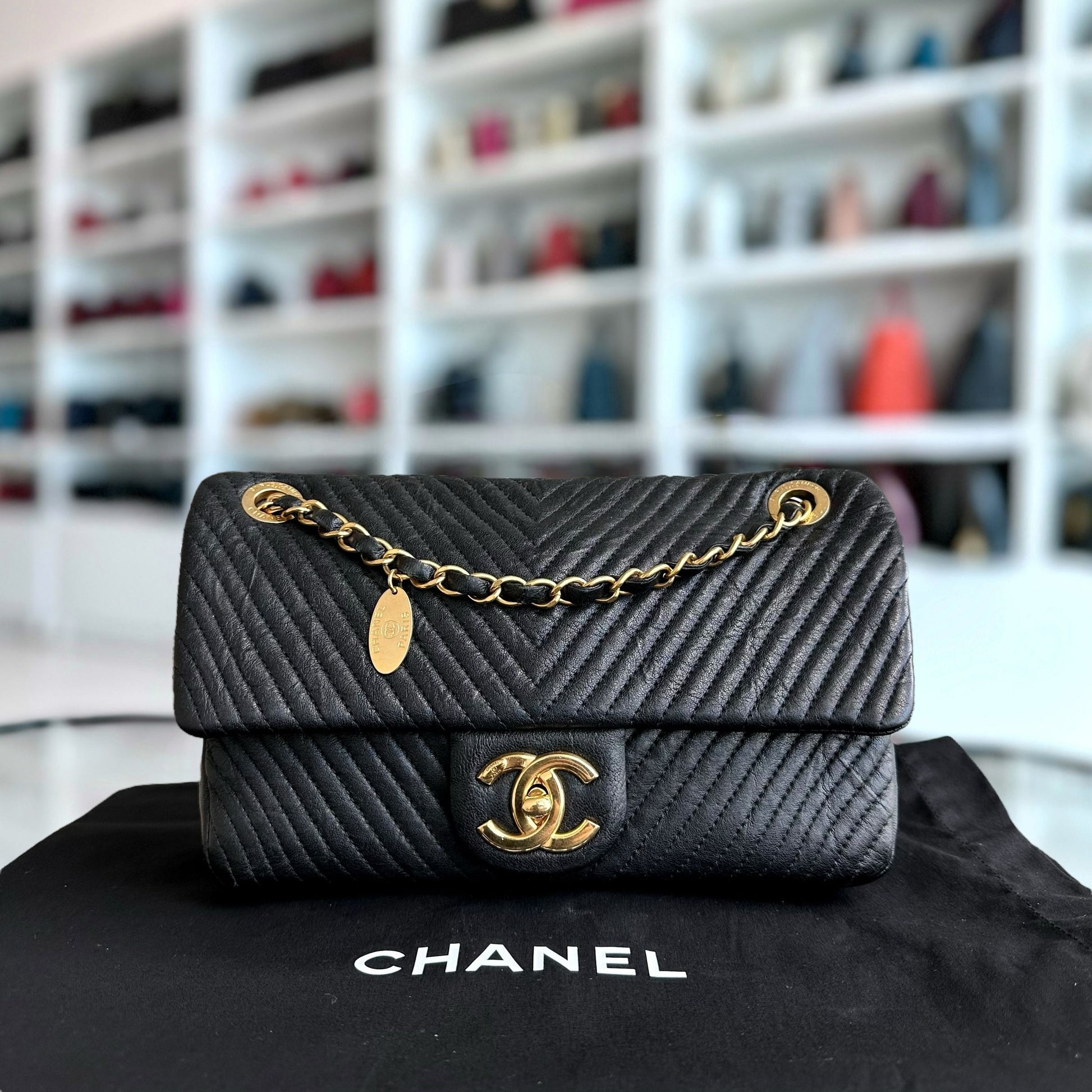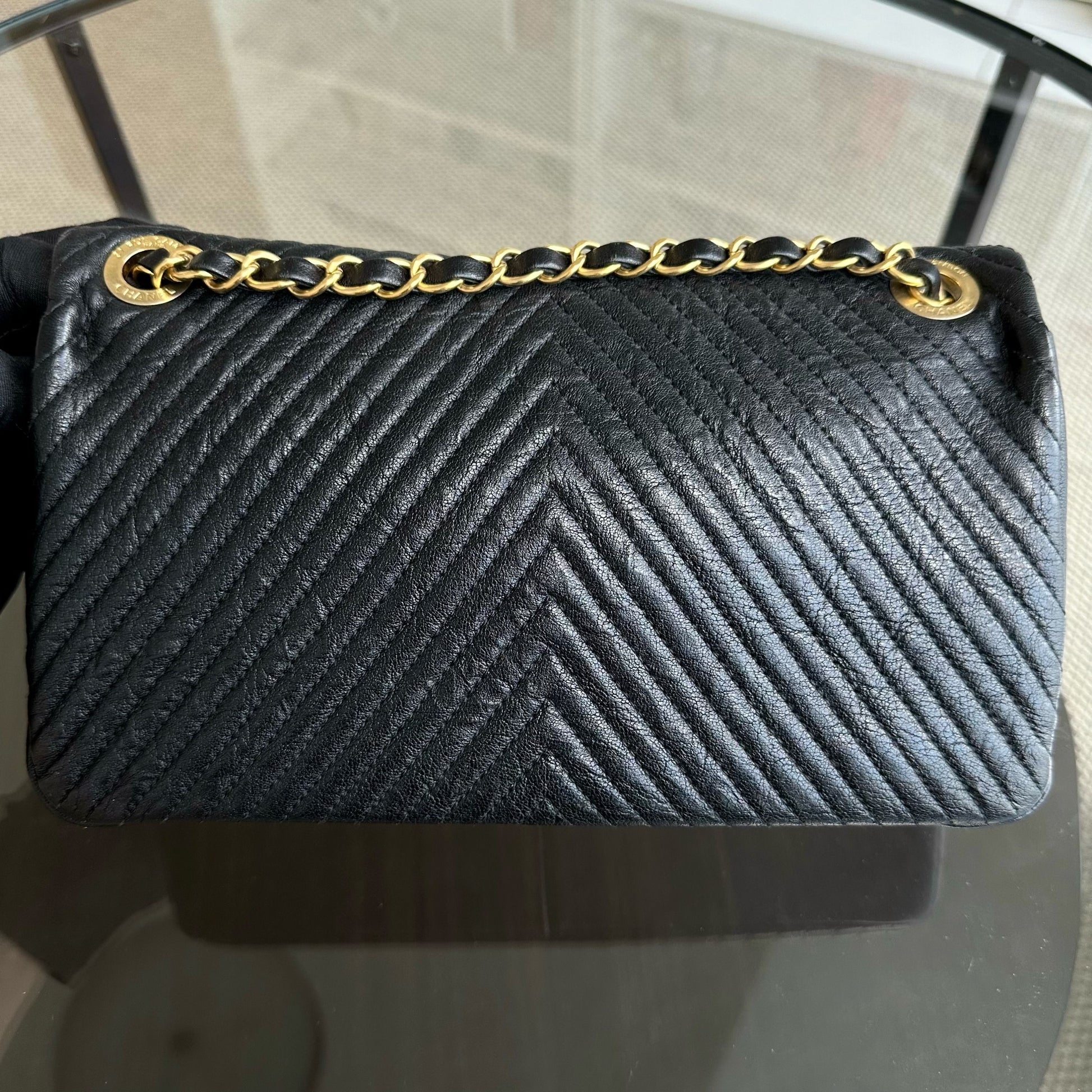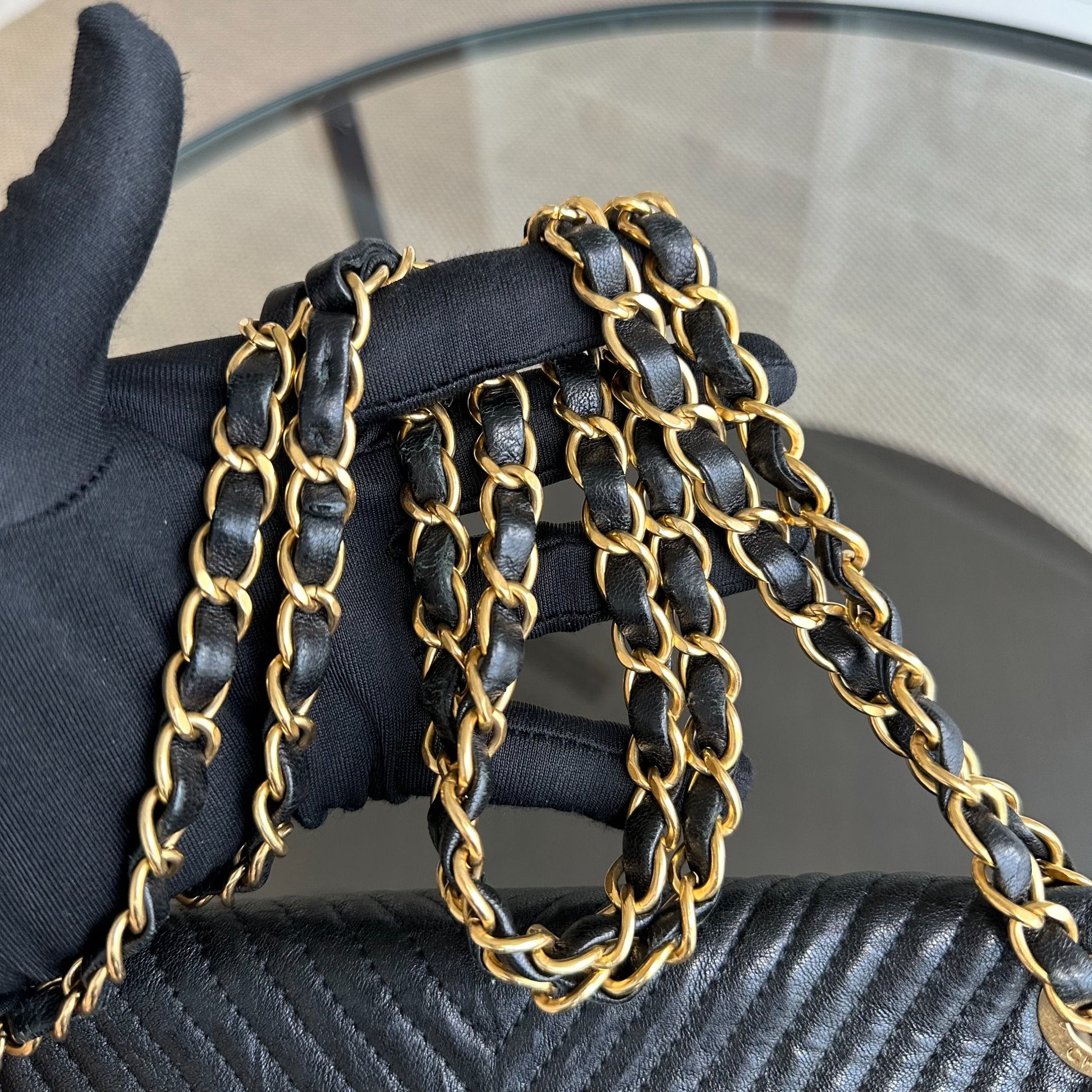 Surpique CC Herringbone Medallion Chevron Goatskin Medium Black GHW No 21