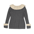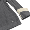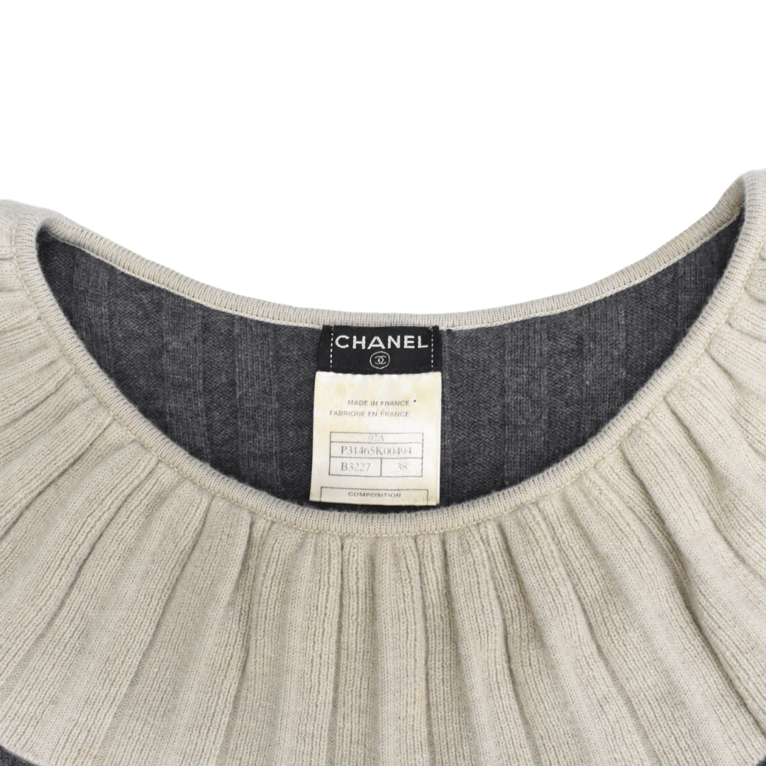 Chanel sweater in grey ribbed knit wool with a beige ruffle collar and cuffs and crystal buttons. From the 2007 F/W collection.