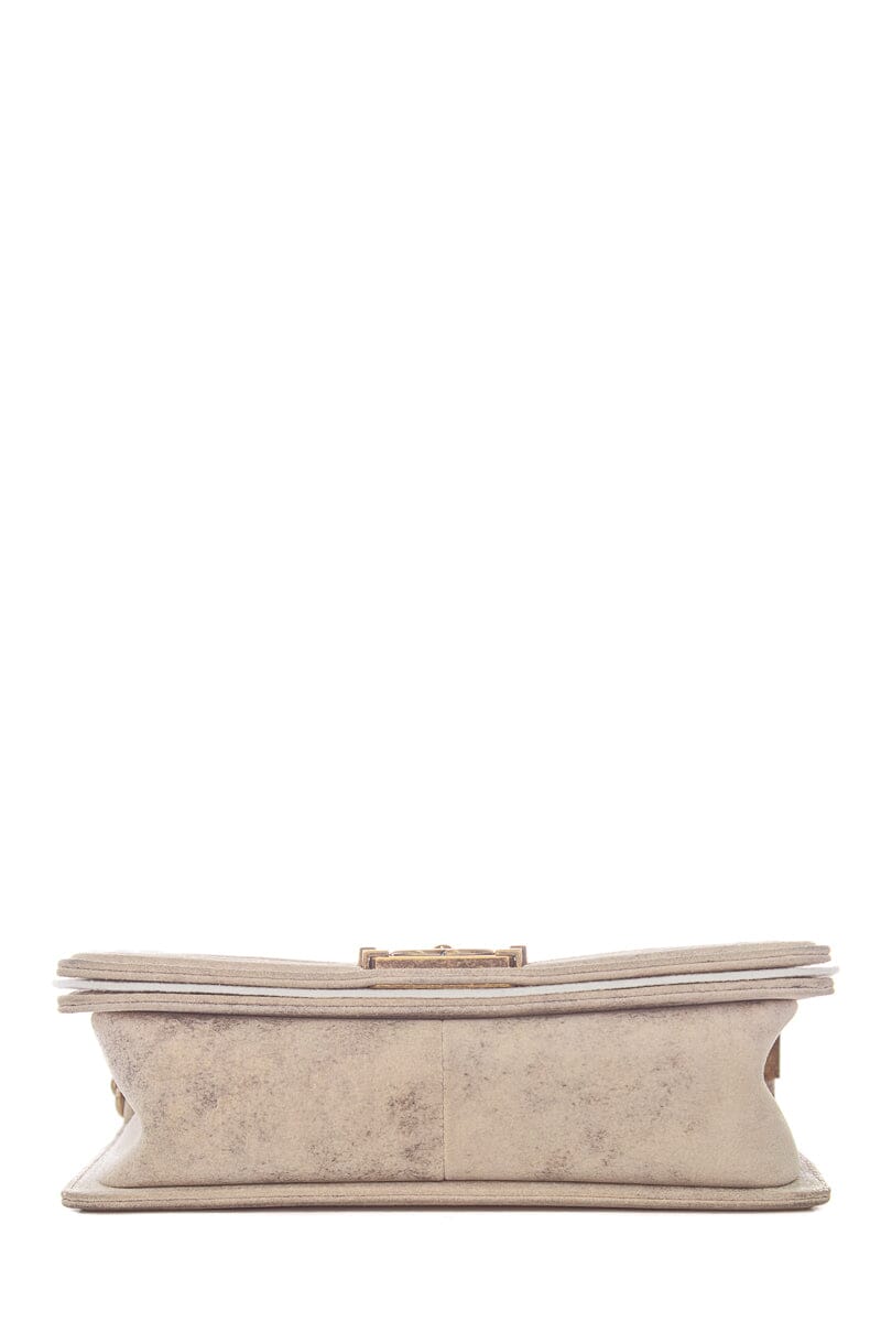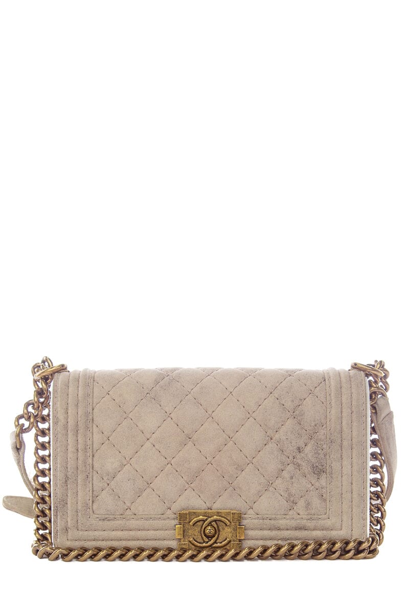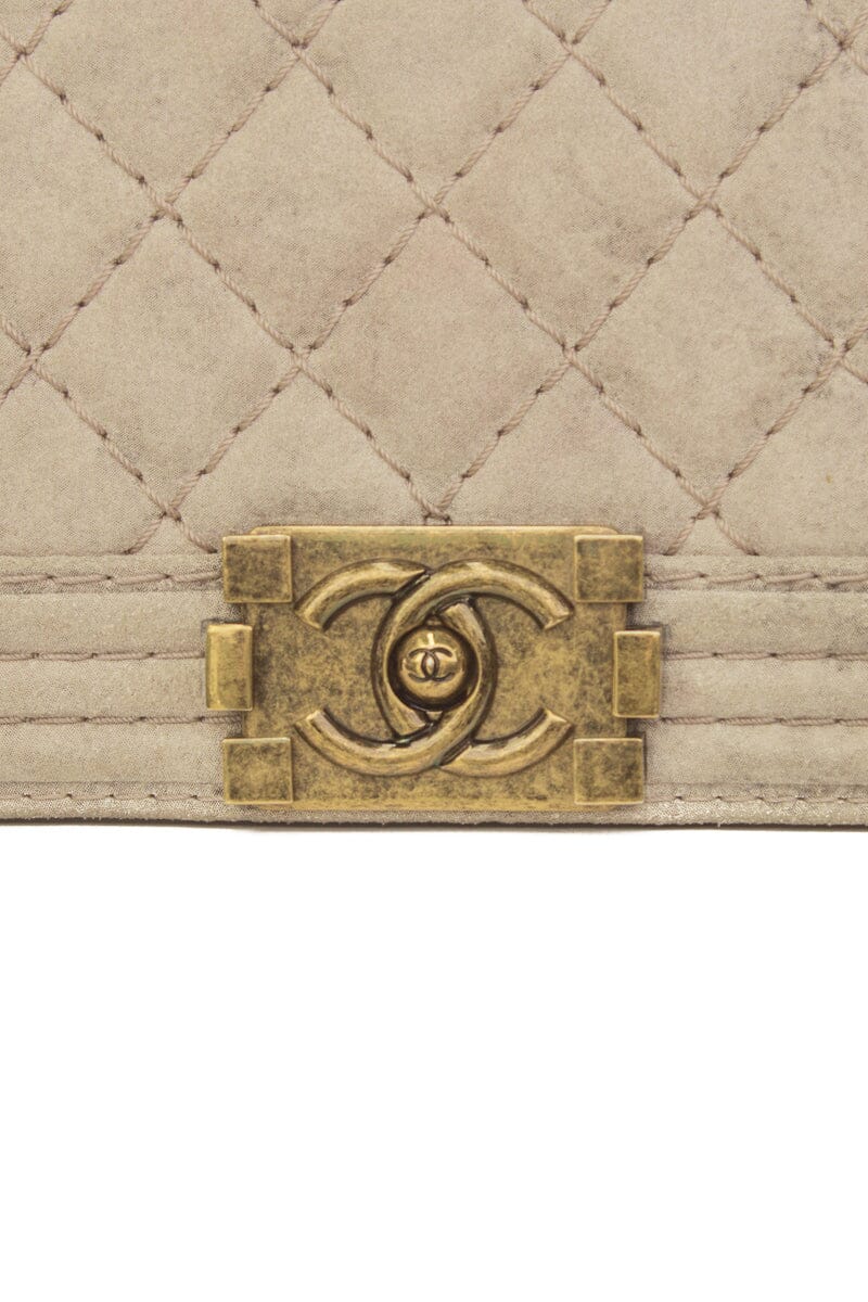 Chanel Taupe Medium Quilted Boy Flap Bag Antique Gold Hardware