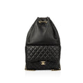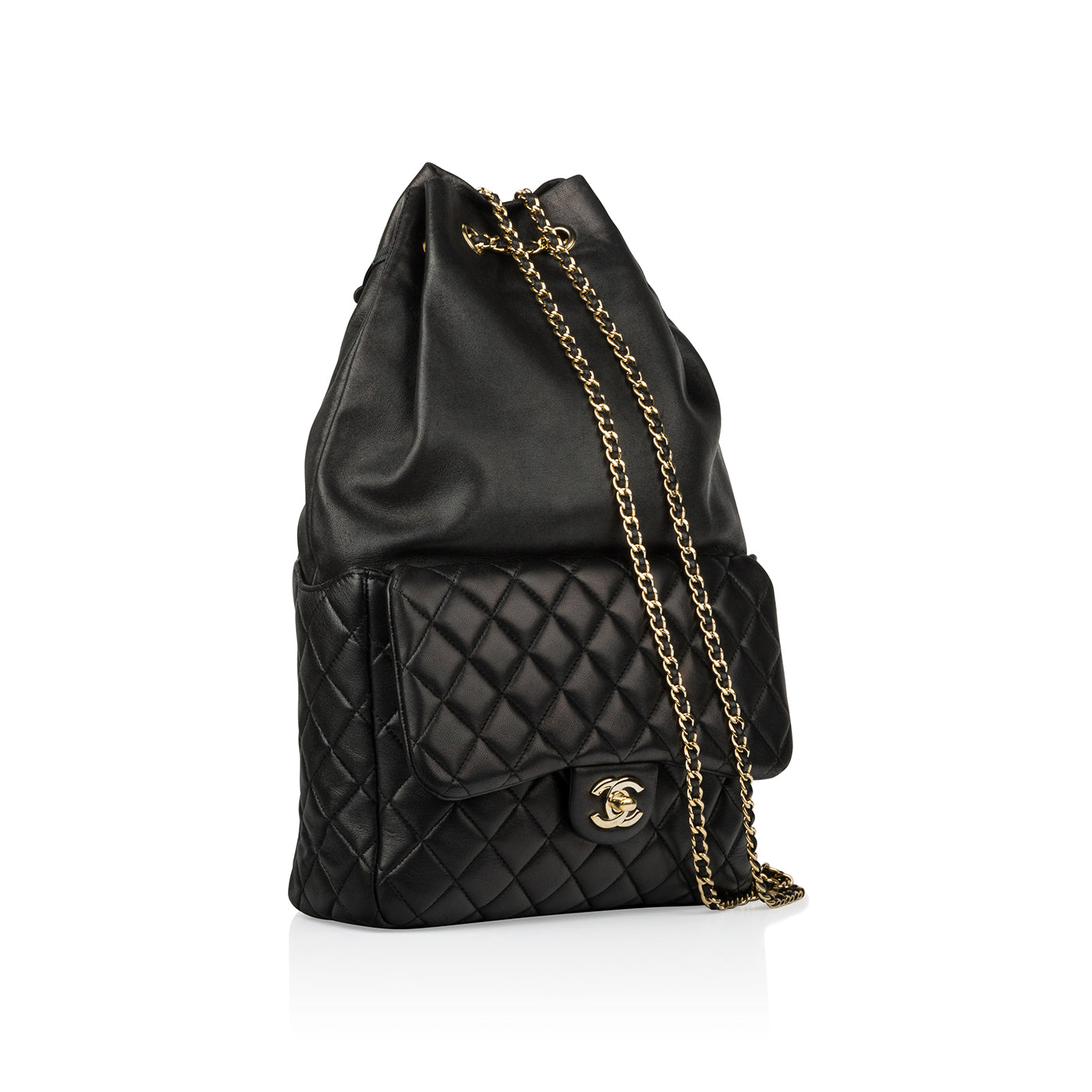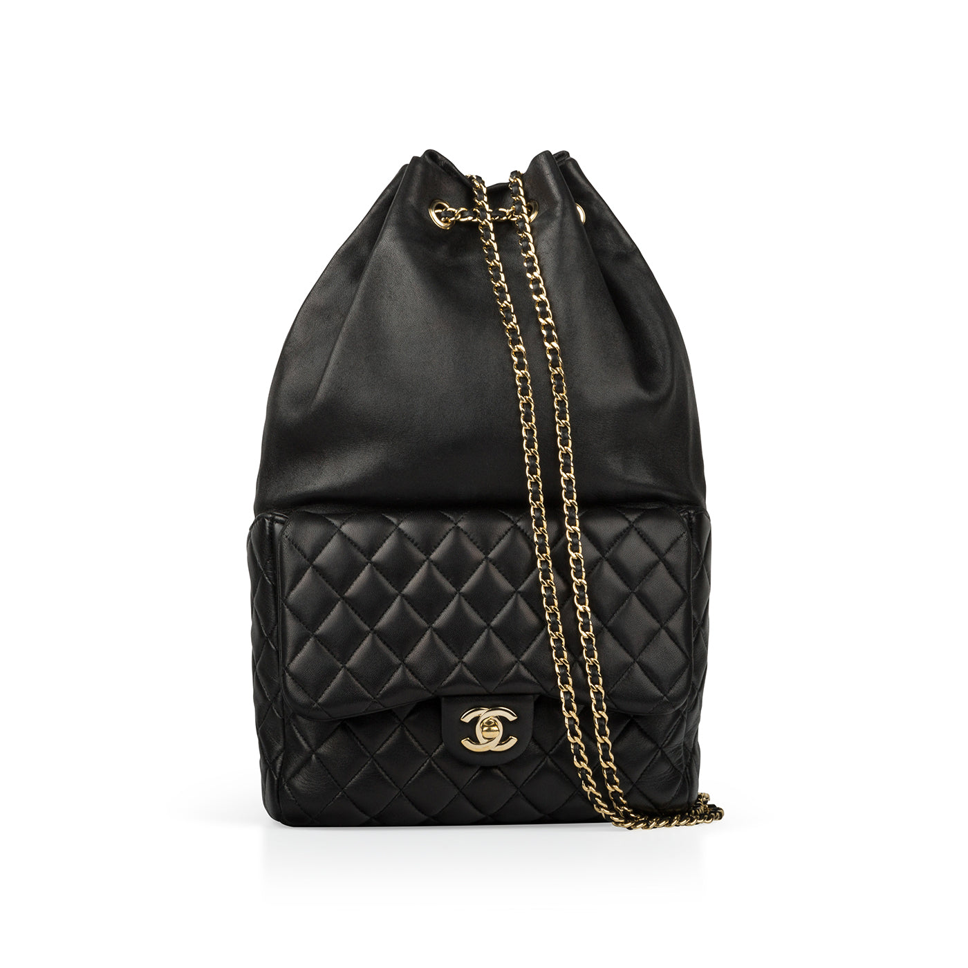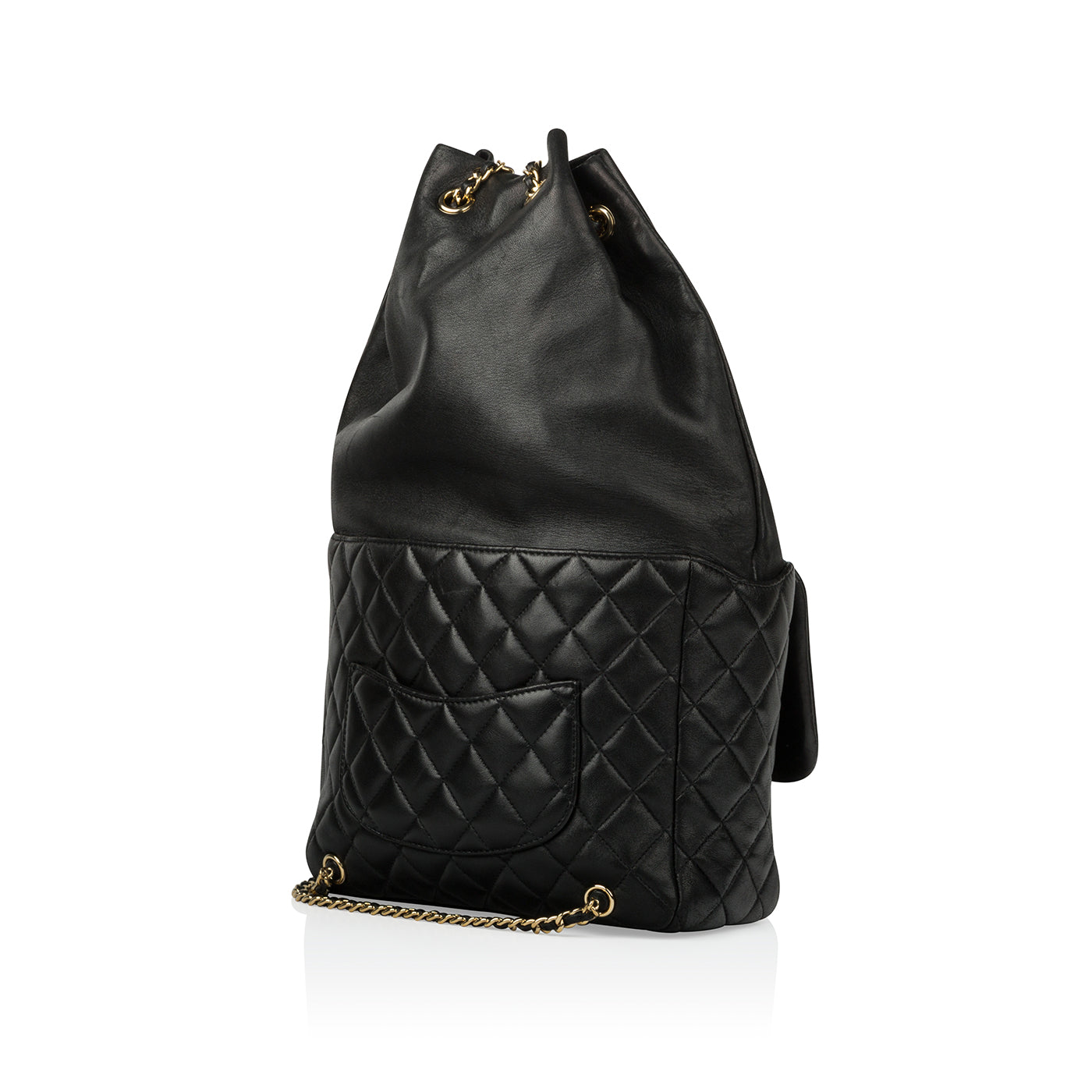 Carefully crafted from smooth lambskin leather, Chanel presents their timeless Seoul Large drawstring backpack. A true must have for any Chanel lover, this gorgeous piece is the perfect balance between fashion and function. Spacious enough to hold all your every day necessities comfortably inside, the timeless backpack also features a quilted leather front pocket for additional storage. With drawstring closure, romantic gold tone hardware and signature interwoven chain / leather straps, this backpack is luxurious, practical and classic. A well worthy addition to any luxury handbag collection, the timeless backpack is a piece you won't regret investing in.