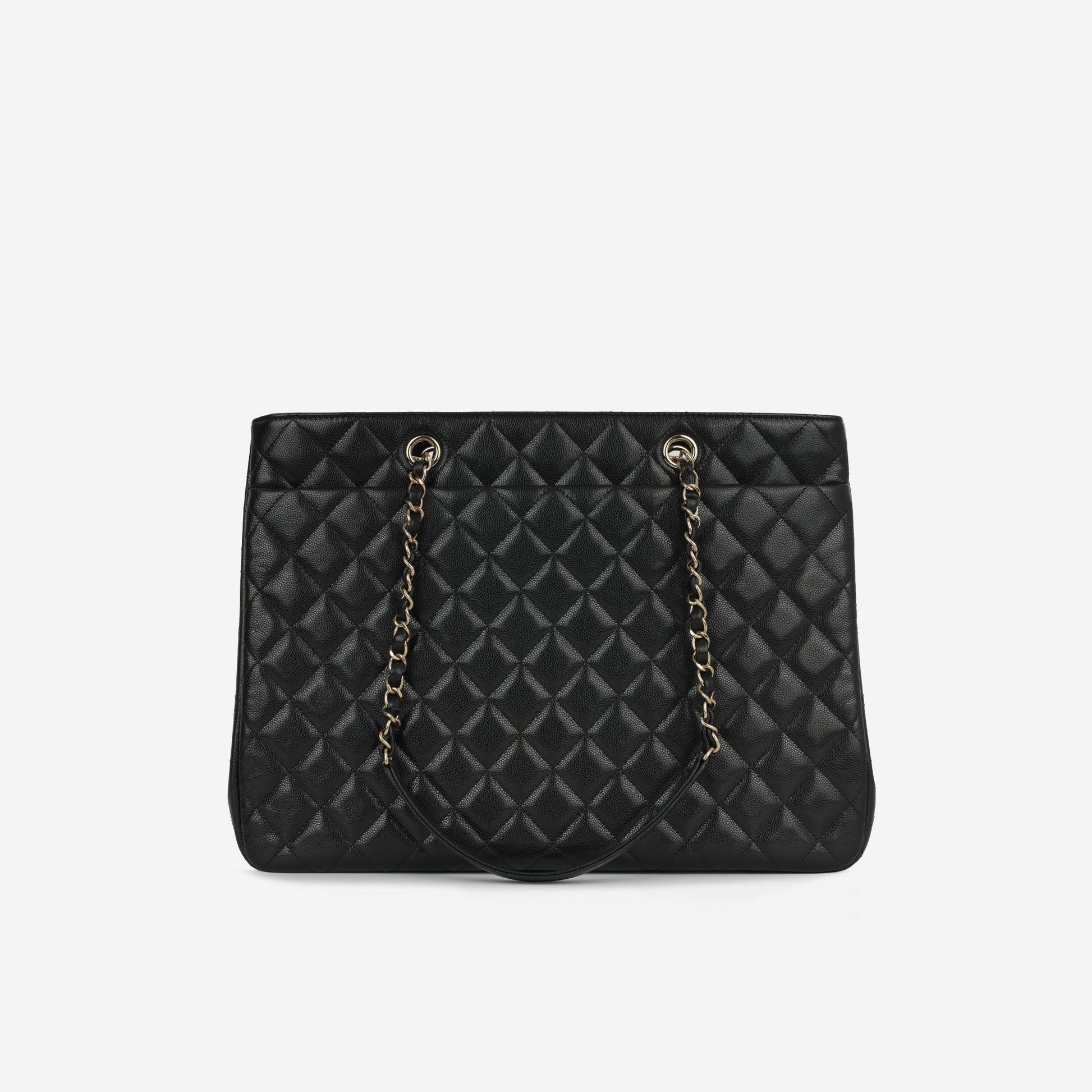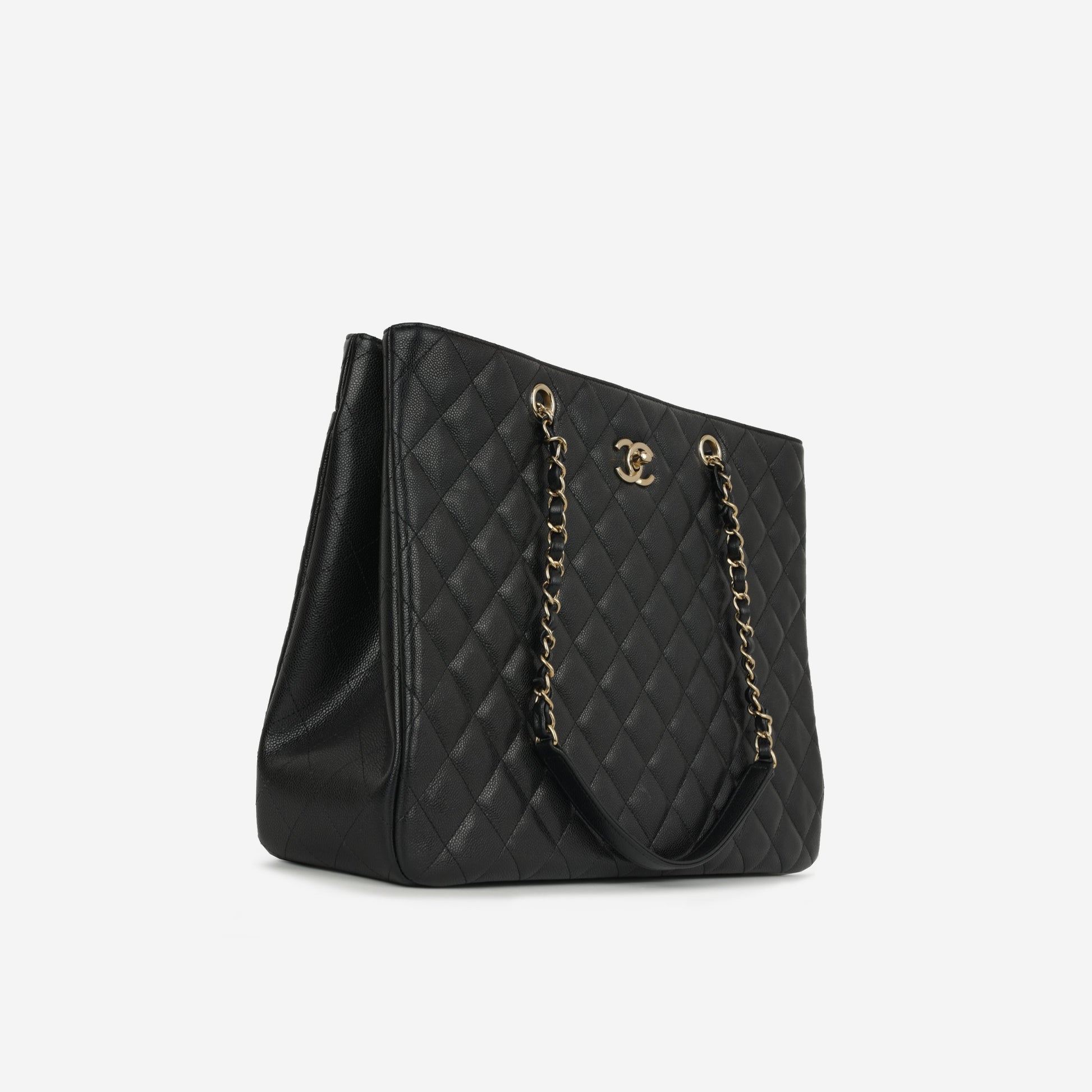 Chanel Timeless CC Shopping Tote Black Caviar Champagne Gold Hardware