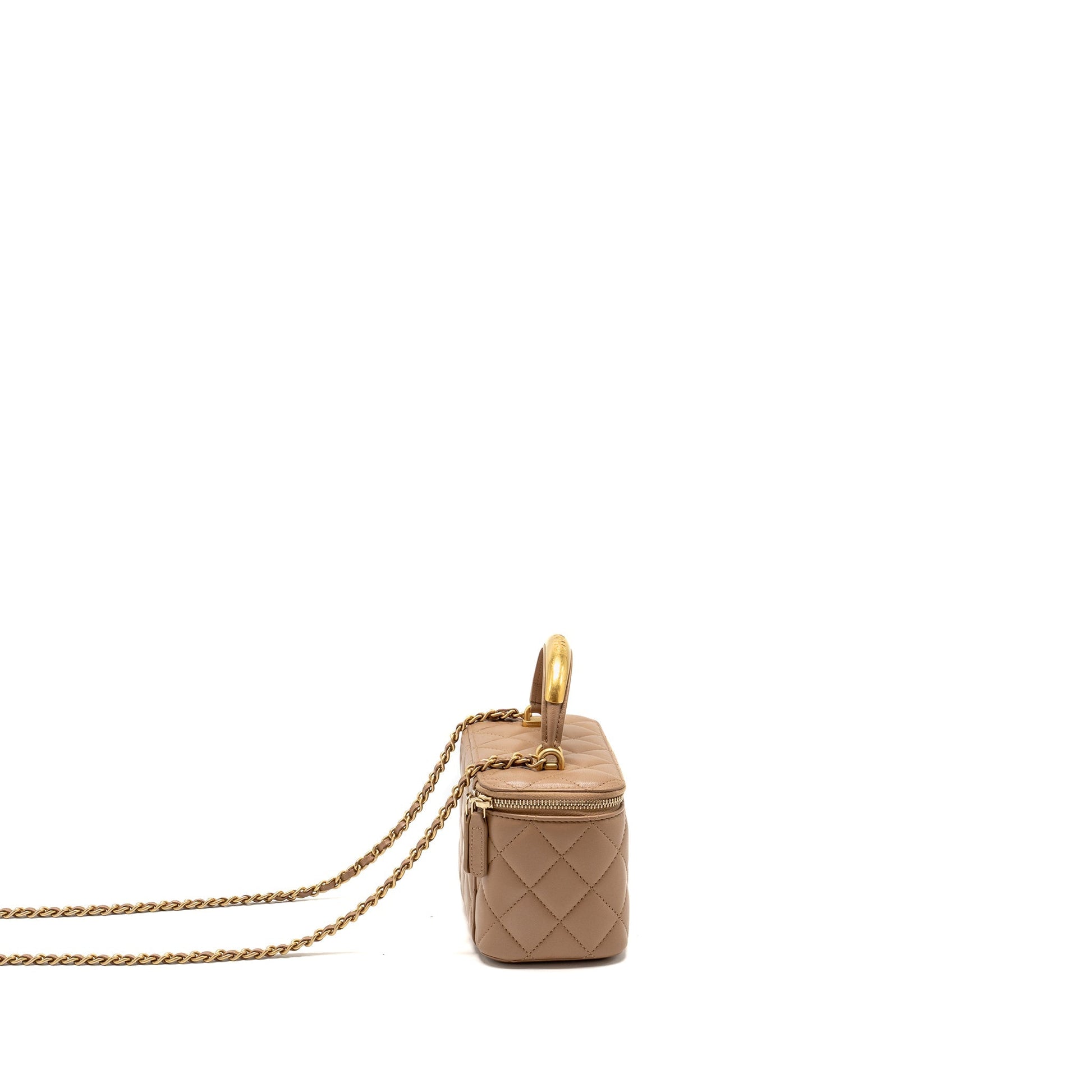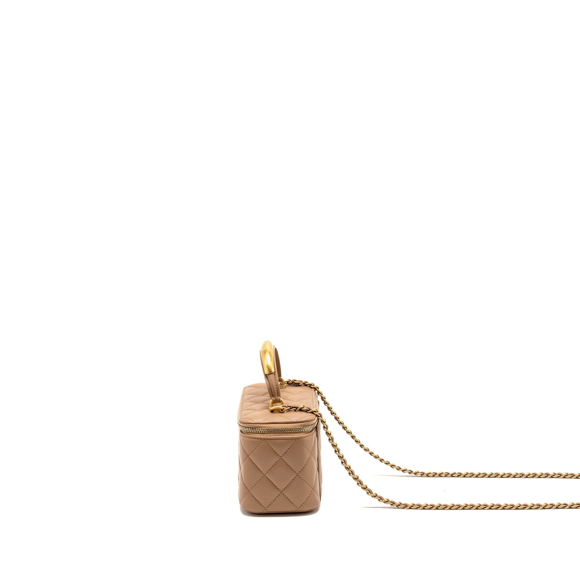 Chanel Top Handle Long Vanity with Chain Lambskin Dark Beige GHW (Microchip)