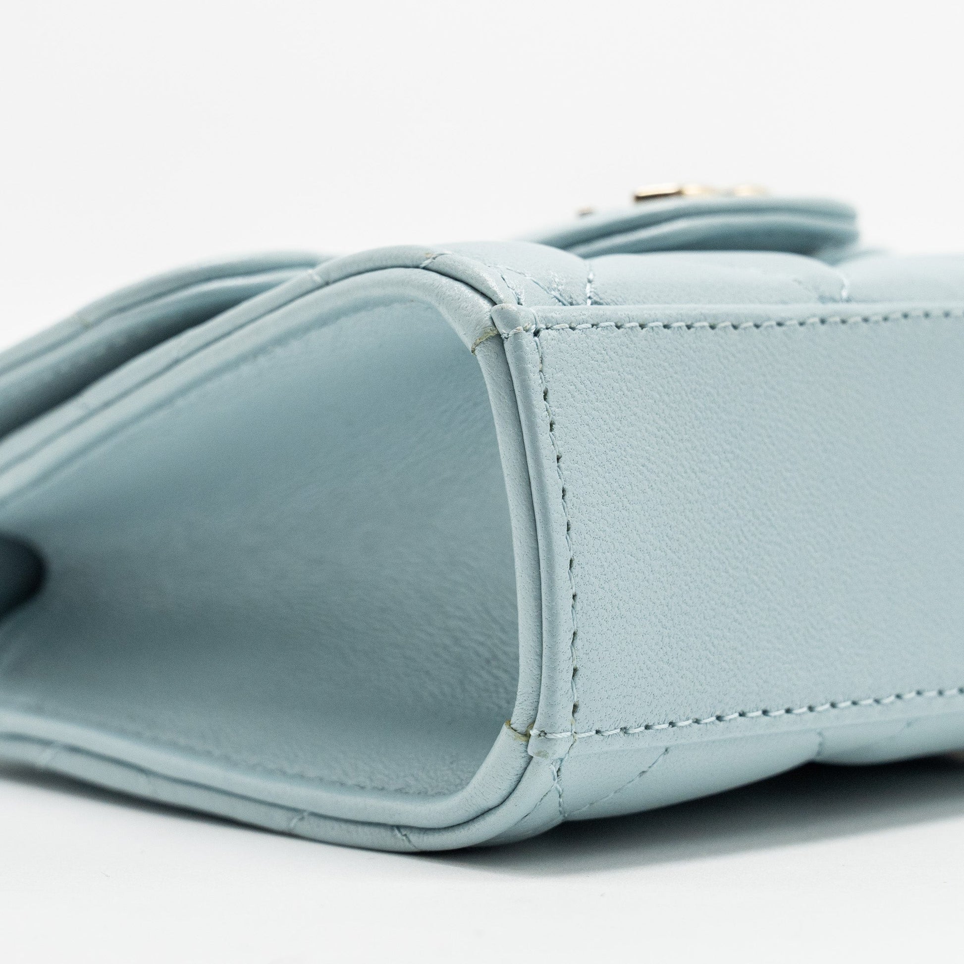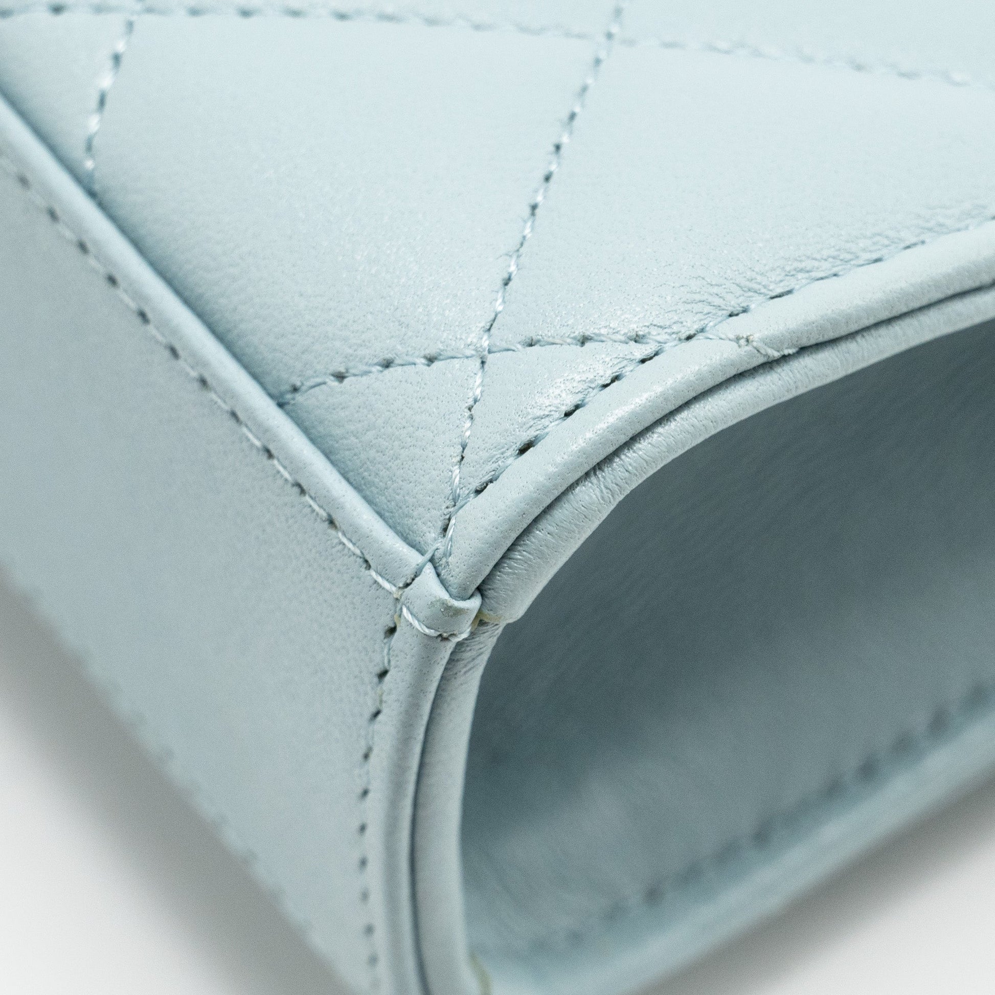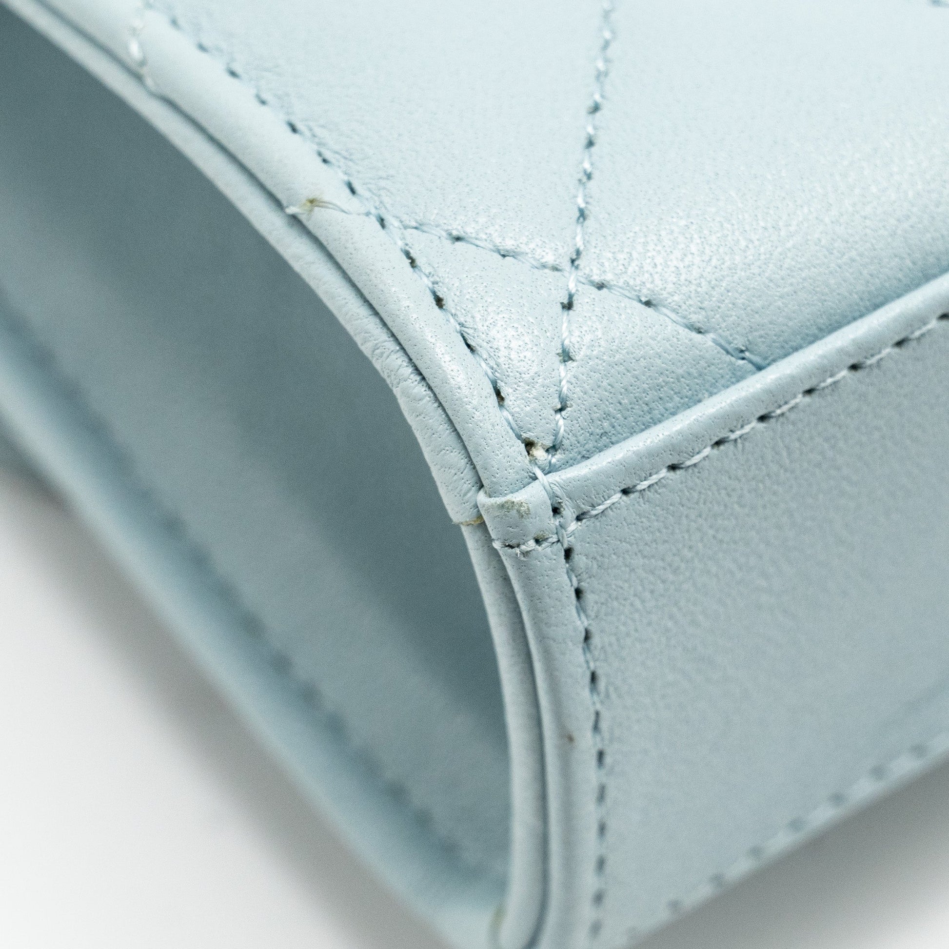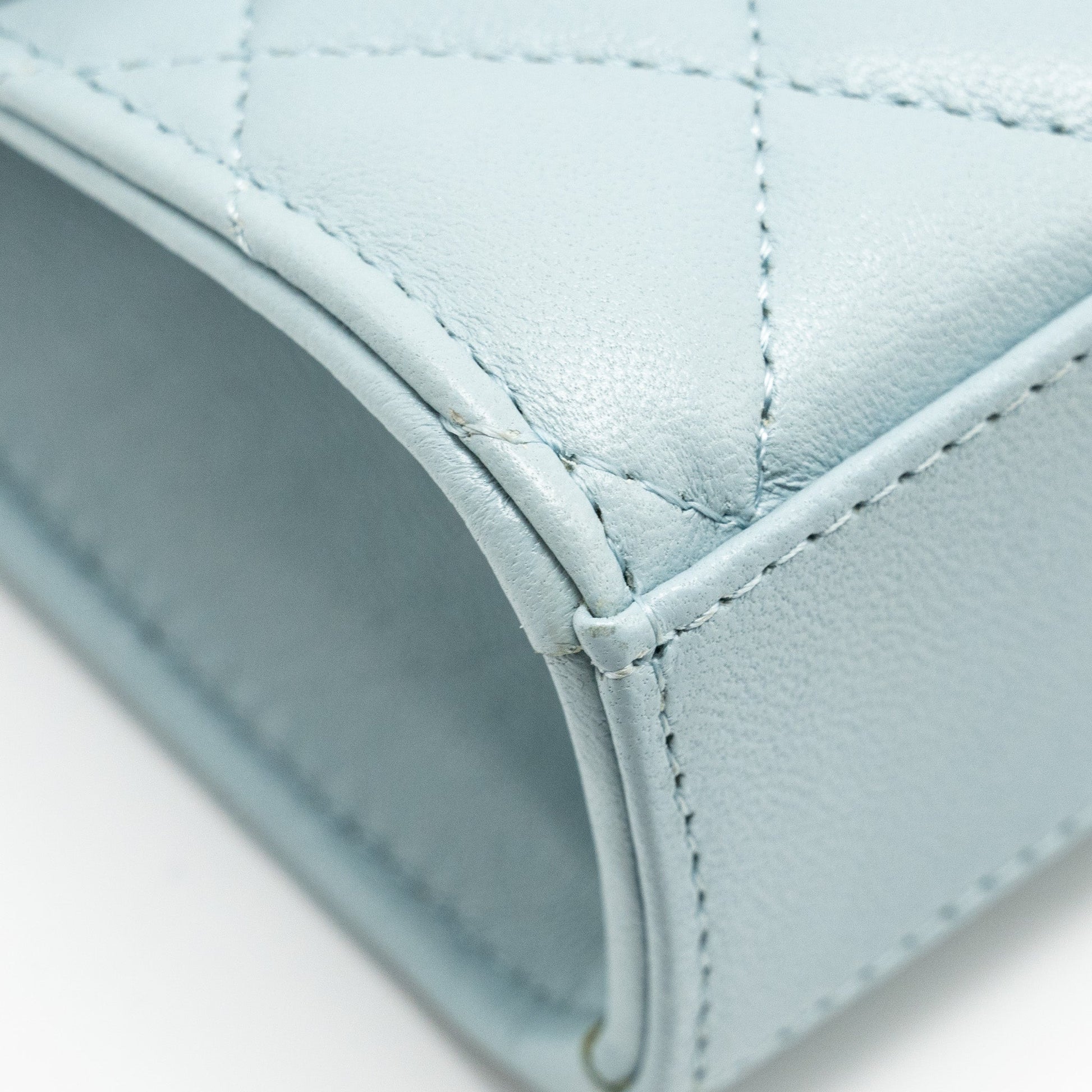 Chanel Top Handle Mini Flap Bag Lambskin Light Blue LGHW
