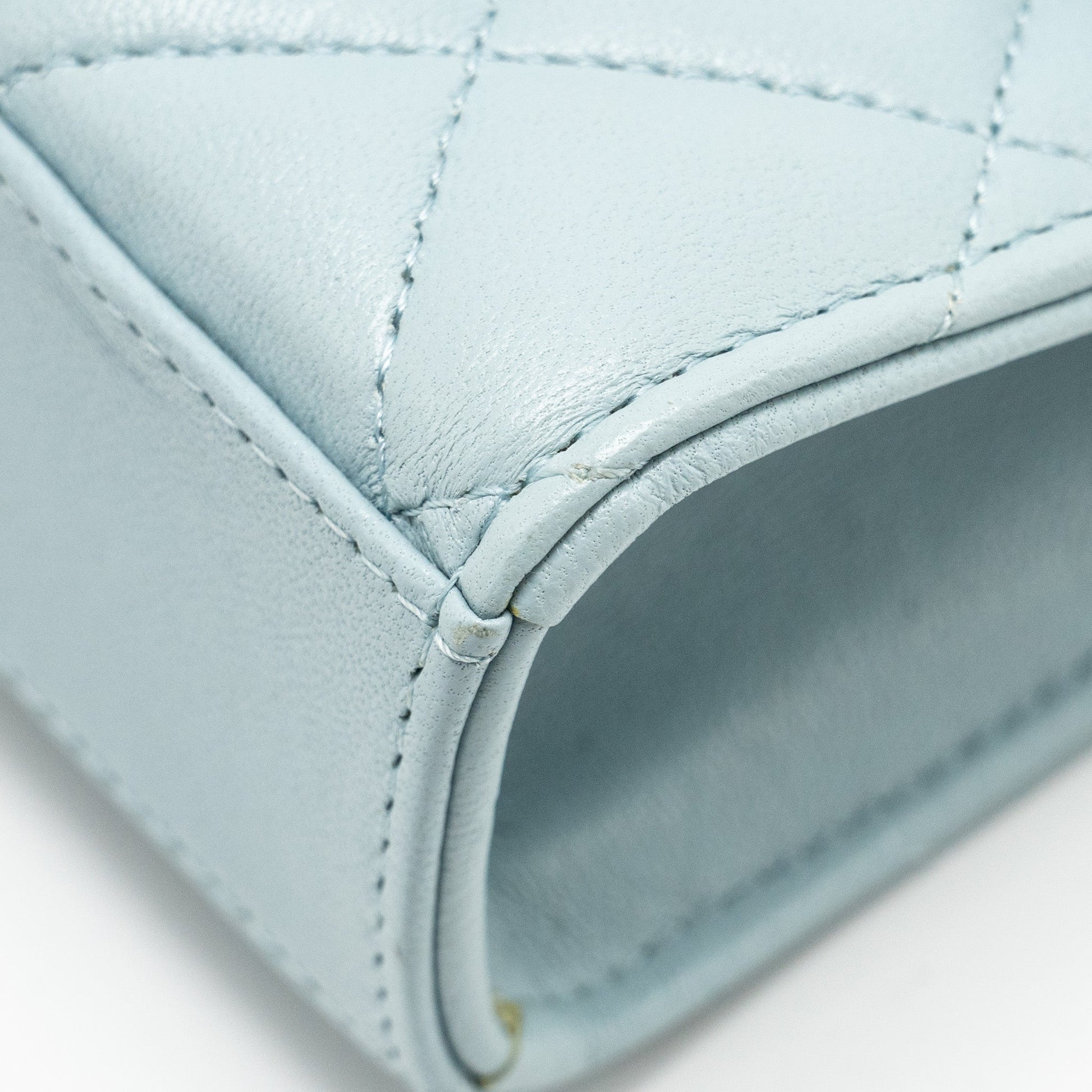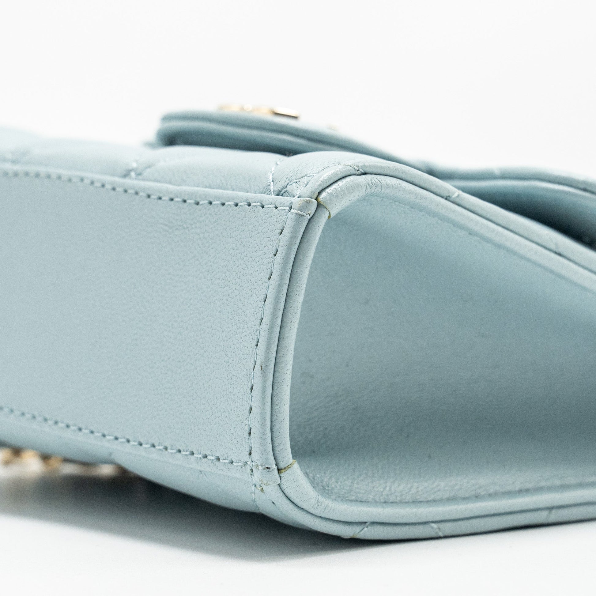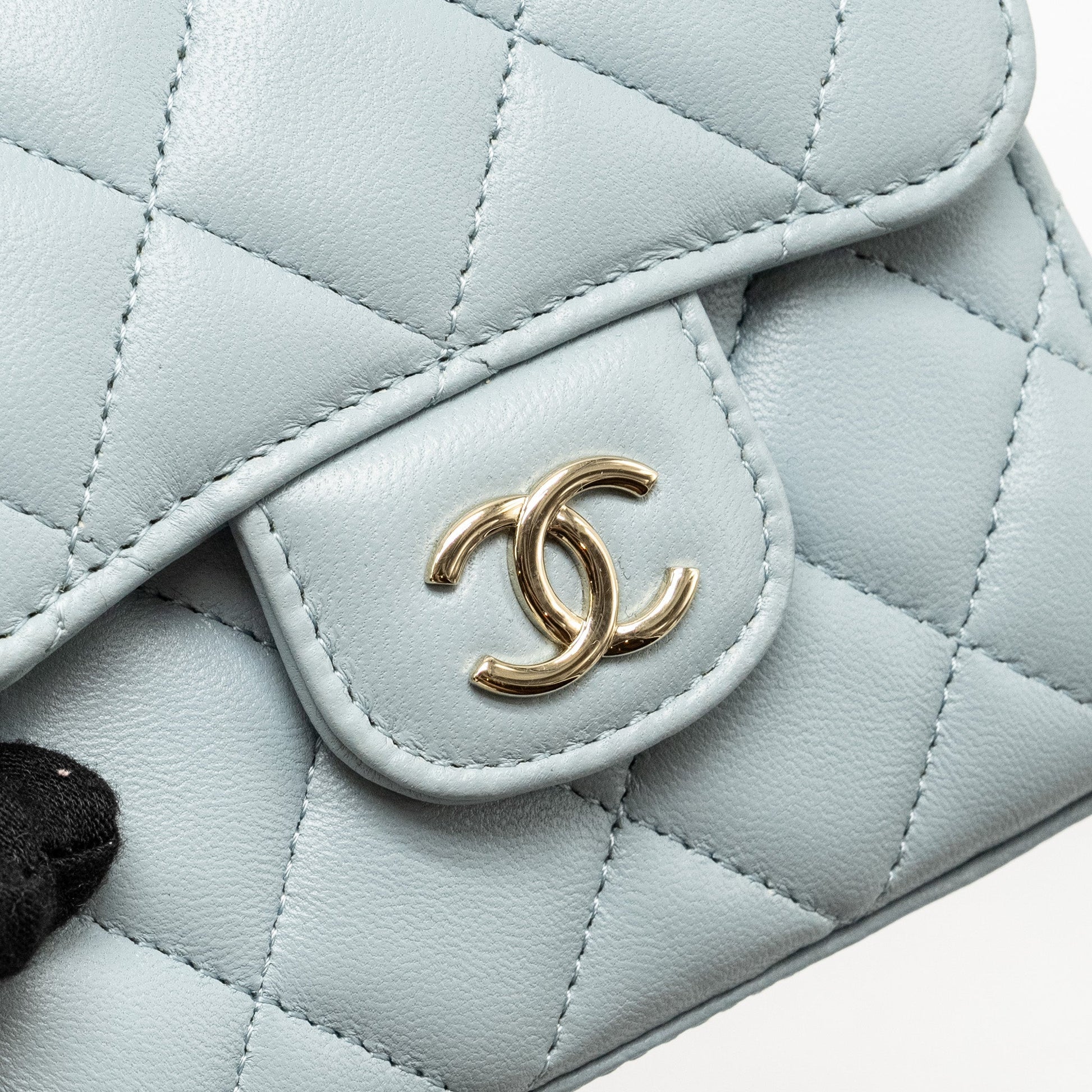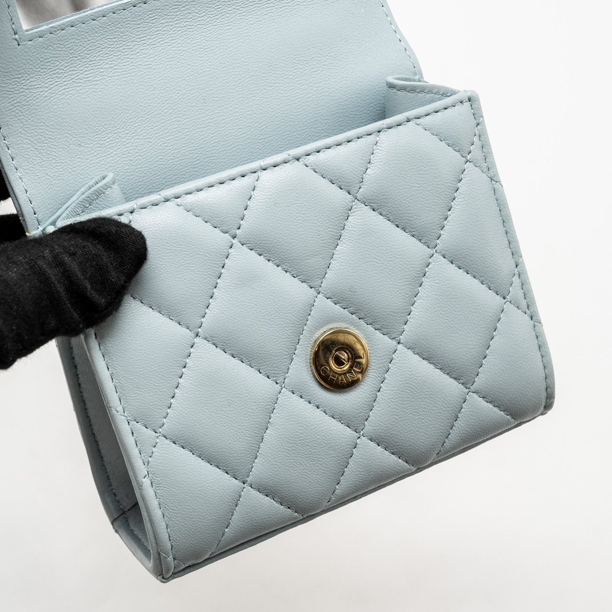 Chanel Top Handle Mini Flap Bag Lambskin Light Blue LGHW