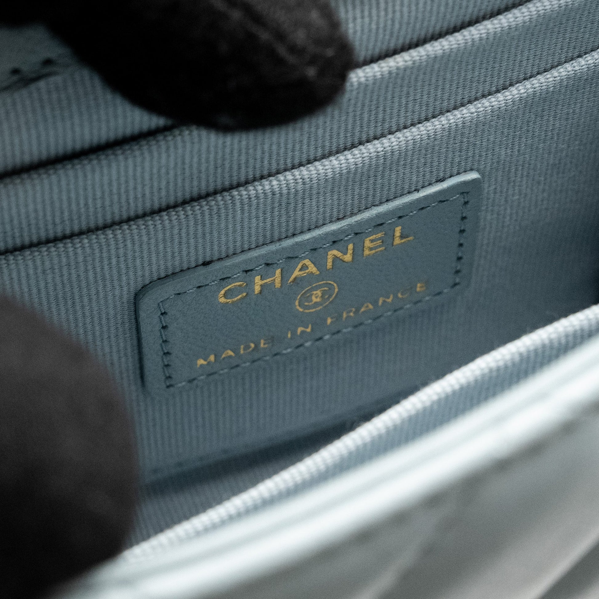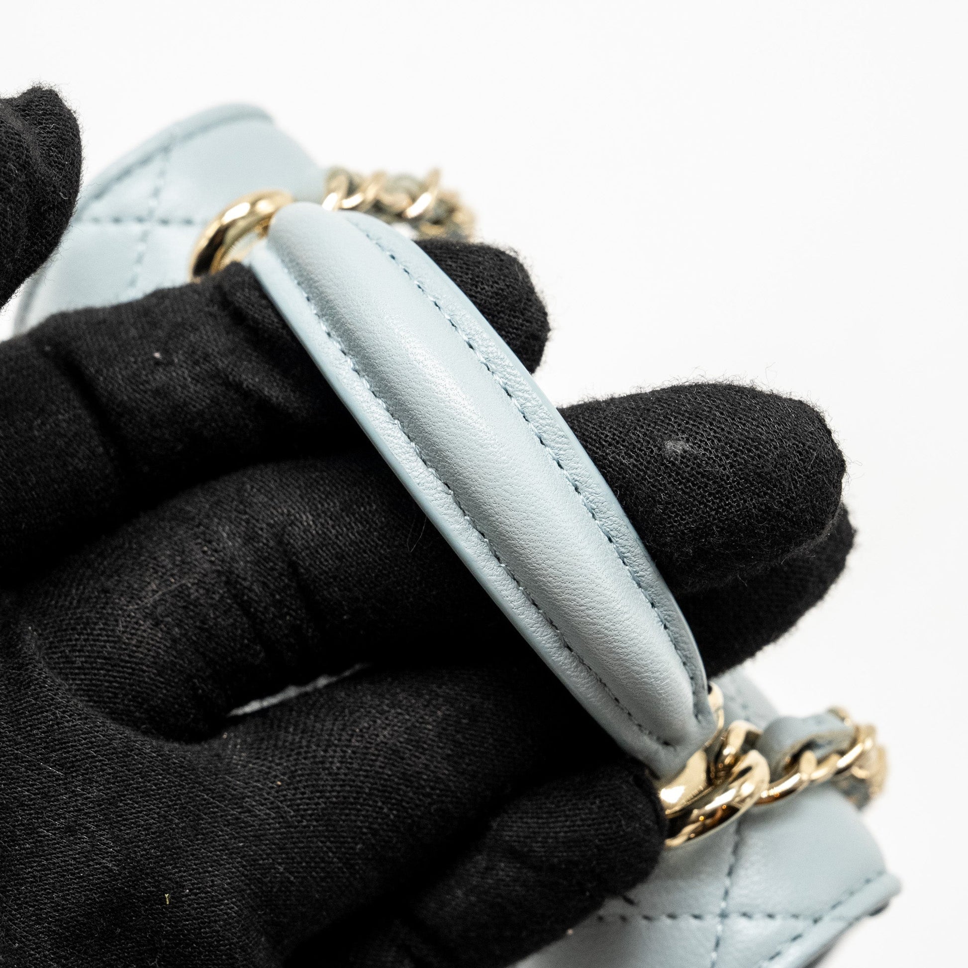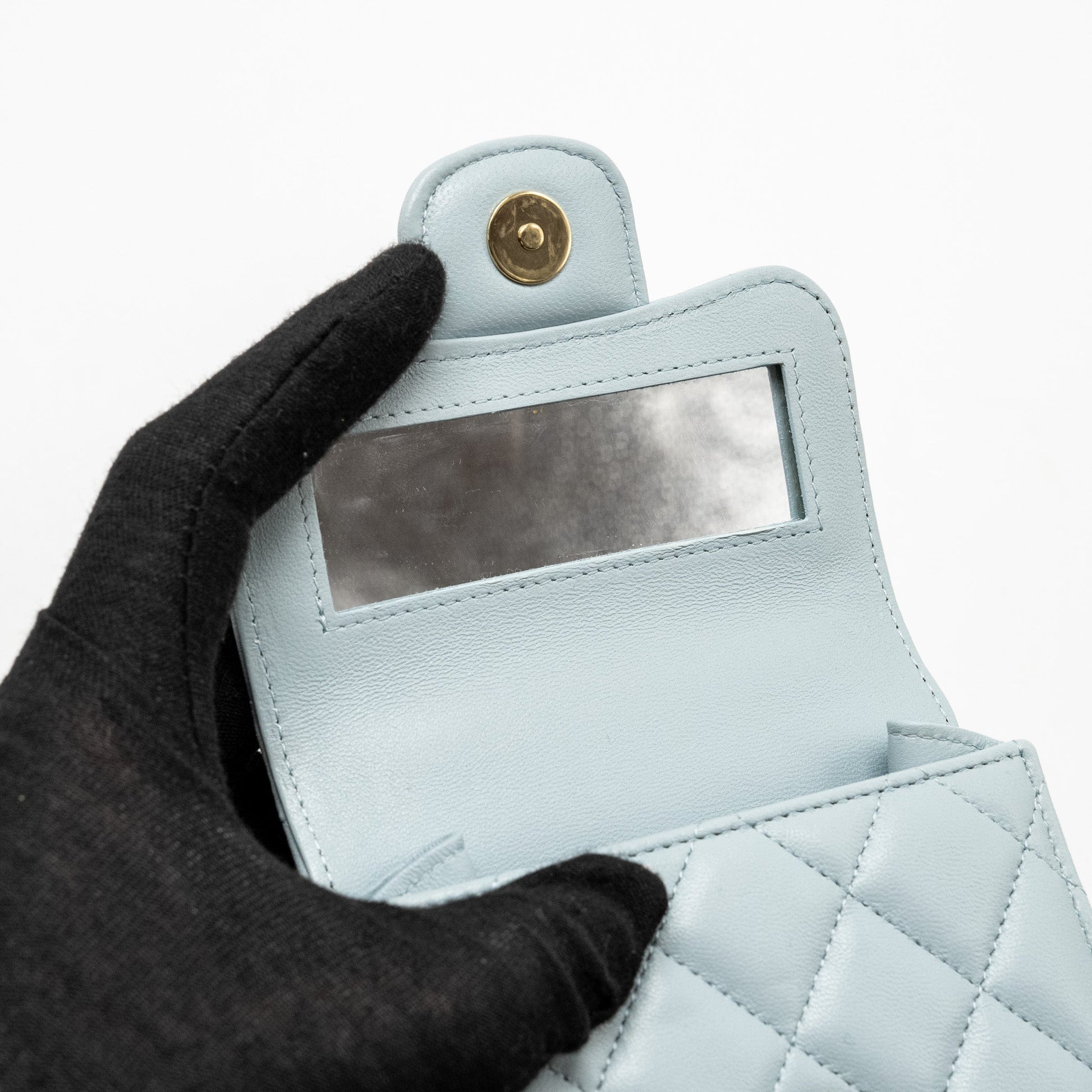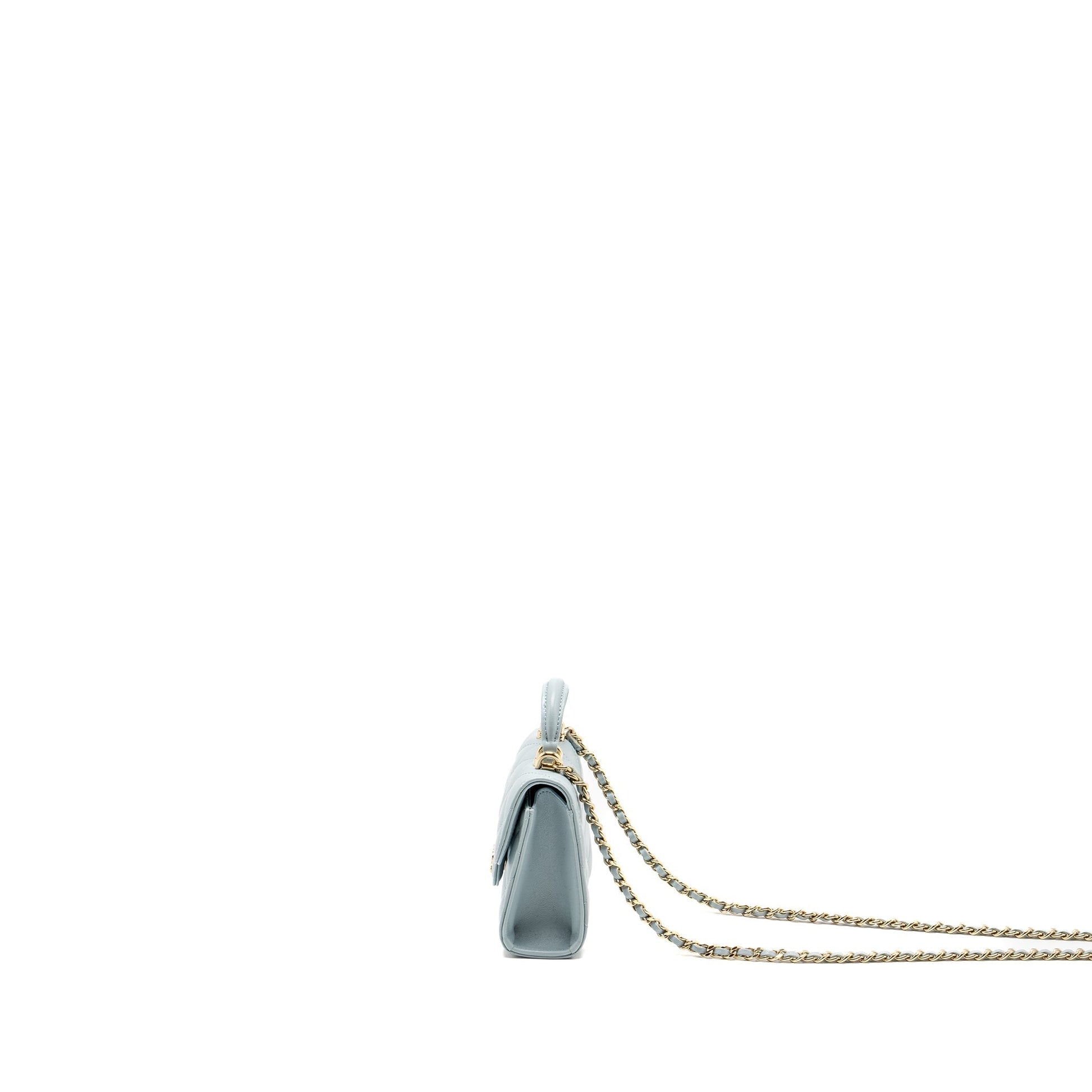Chanel Top Handle Mini Flap Bag Lambskin Light Blue LGHW