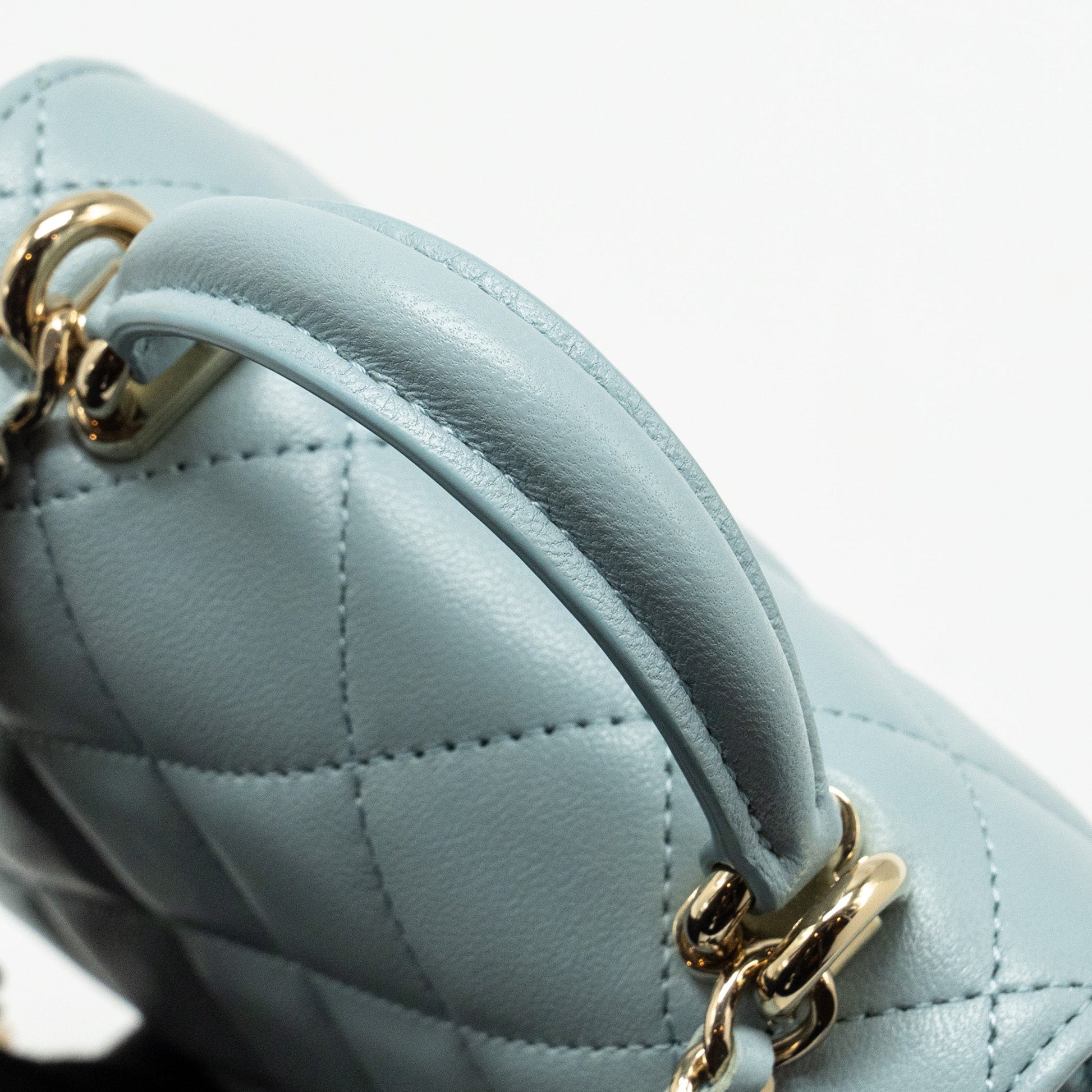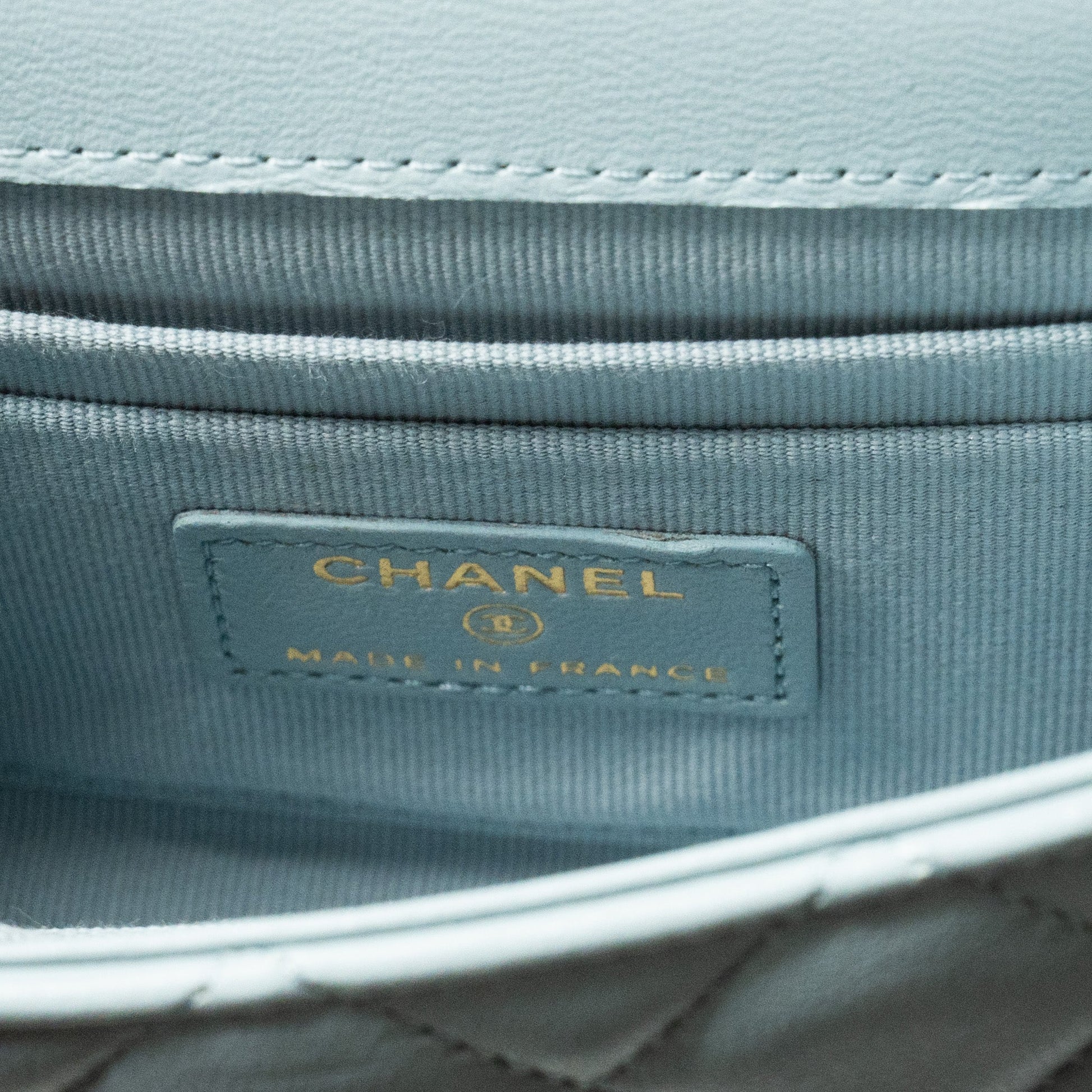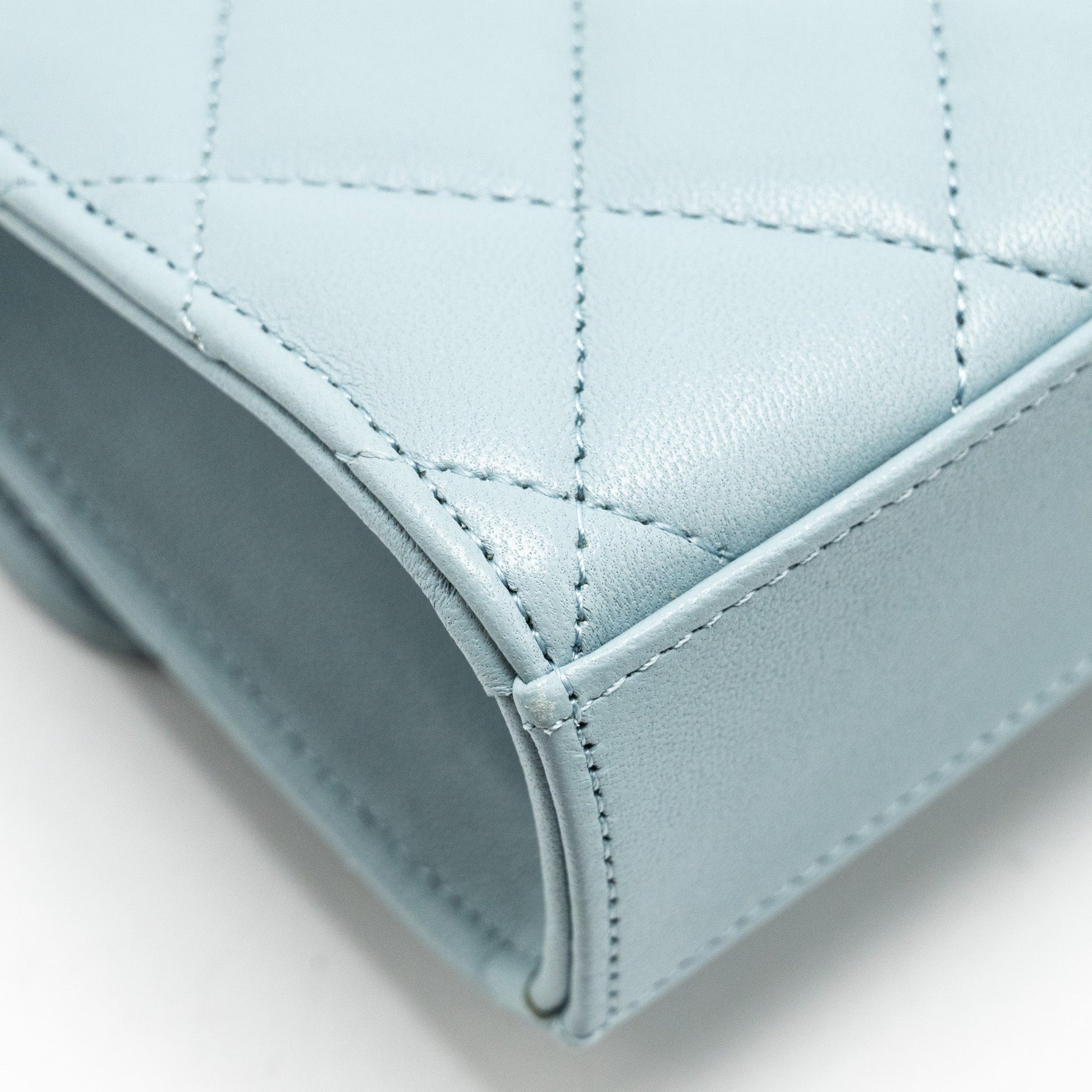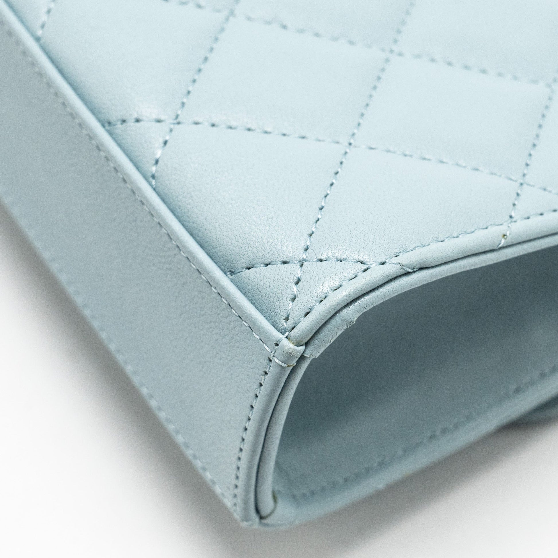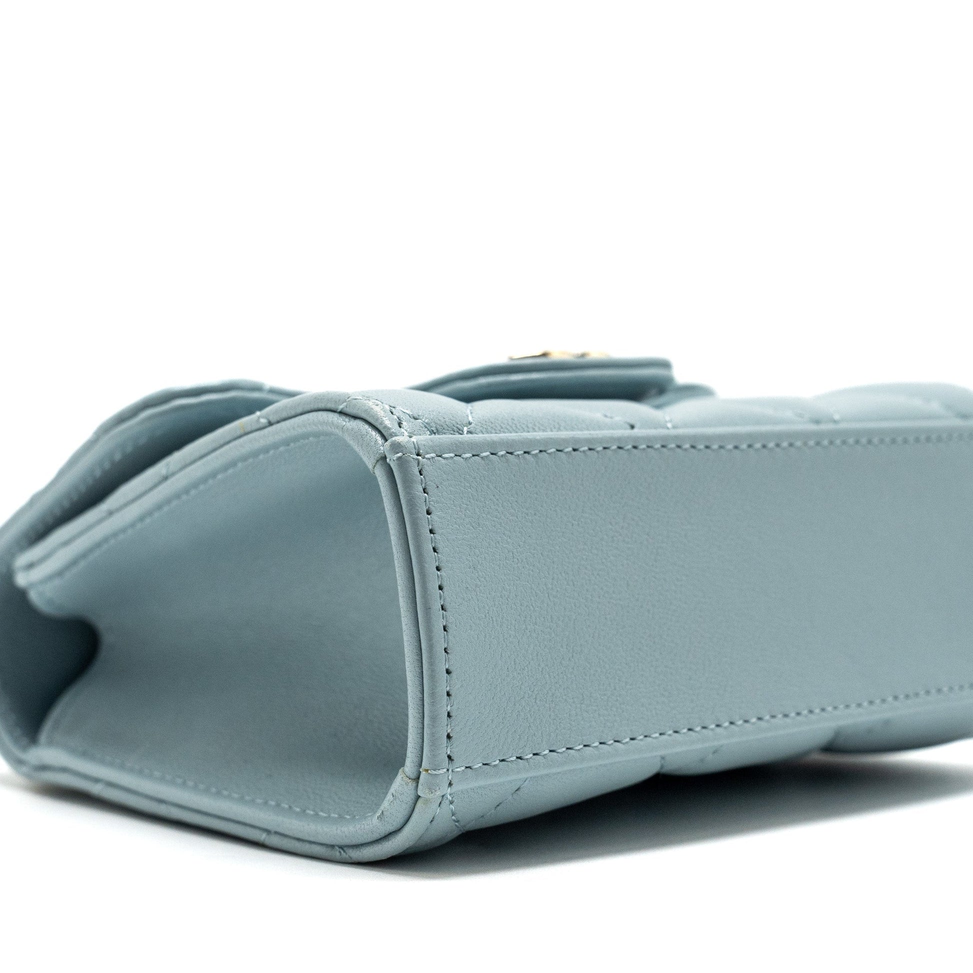 Chanel Top Handle Mini Flap Bag Lambskin Light BLUE LGHW