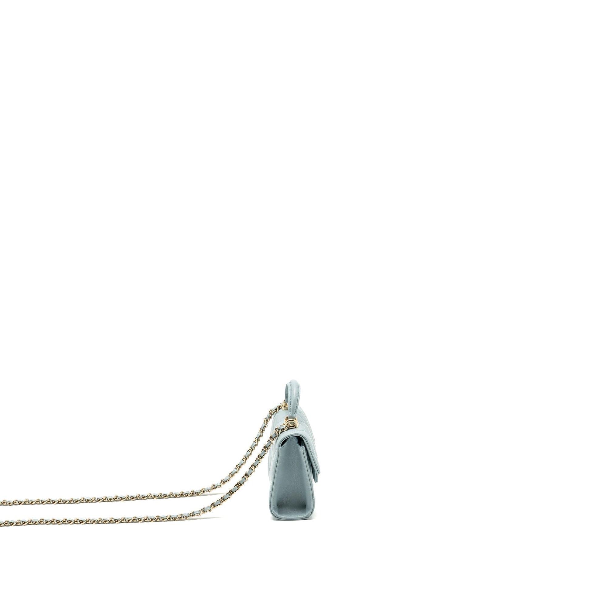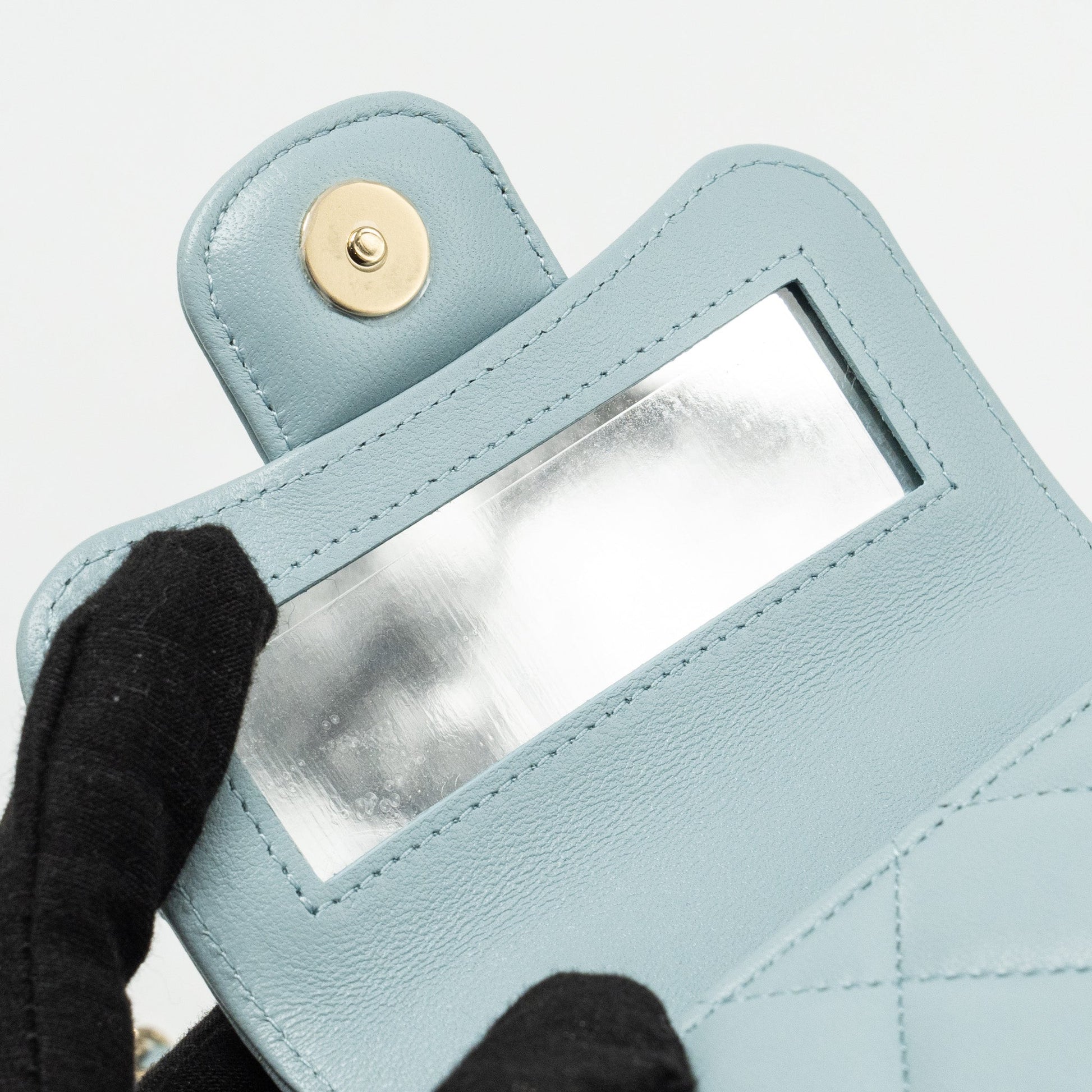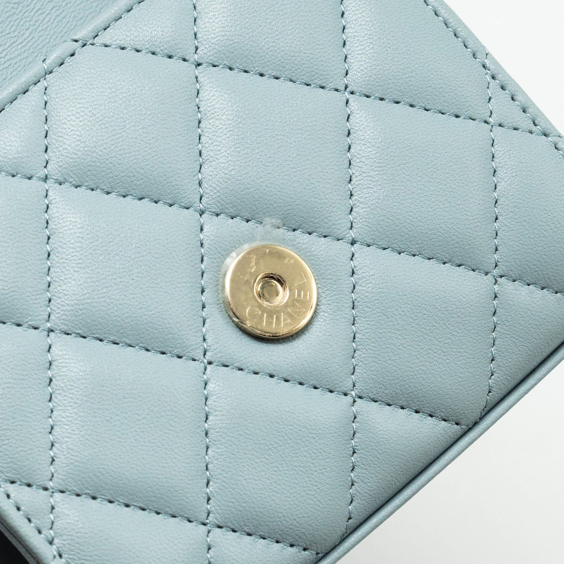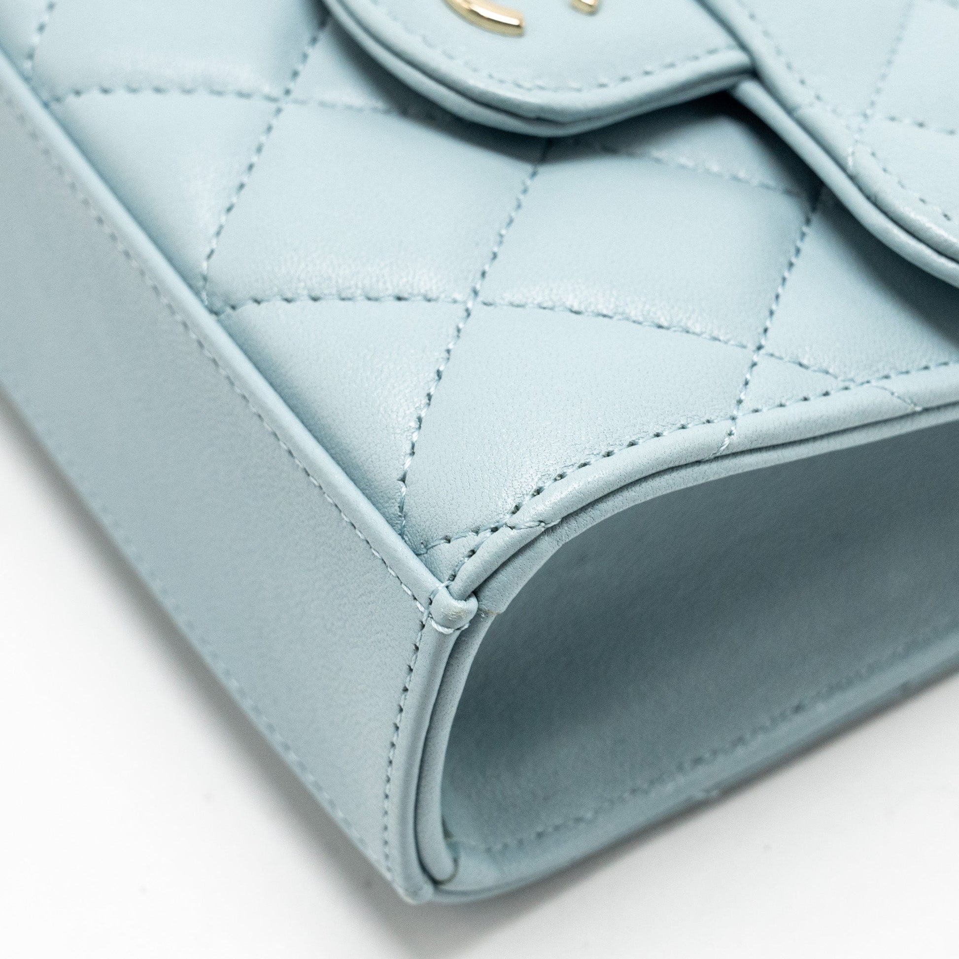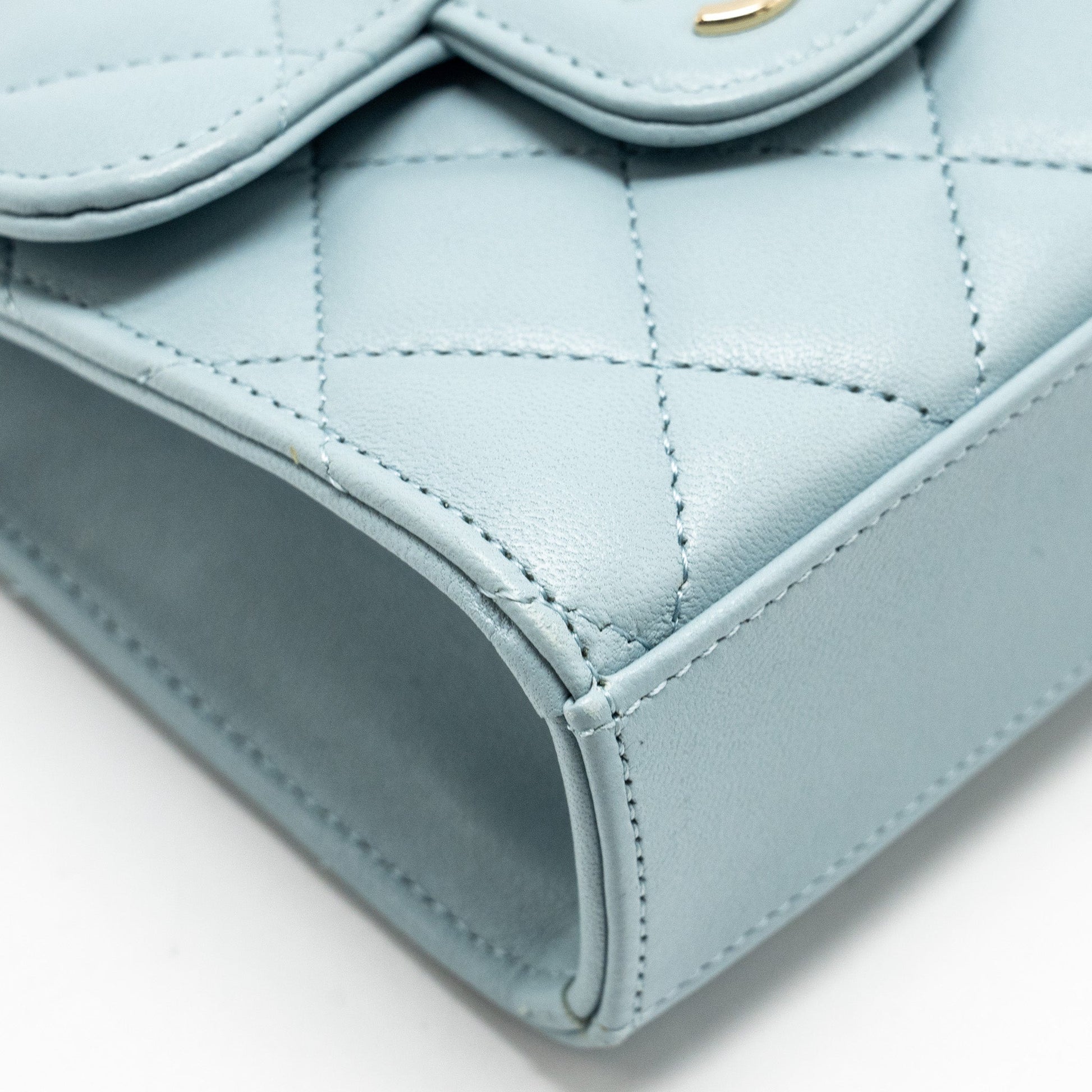 Chanel Top Handle Mini Flap Bag Lambskin Light BLUE LGHW
