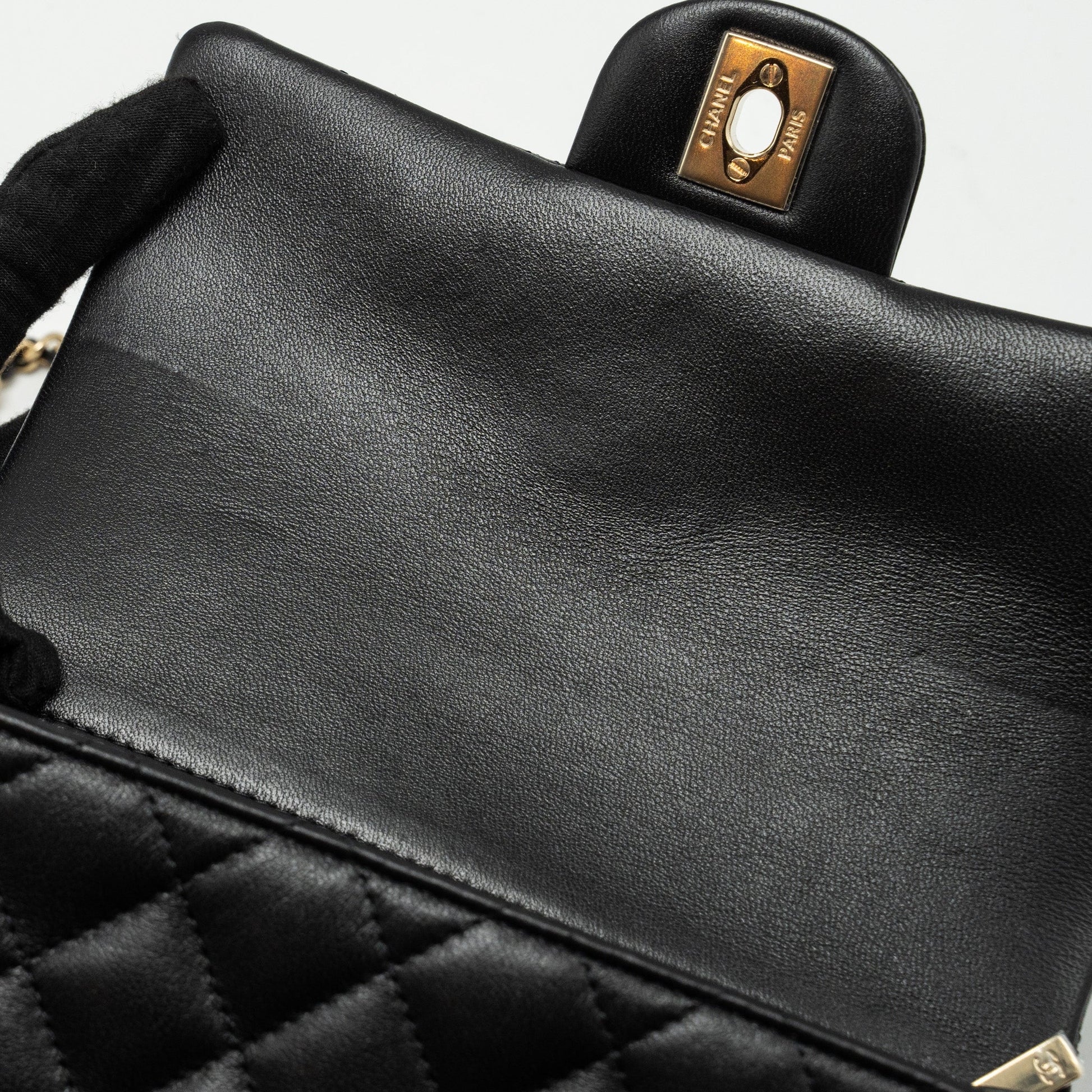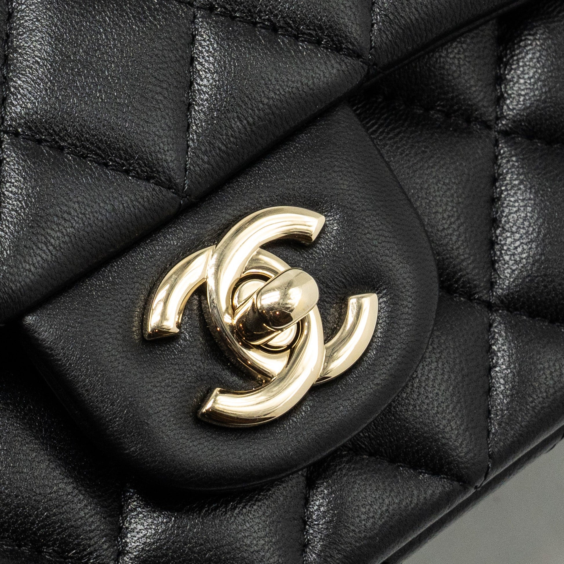 Chanel Top Handle Mini Rectangular Flap Bag Lambskin Black LGHW (Microchip)
