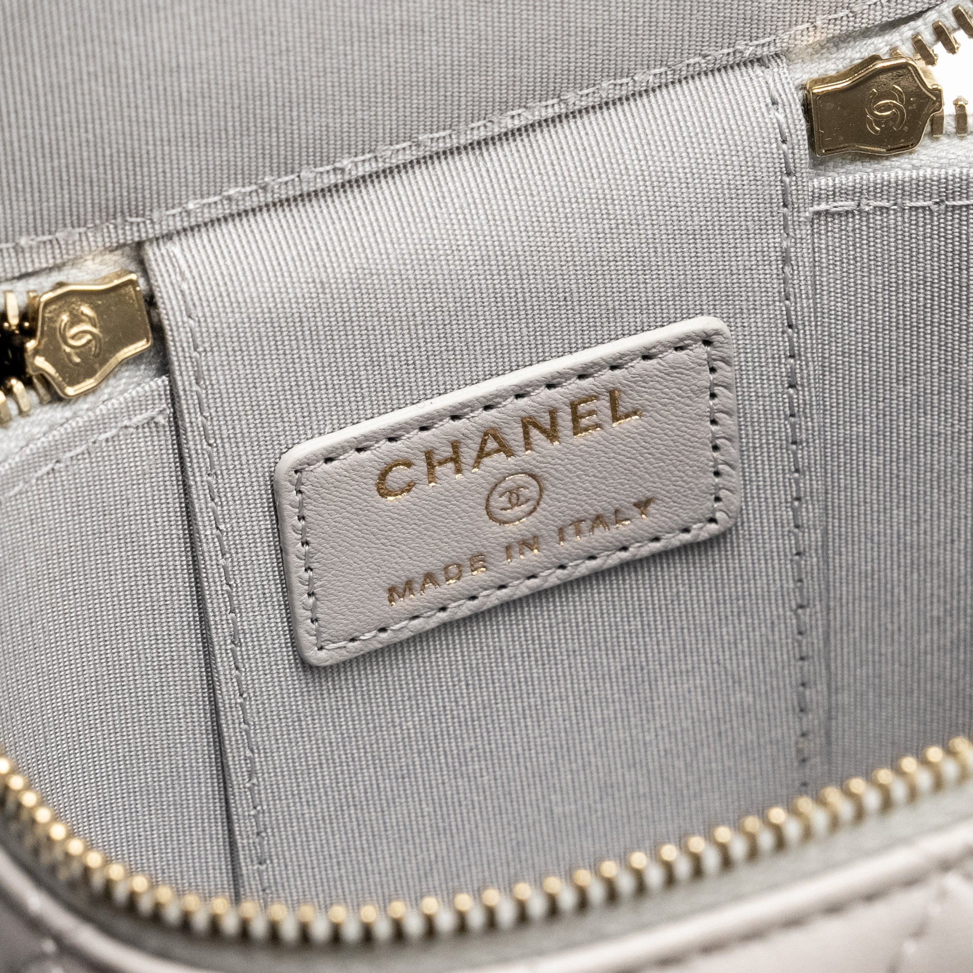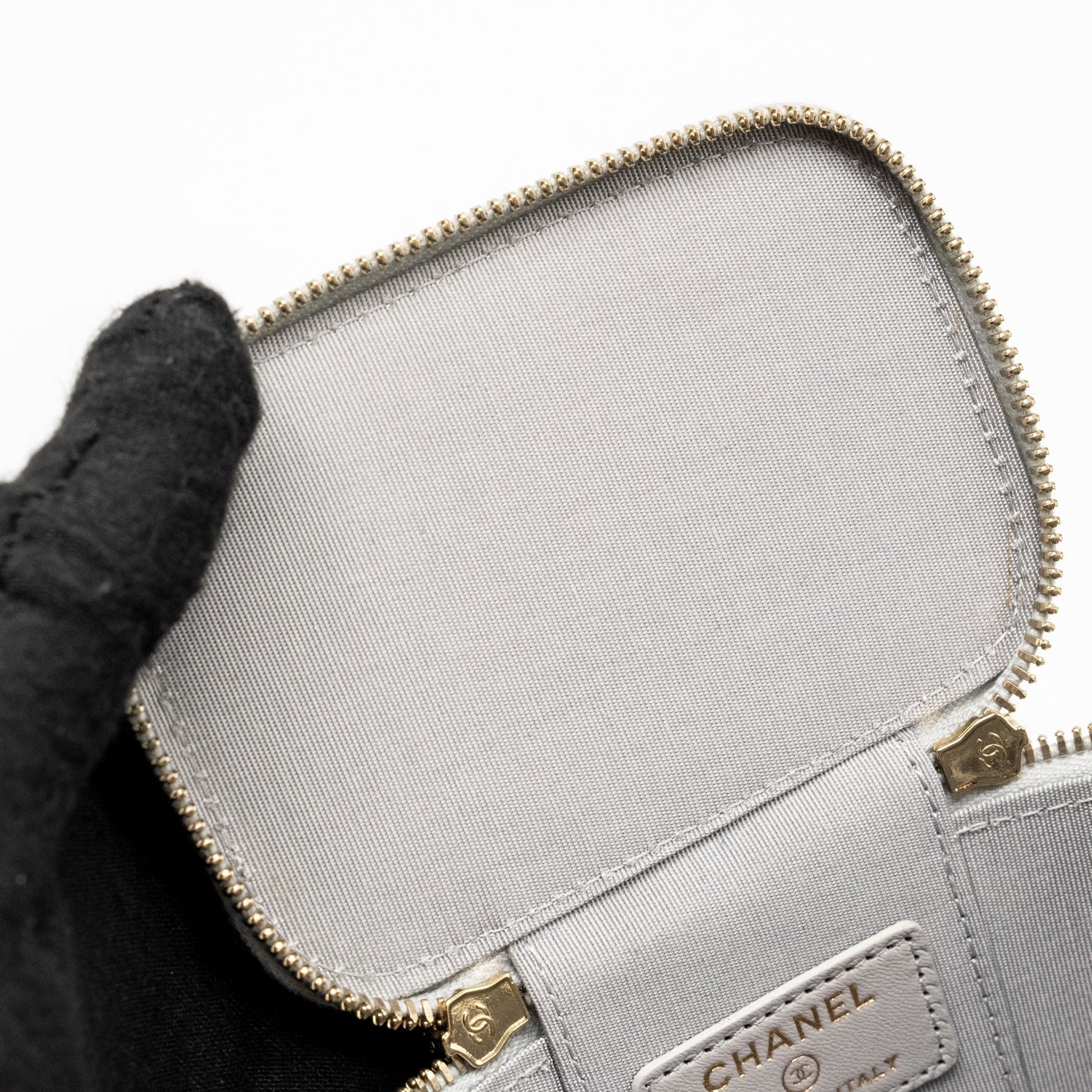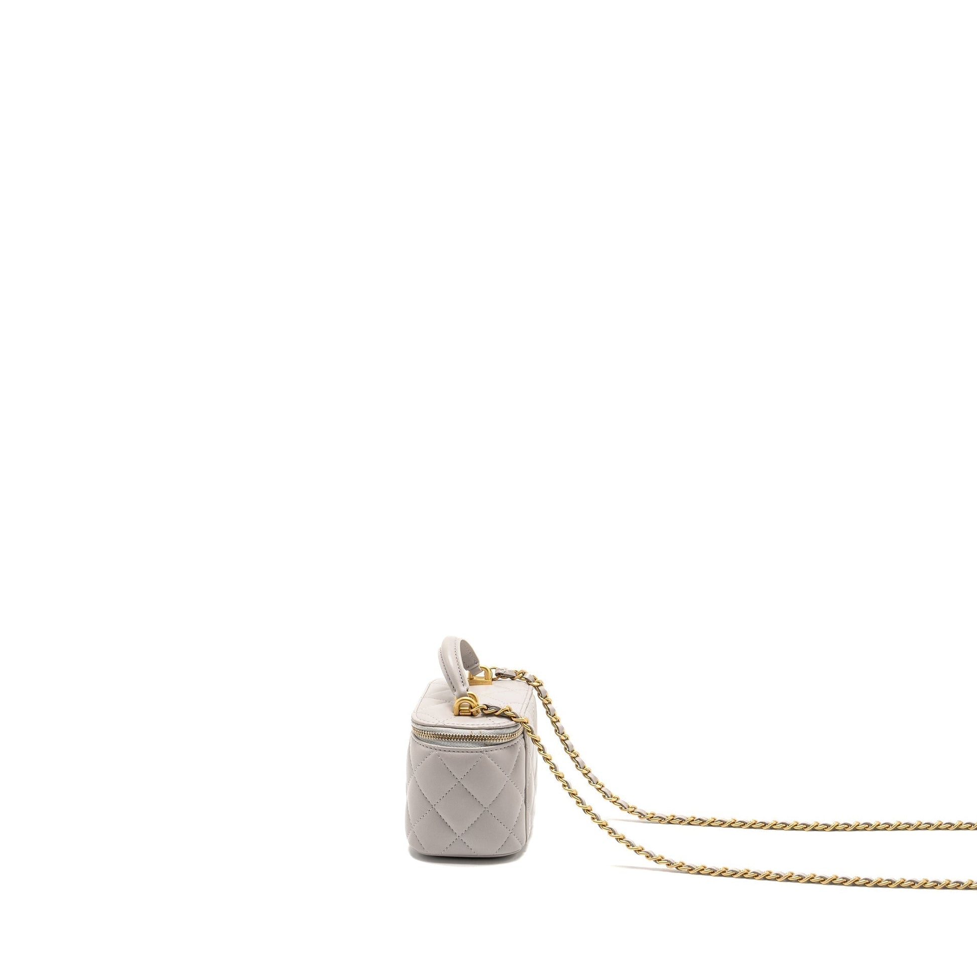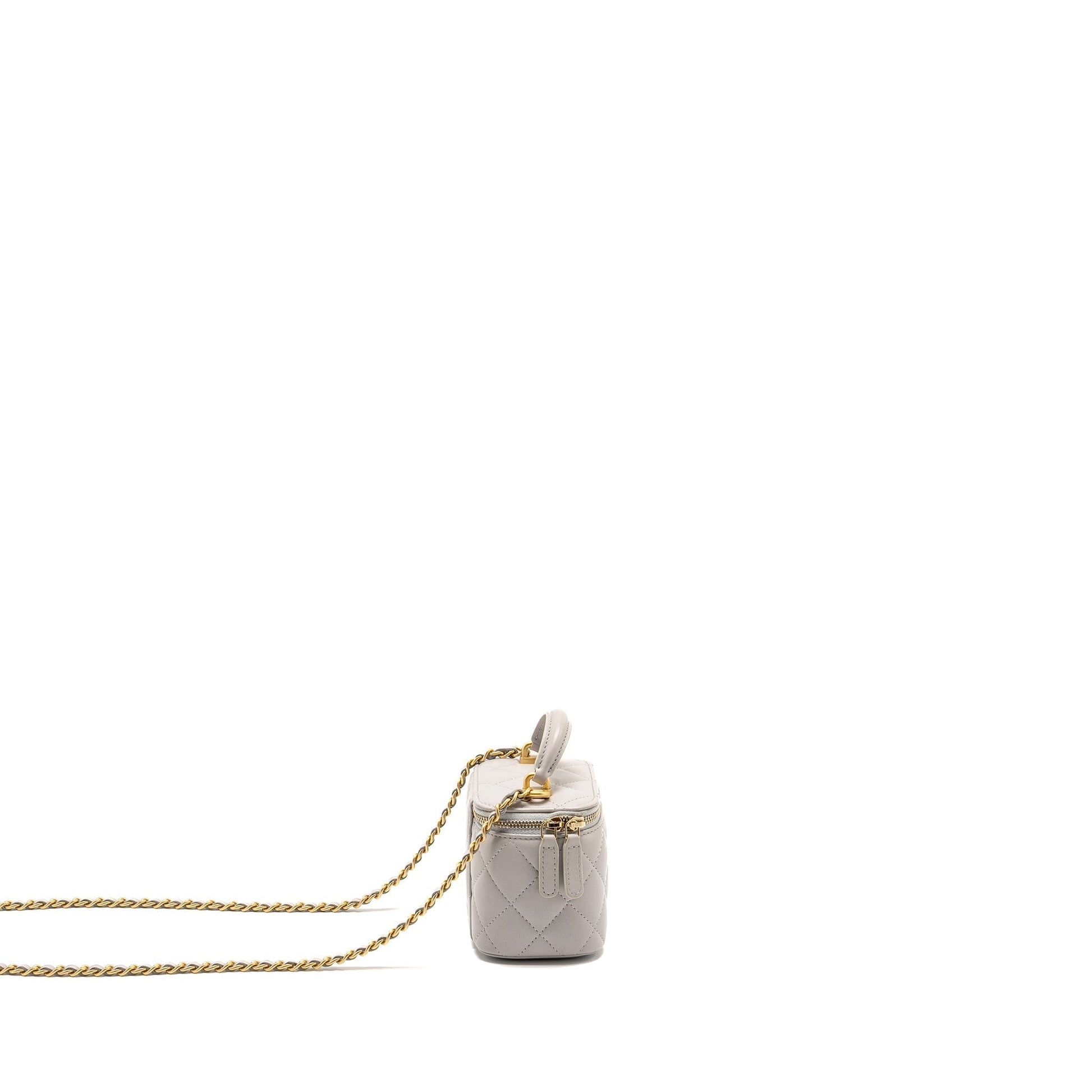 Chanel Top Handle Mini Vanity Case Lambskin Light Grey GHW