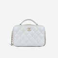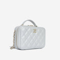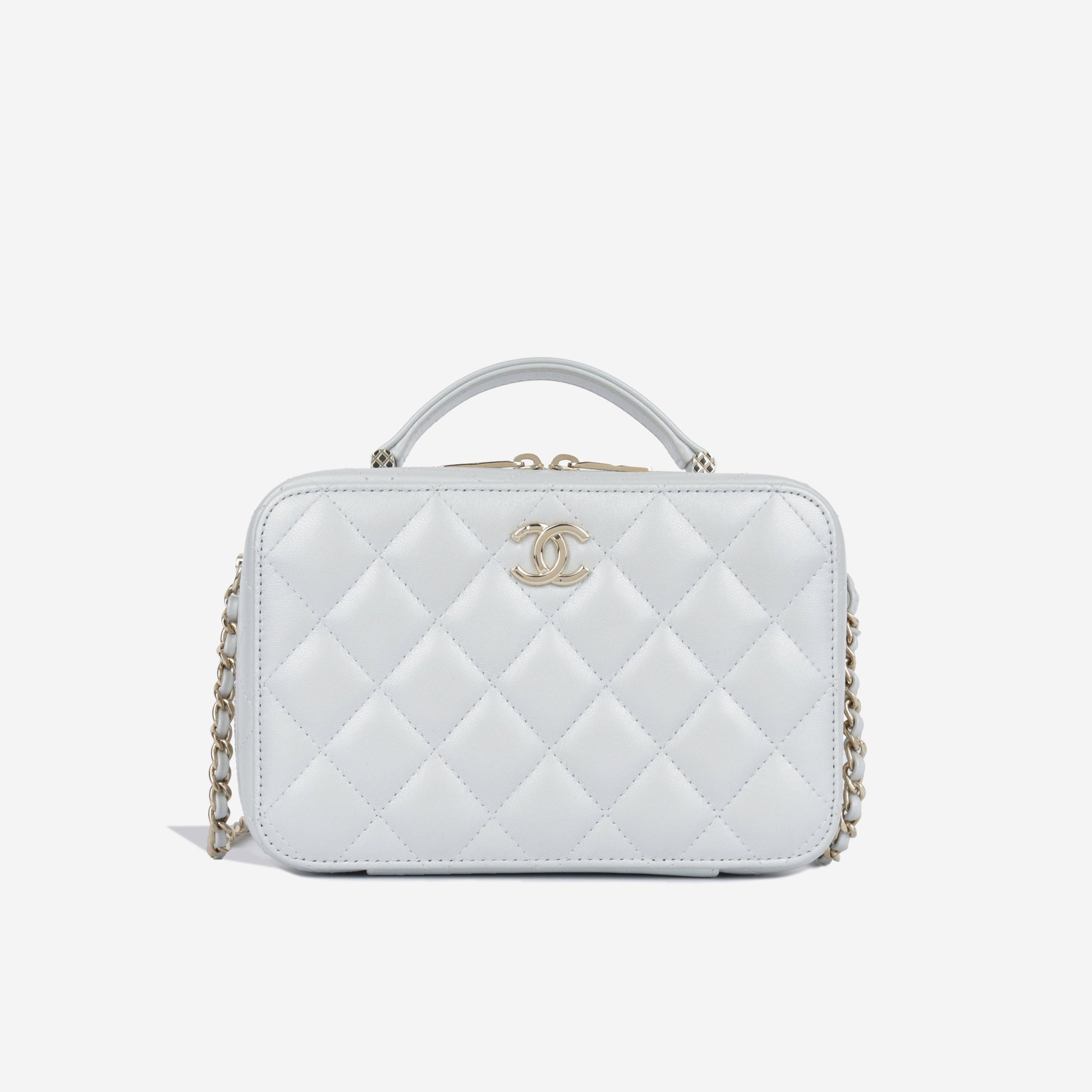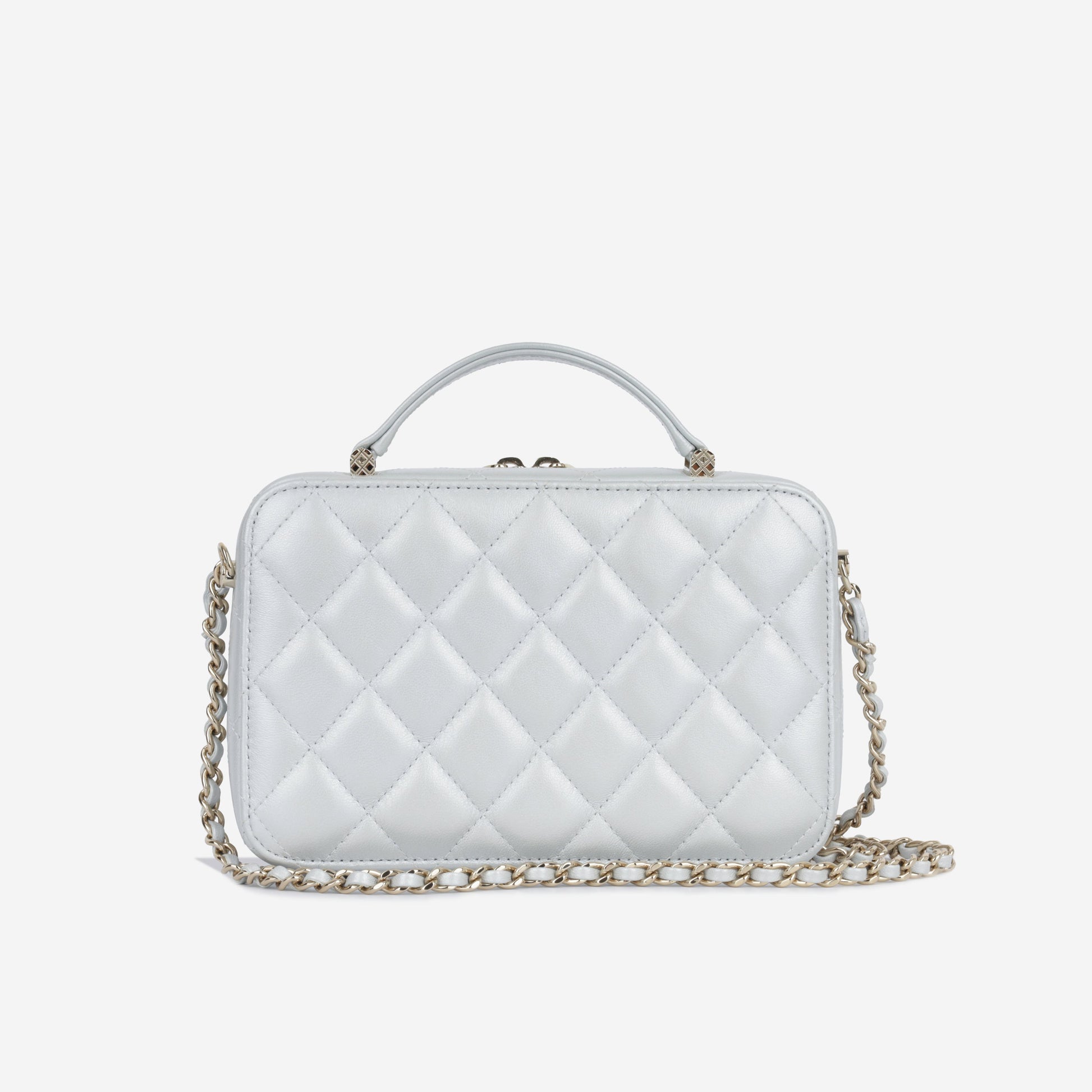 Primarily developed for storing your tiny beauty essentials and other small necessities, the vanity case has come a rather long way since its birth. This petite piece is the farthest thing from just a functional case. This vanity case is crafted from metallic lambskin leather and complimented with champagne gold toned hardware.