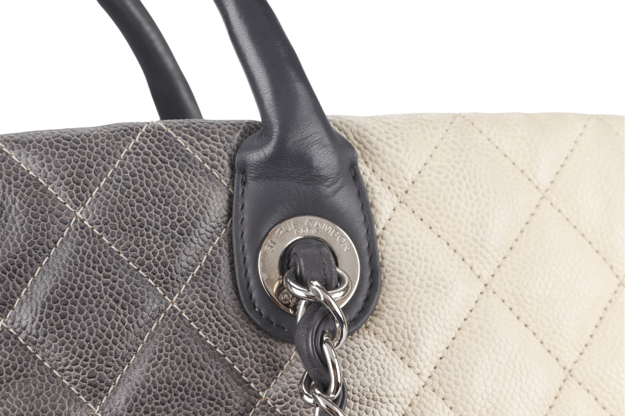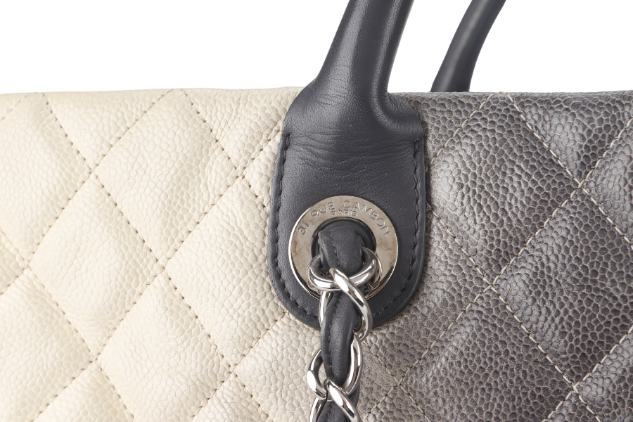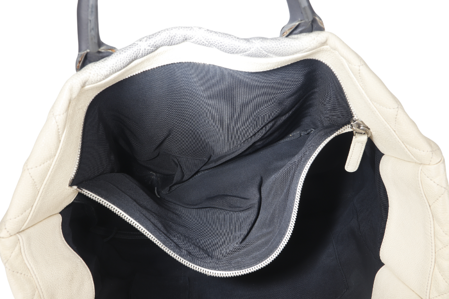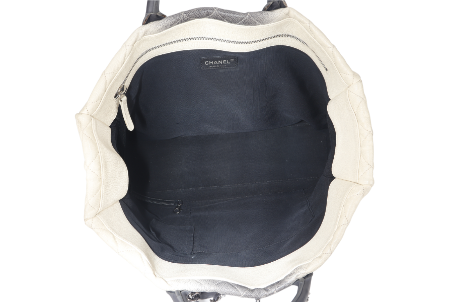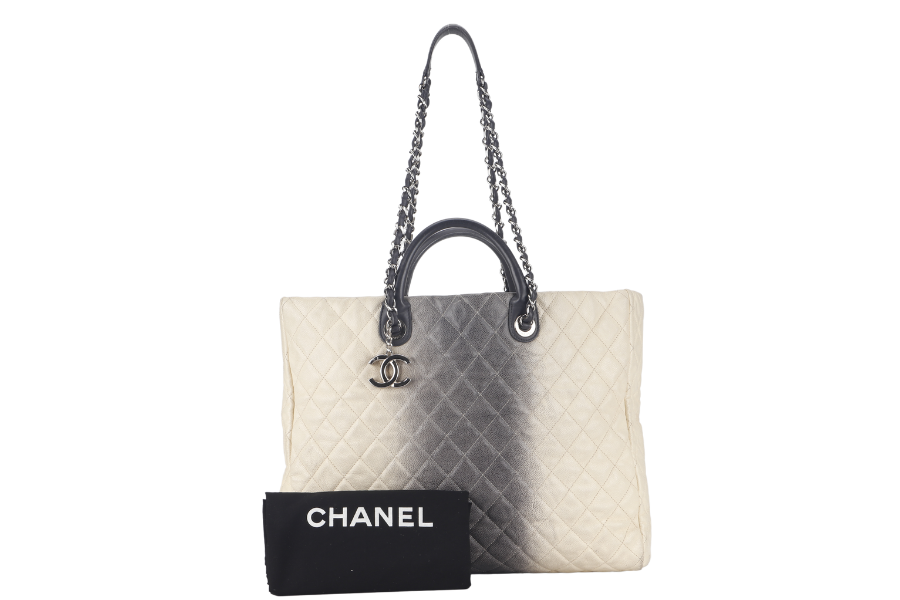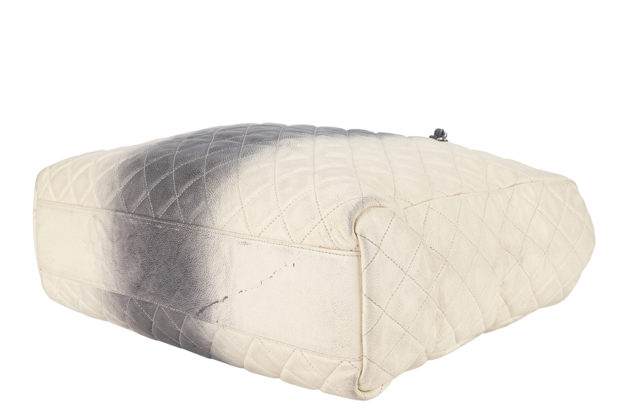 CHANEL TOTE BAG LARGE (1784xxxx) CREAM & GREY OMBRE CAVIAR LEATHER SILVER HARDWARE WITH DUST COVER