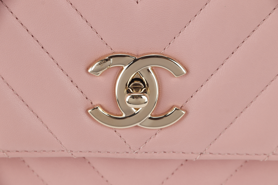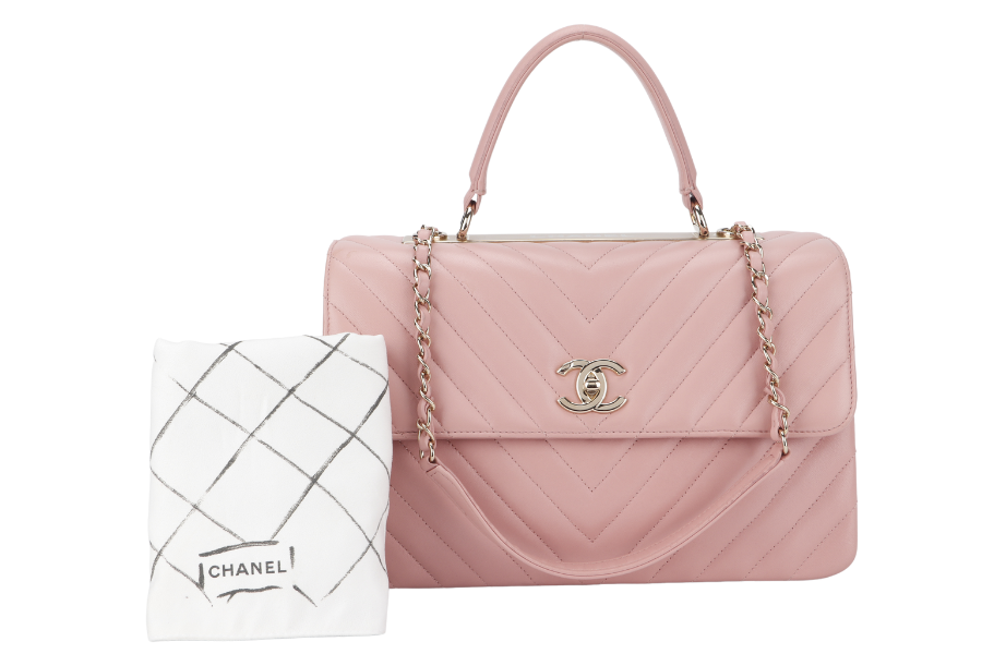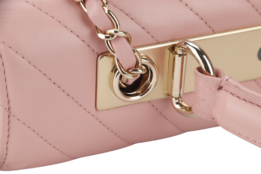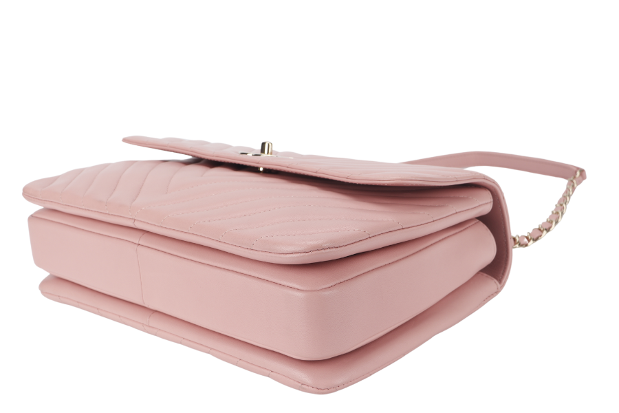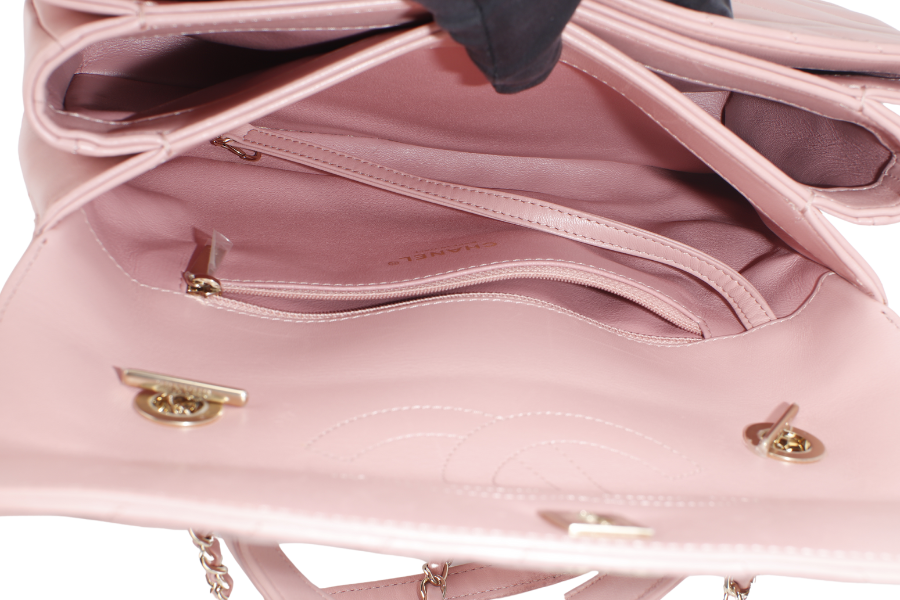 CHANEL TRENDY CC FLAP (2550xxxx) WITH TOP HANDLE MEDIUM PINK LAMBSKIN GOLD HARDWARE WITH DUST COVER