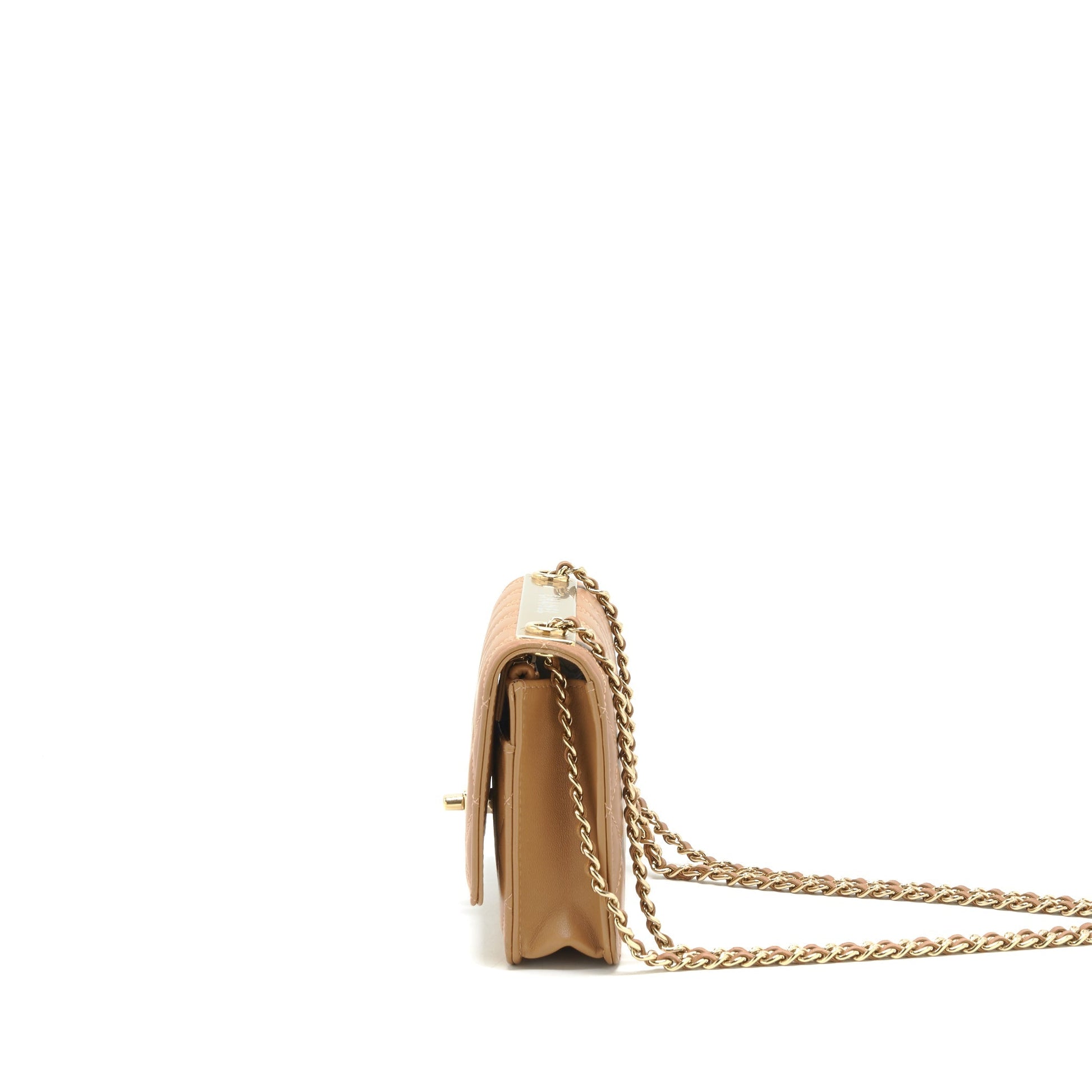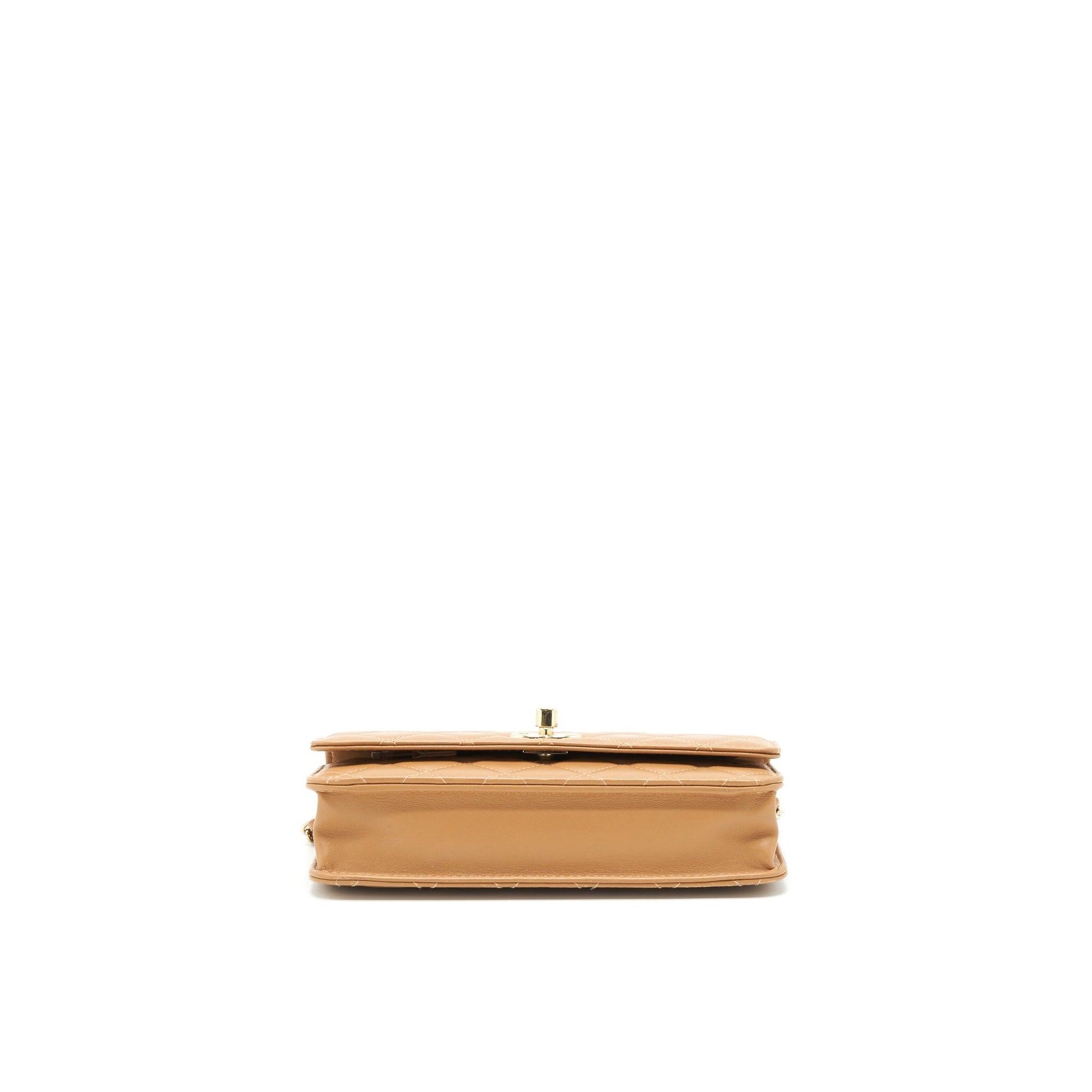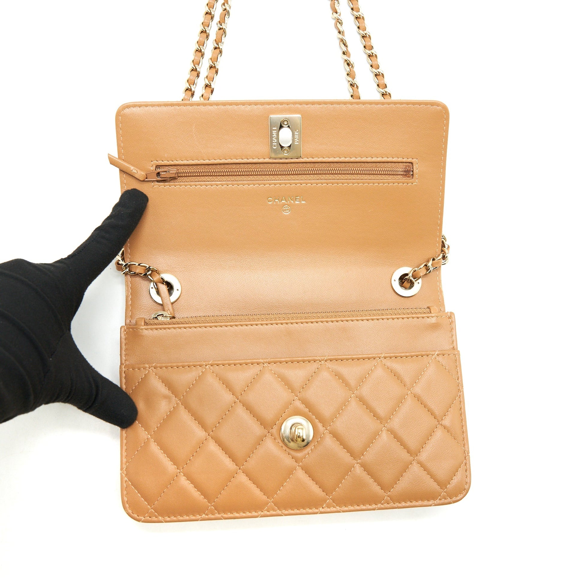 Chanel Trendy CC Wallet On Chain Lambskin Dark Beige LGHW