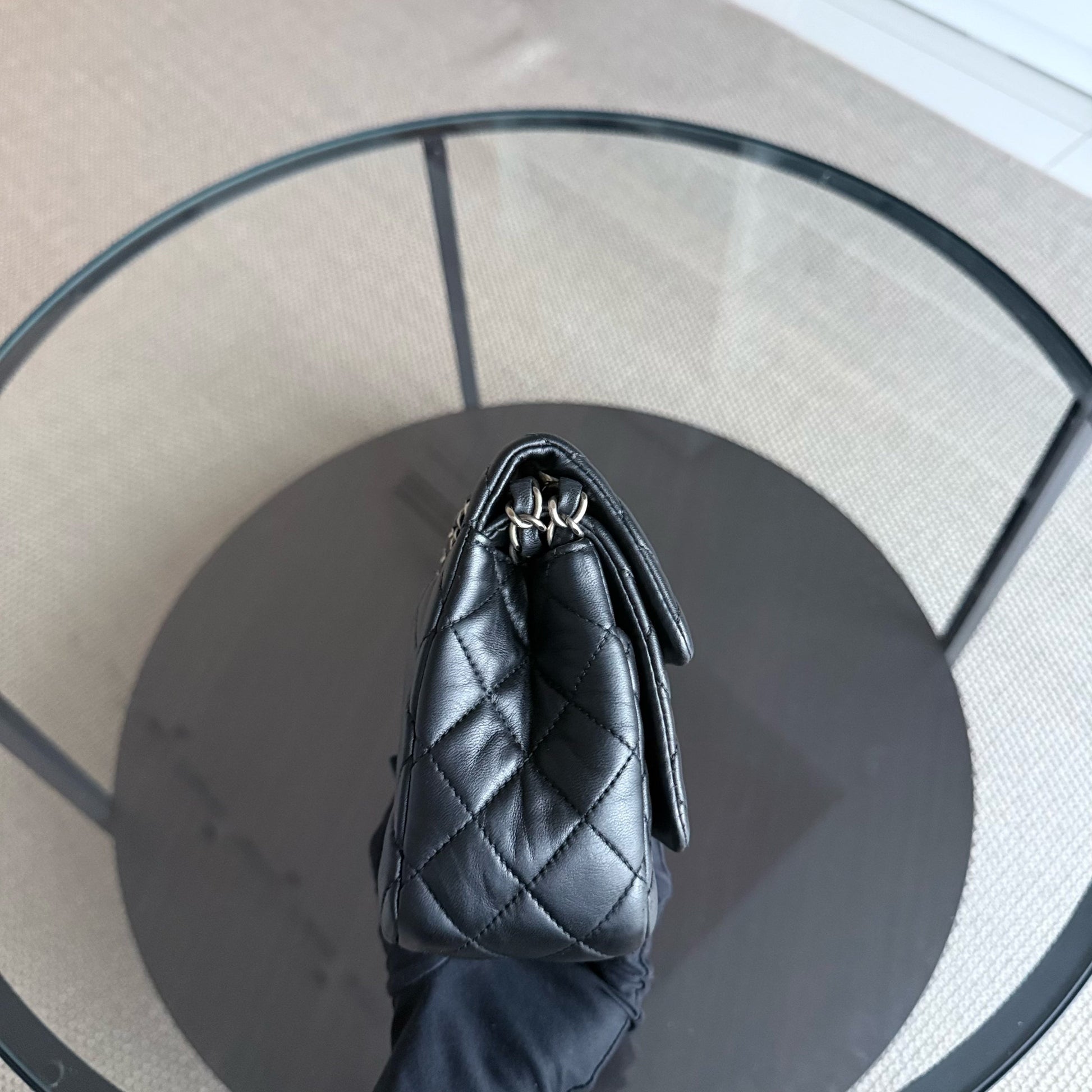 Chanel Tri-fold Seasonal Flap - Quilted Lambskin Black Silver Hardware Series 13