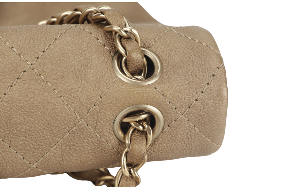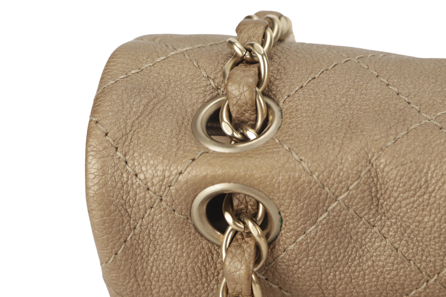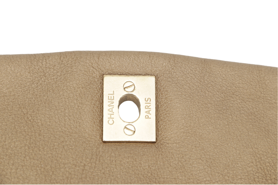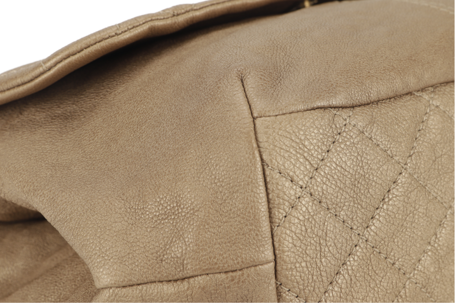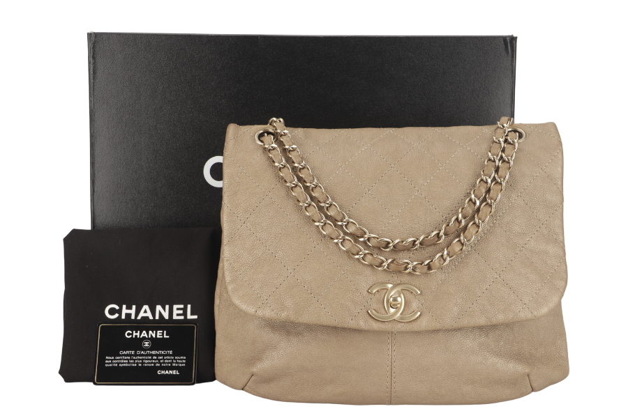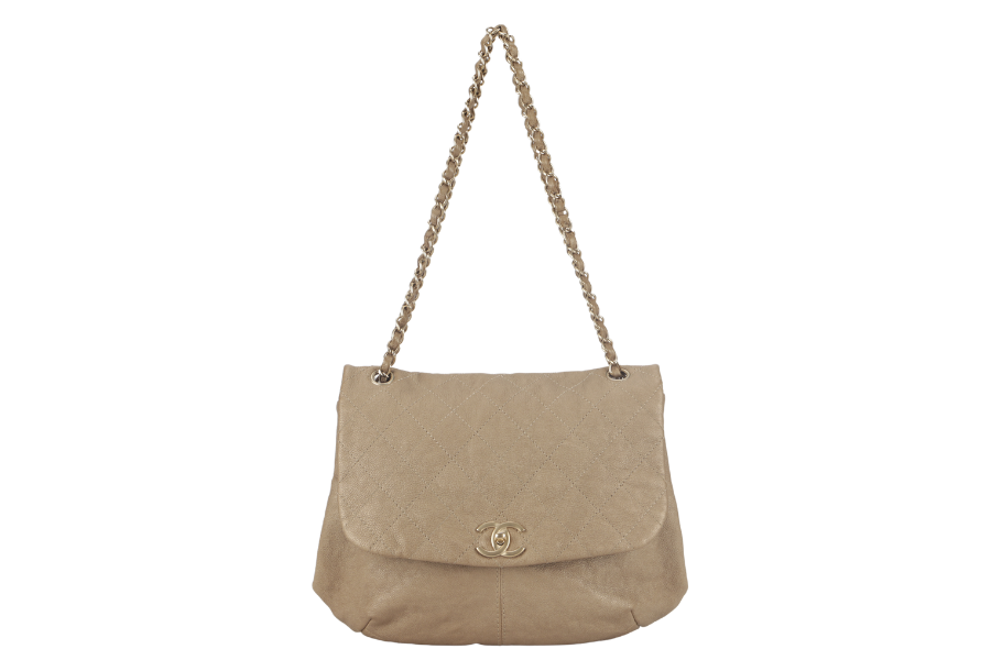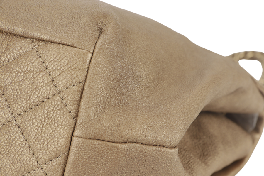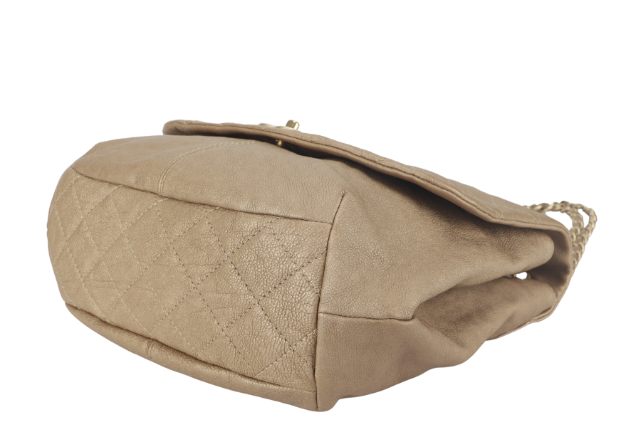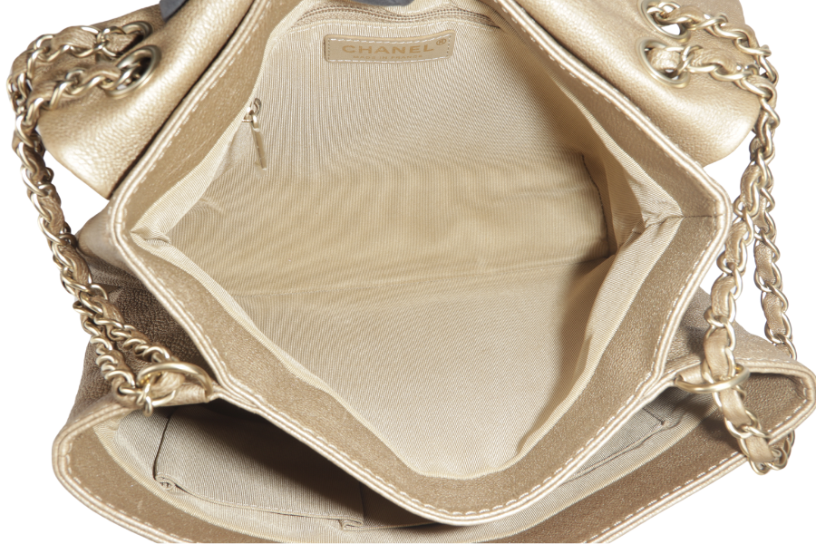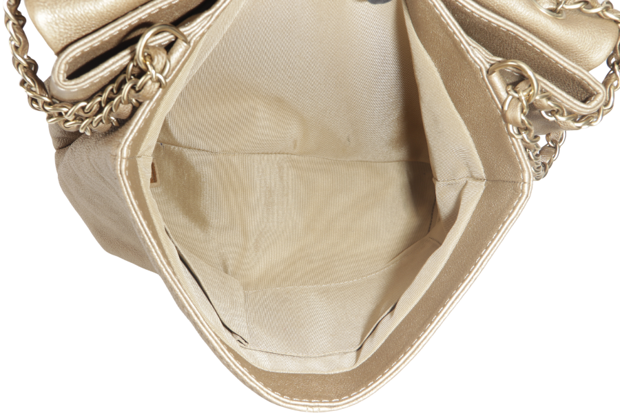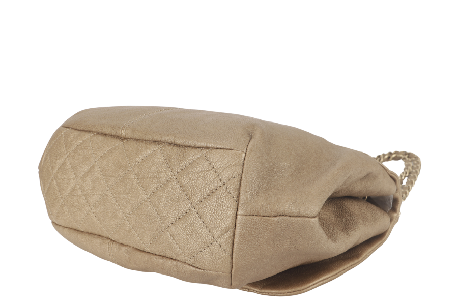 CHANEL TRIANON MESSENGER BAG (1746xxxx) GOLD DISTRESSED LEATHER GOLD HARDWARE WITH DUST COVER , AND BOX
