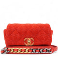 | This pillowy soft shoulder bag is crafted of oversized quilted tweed in red. The refined bag features a chain detail CC turn-lock on the flap, a magnetic snap pocket at the rear, and a leather threaded aged gold, ruthenium, and silver chain-link shoulder strap with a leather shoulder pad. The front flap opens to a red fabric interior with a zipper pocket. . | Material: Tweed Lining: Textile Hardware: Gold color finish metal Accessories: Serial Number: 28878871 Production Year: 2019 | ![]() |