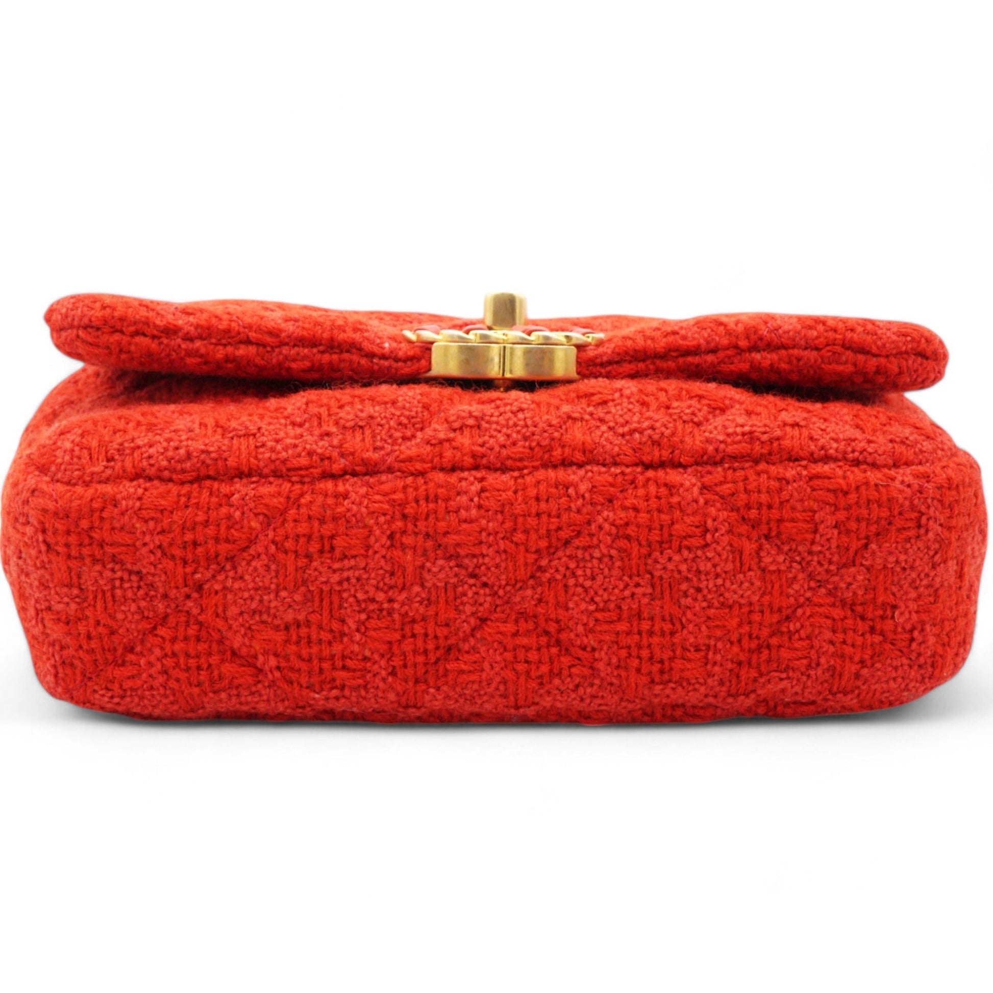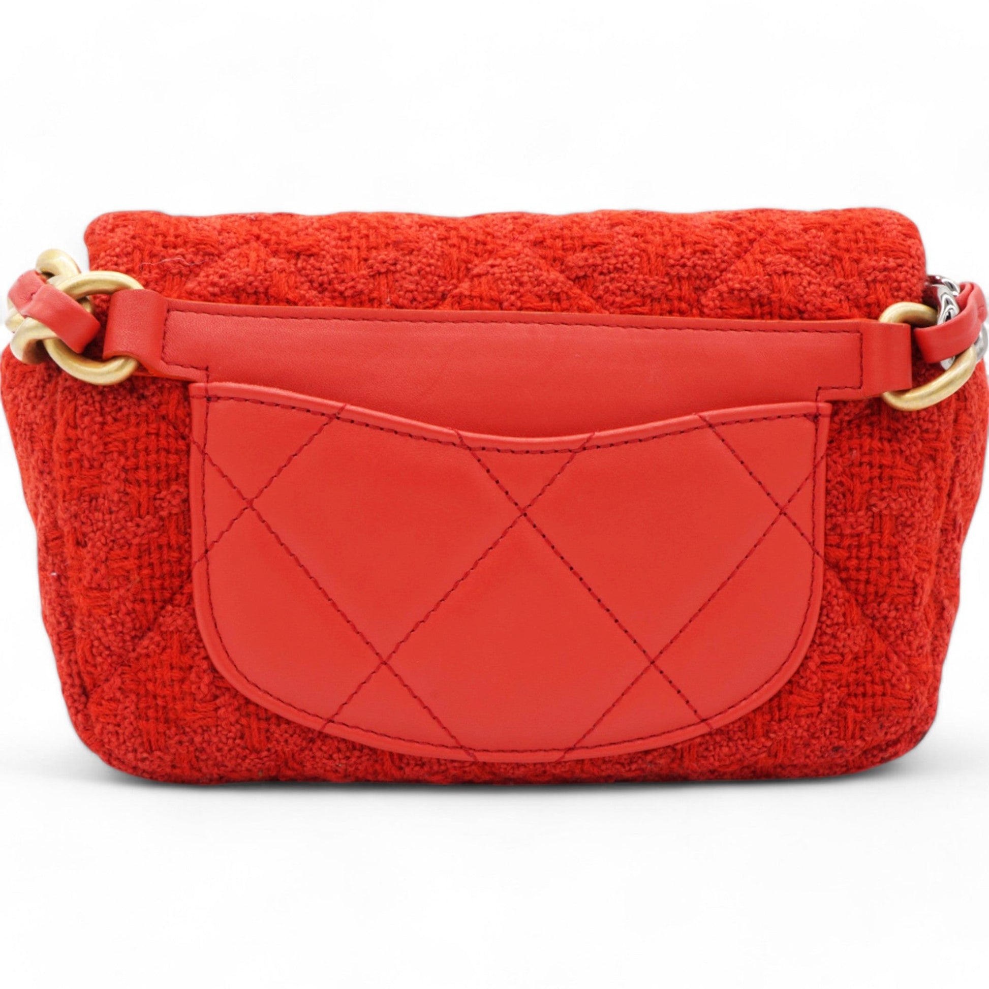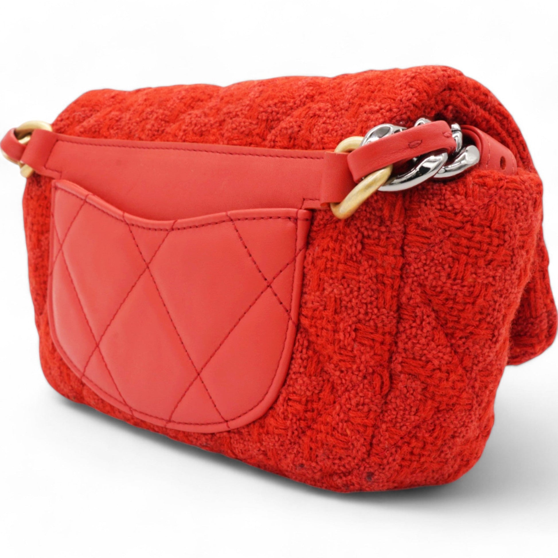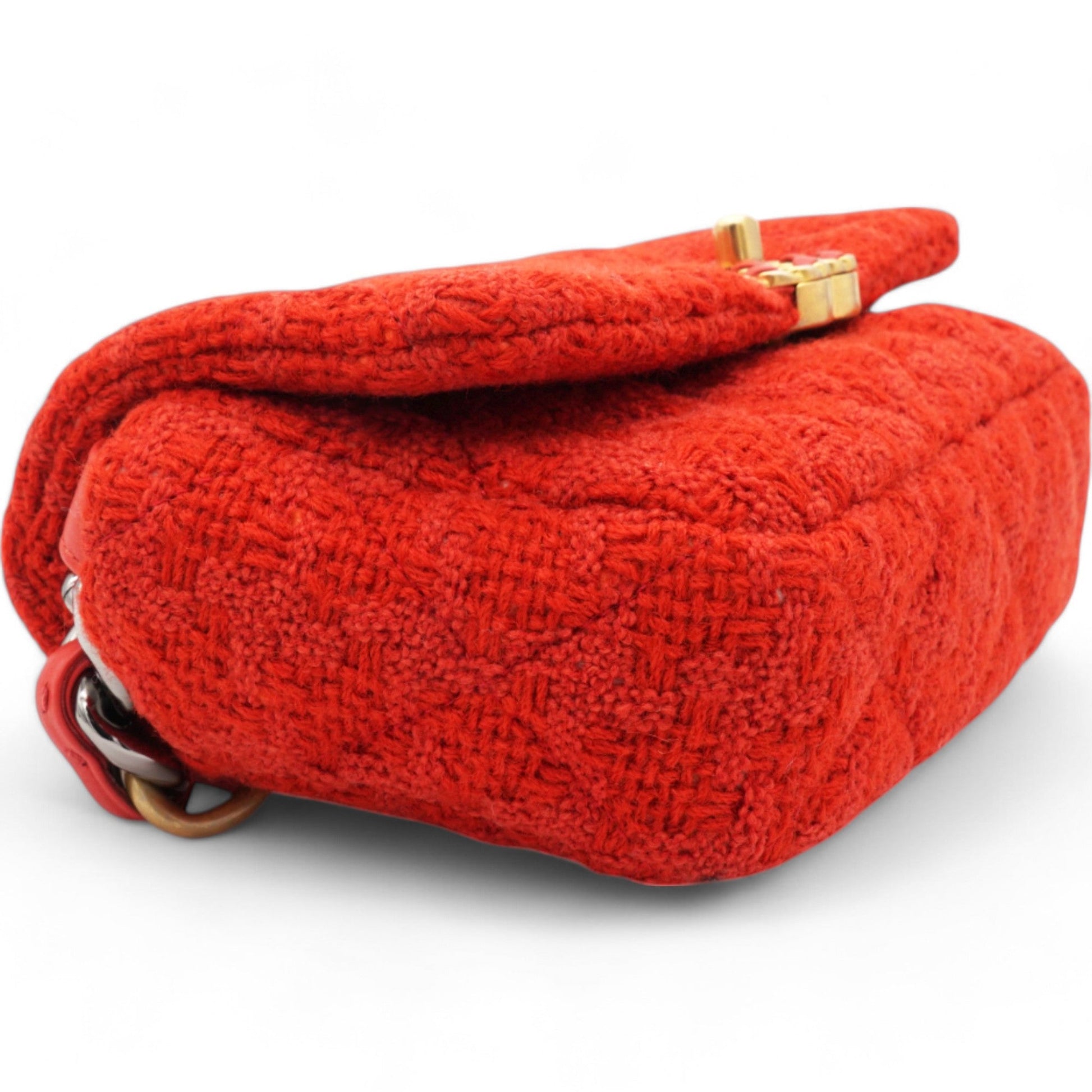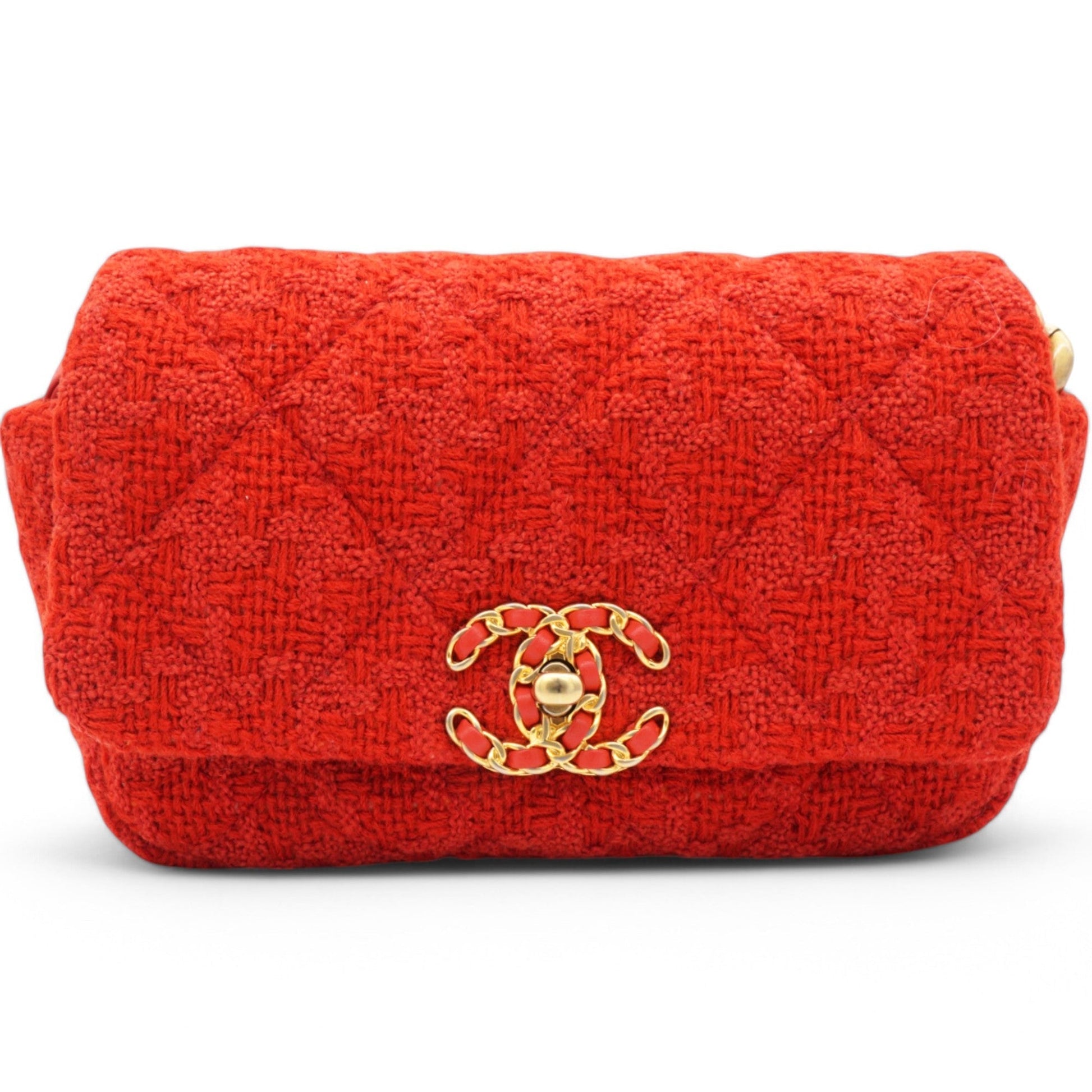 Chanel Tweed Quilted Chanel 19 Flap Red