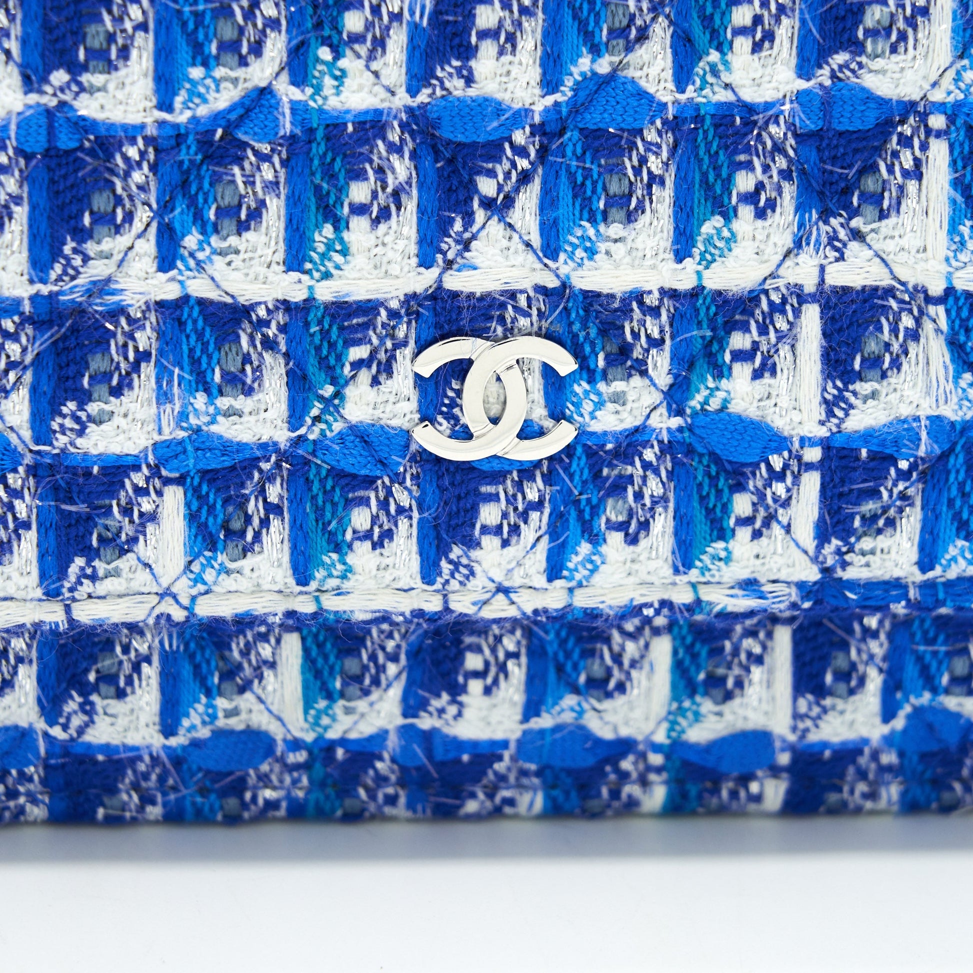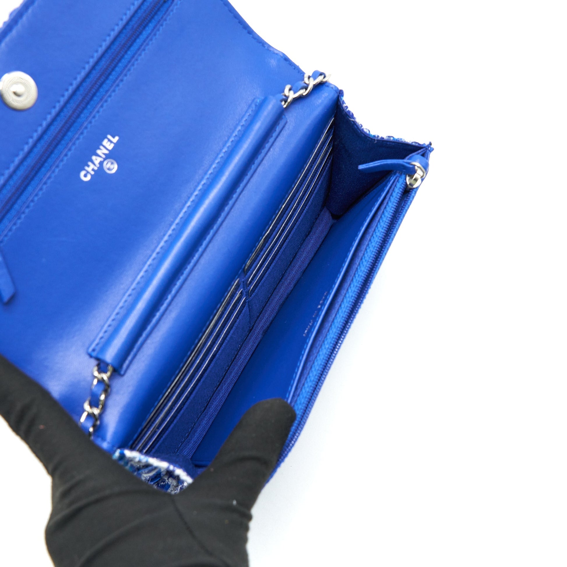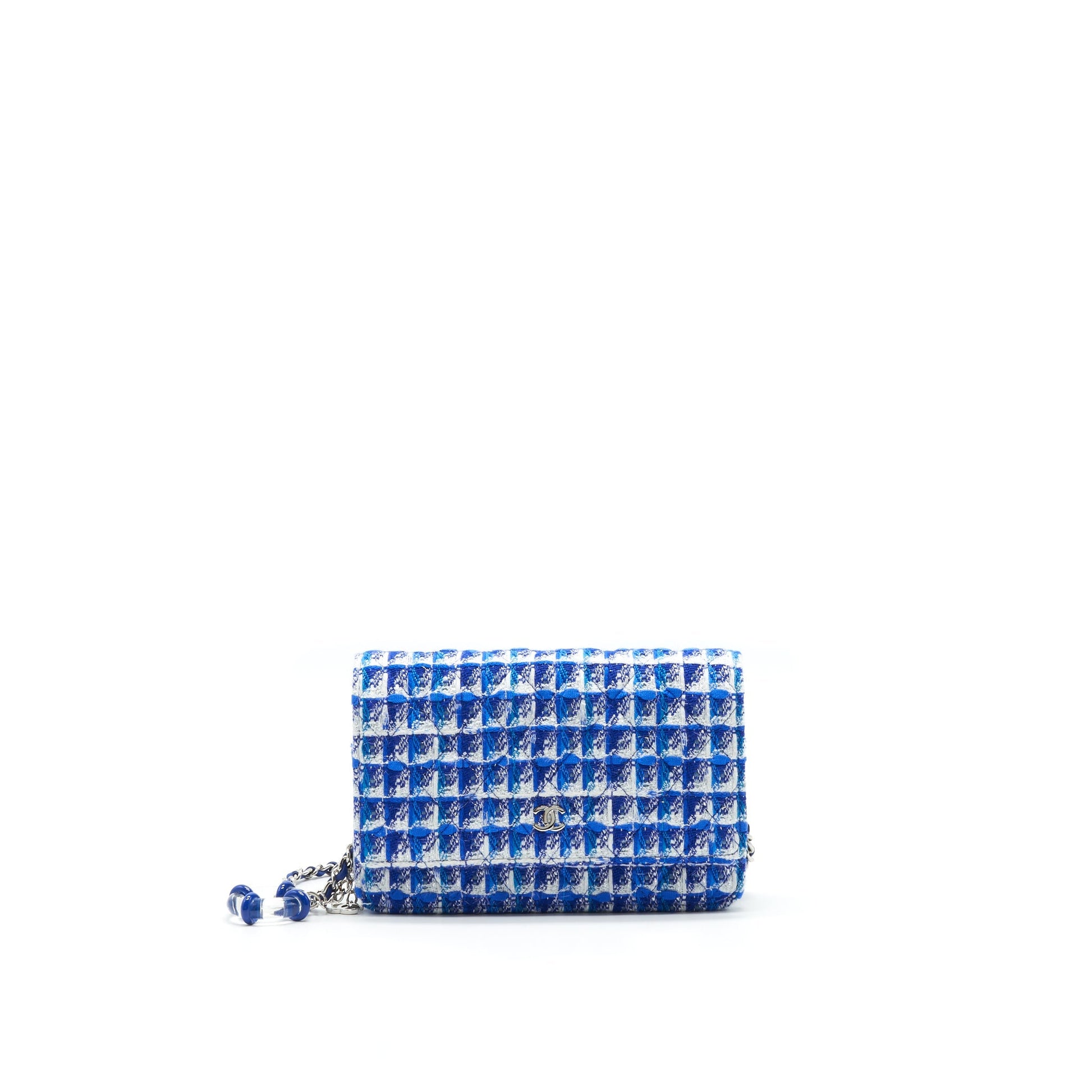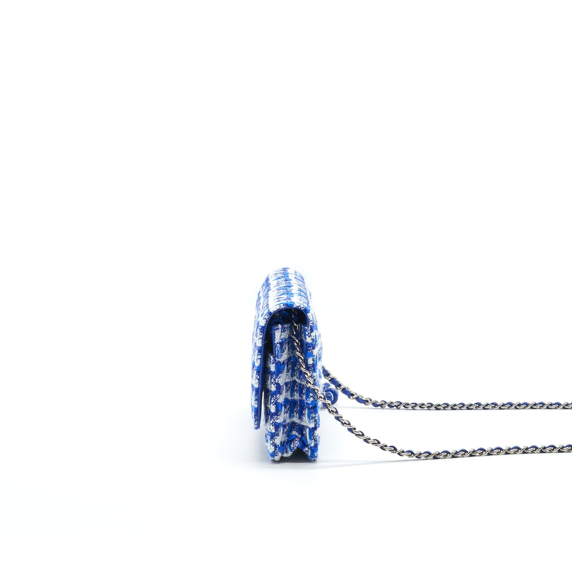 CHANEL Tweed Quilted Wallet On Chain WOC blue