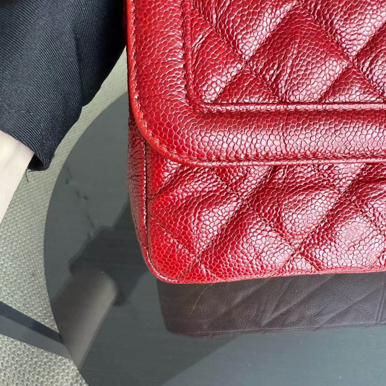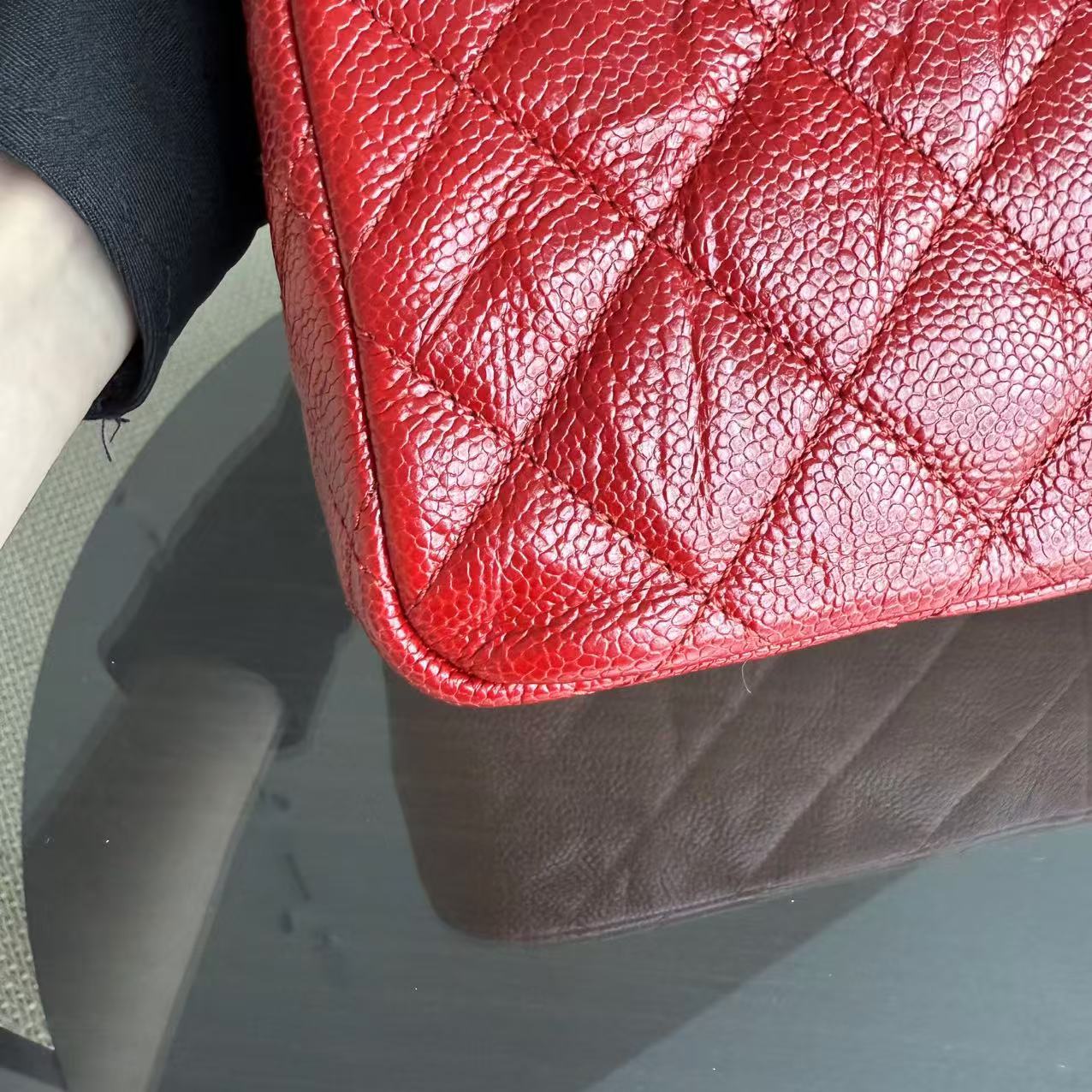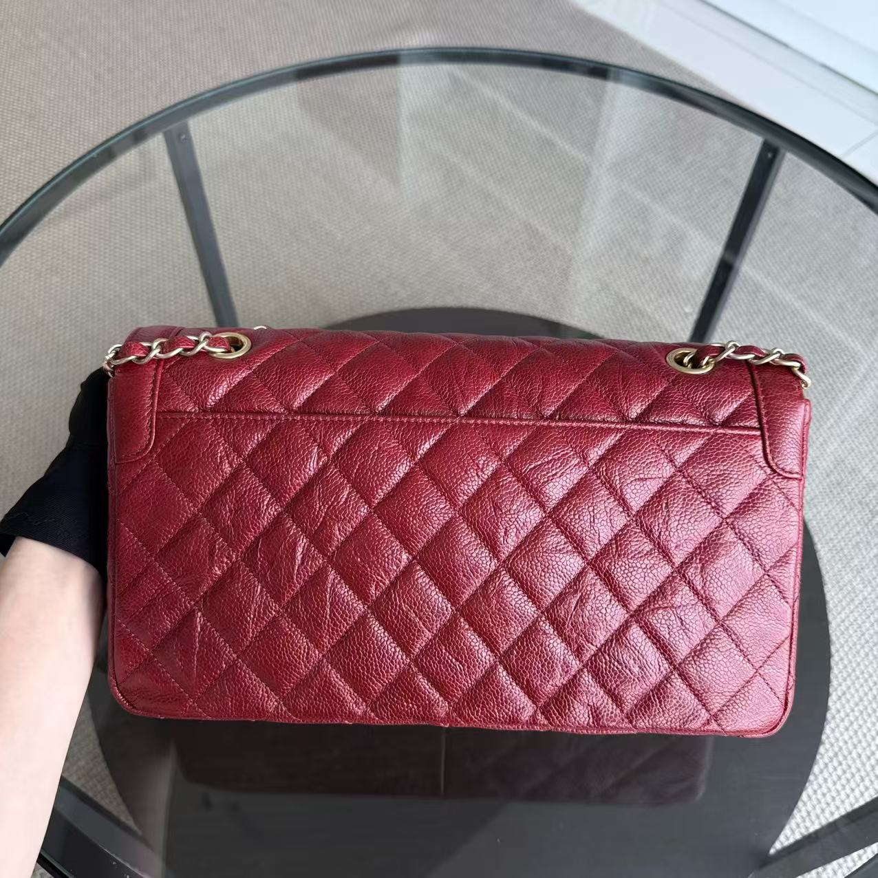 Chanel Two-Tone Crumpled Flap - Caviar 29CM Quilted Red Gold Hardware Series 21