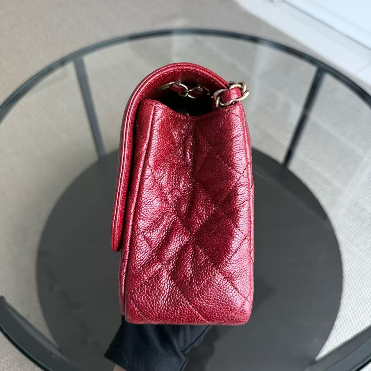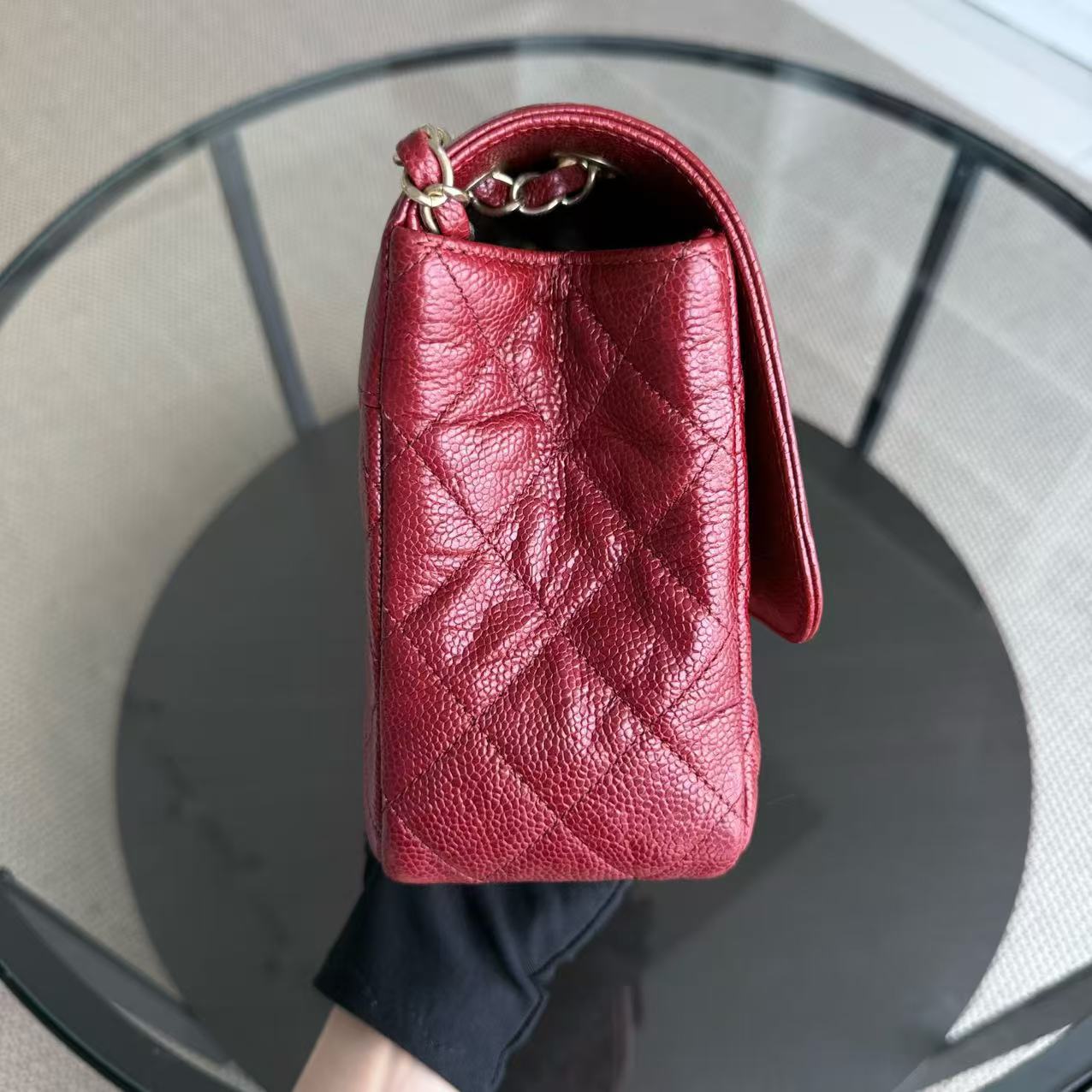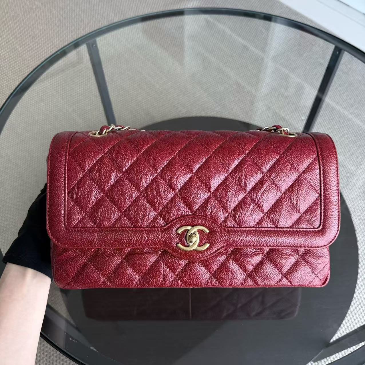 Chanel Two-Tone Crumpled Flap - Caviar 29CM Quilted Red Gold Hardware Series 21