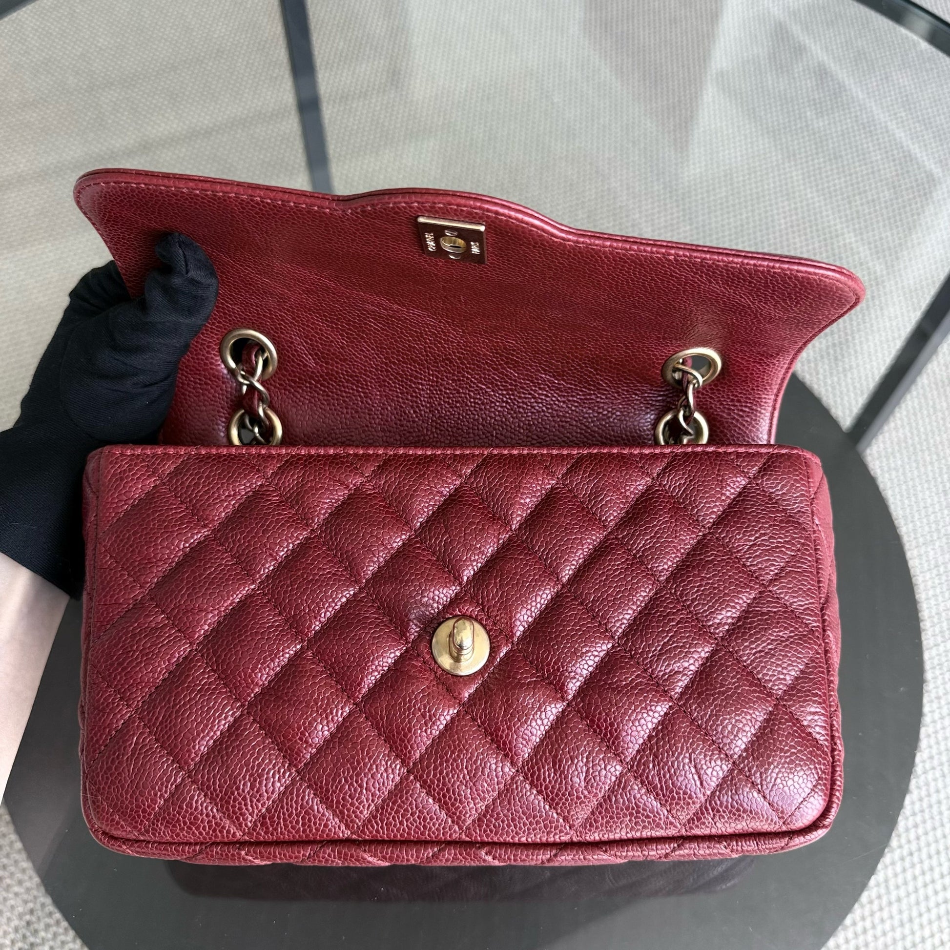Chanel Two-tone Seasonal Flap - 23CM Caviar Red Gold Hardware Series 21
