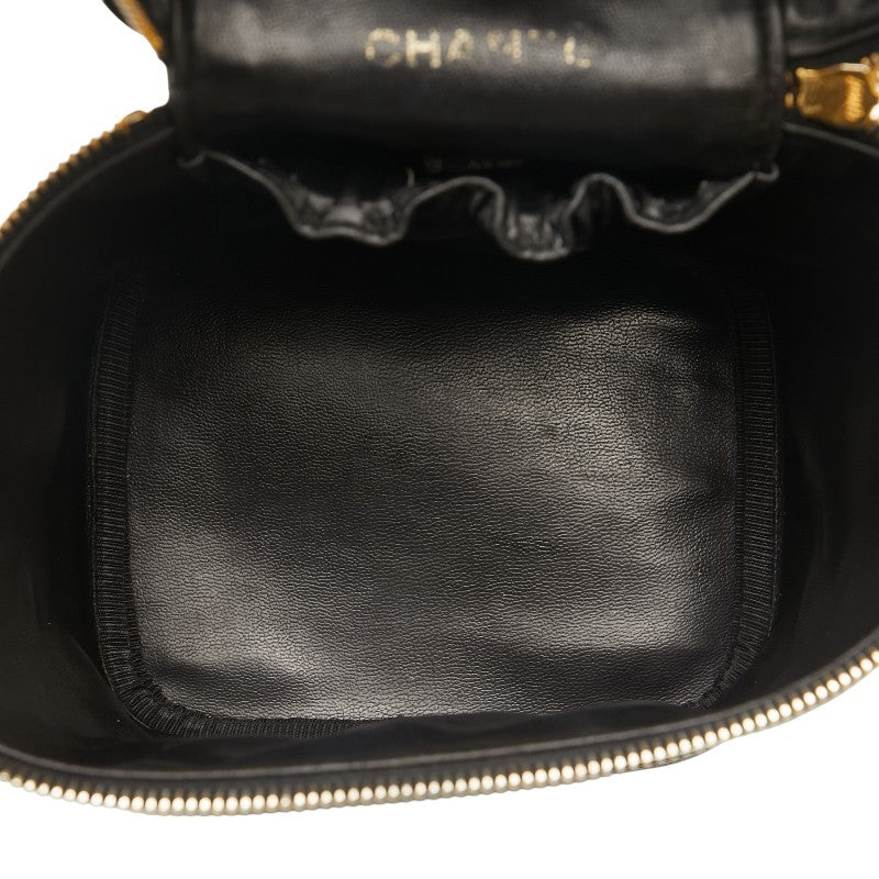 Chanel Caviar Skin Coco Mark Vanity Handbag Black Gold