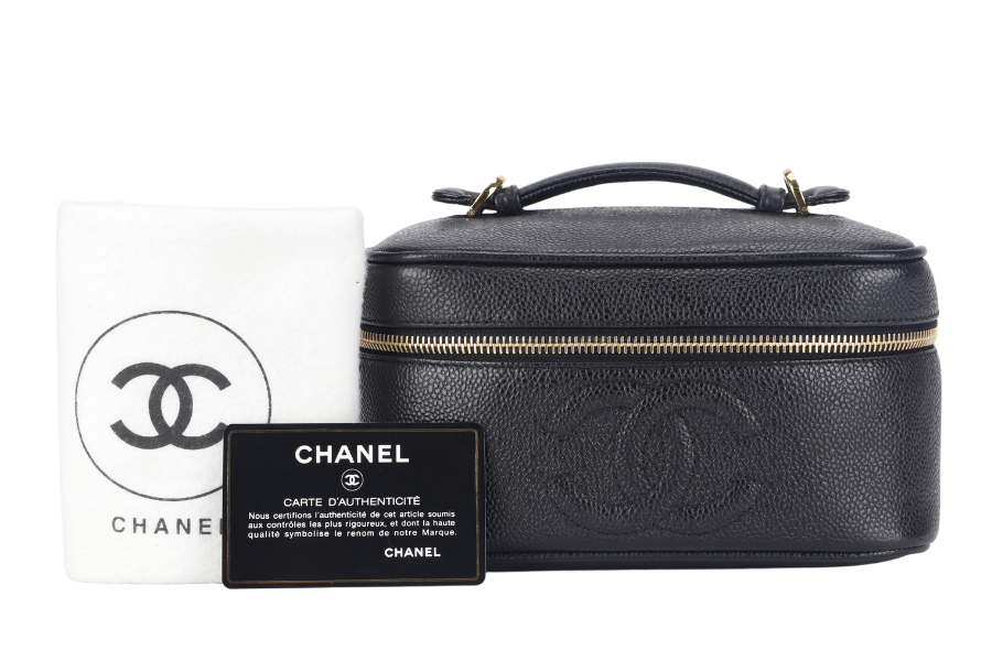 CHANEL VANITY CASE (351xxxx) CAVIAR LEATHER GOLD HARDWARE WITH DUST COVER NO STRAPS
