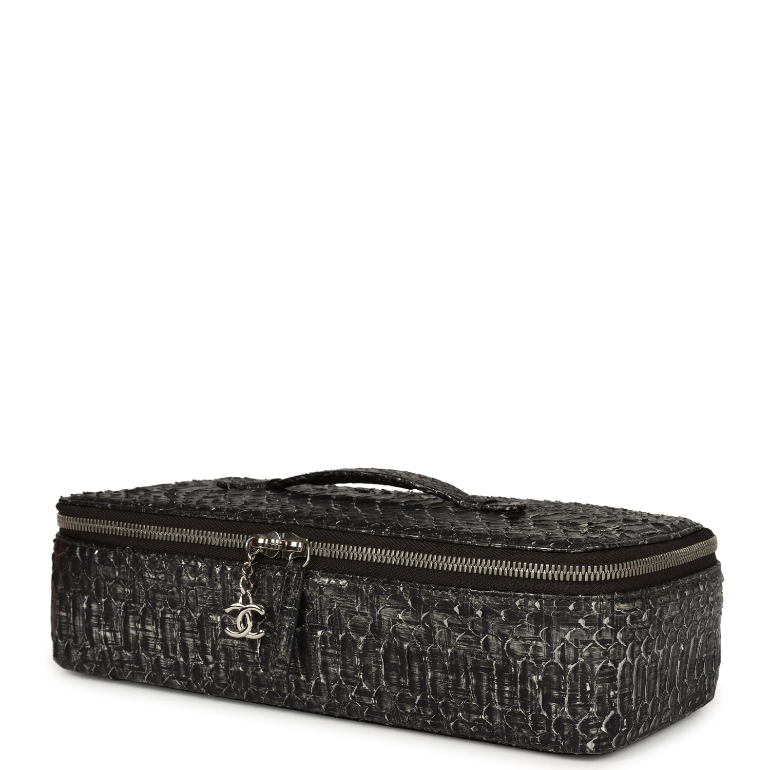 Chanel Vanity Case Black Metallic Python Silver Hardware
