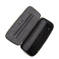 The interior is made of black fabric and has one storage pocket and two zip pouch pockets.