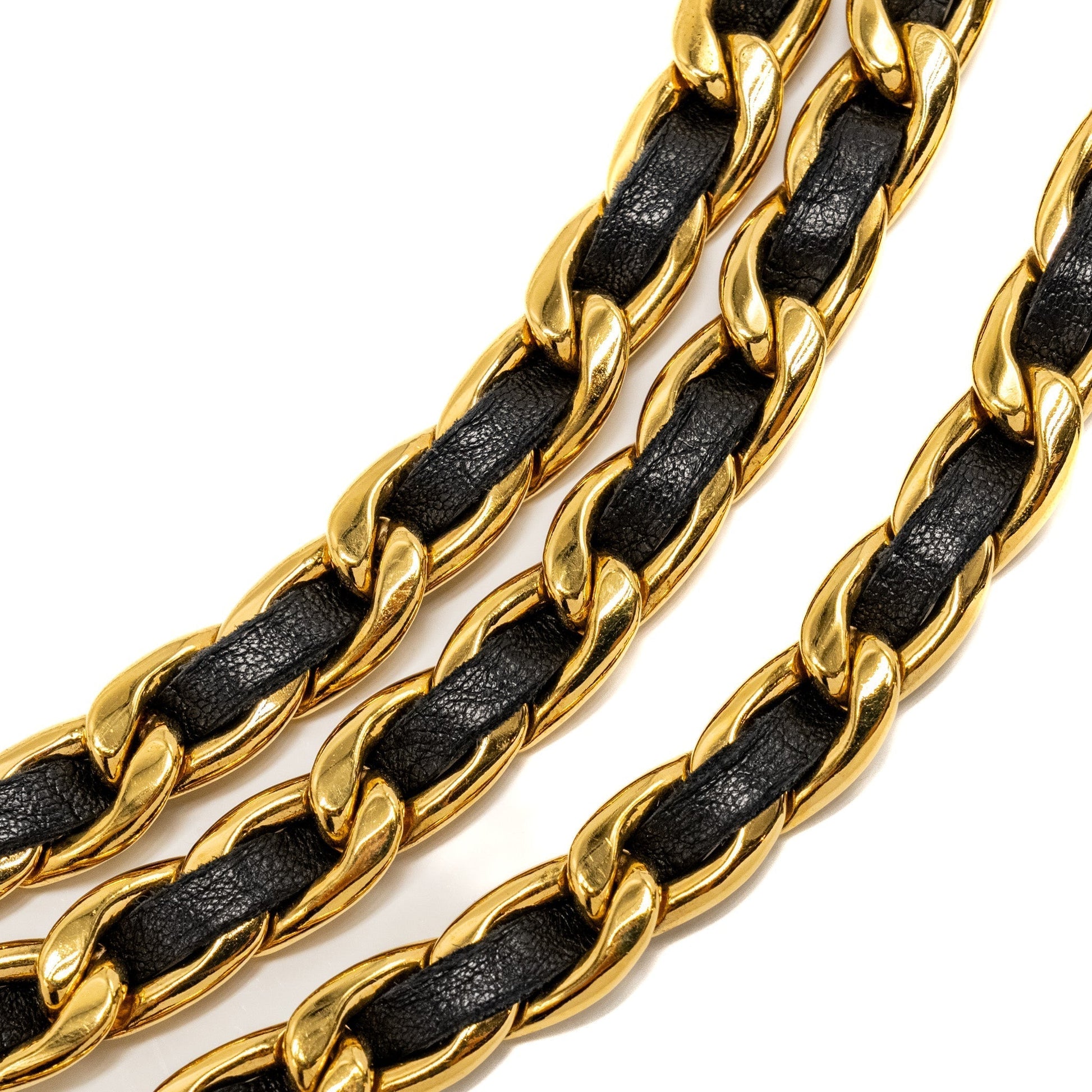 Chanel Vintage 3-Tier Strand Leather Chain Belt Lambskin 24k Gold Plated