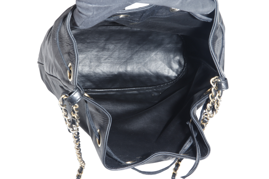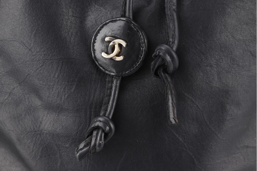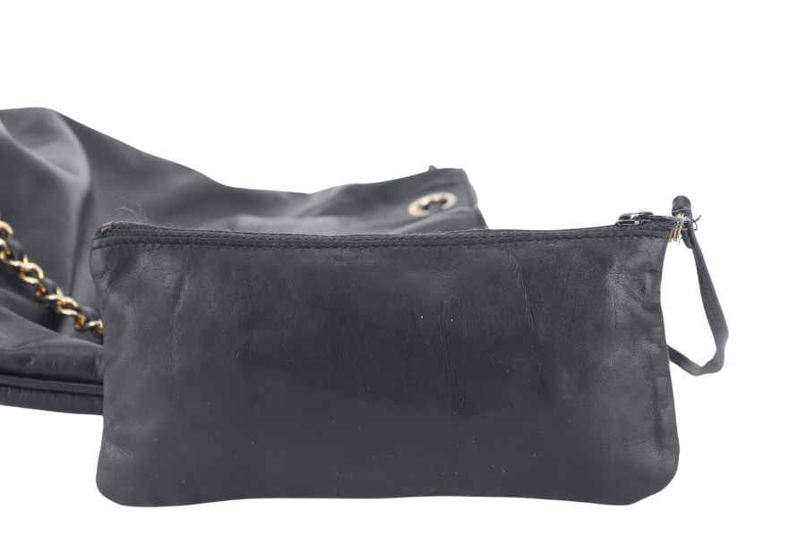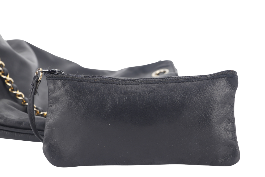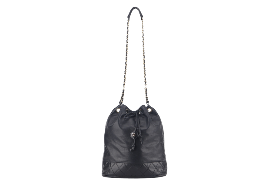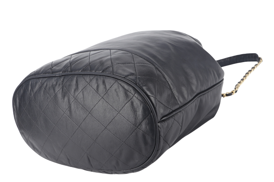 CHANEL VINTAGE BLACK LAMBSKIN BUCKET BAG WITH COIN POUCH GOLD HARDWARE NO HOLO, NO AND NO DUST COVER