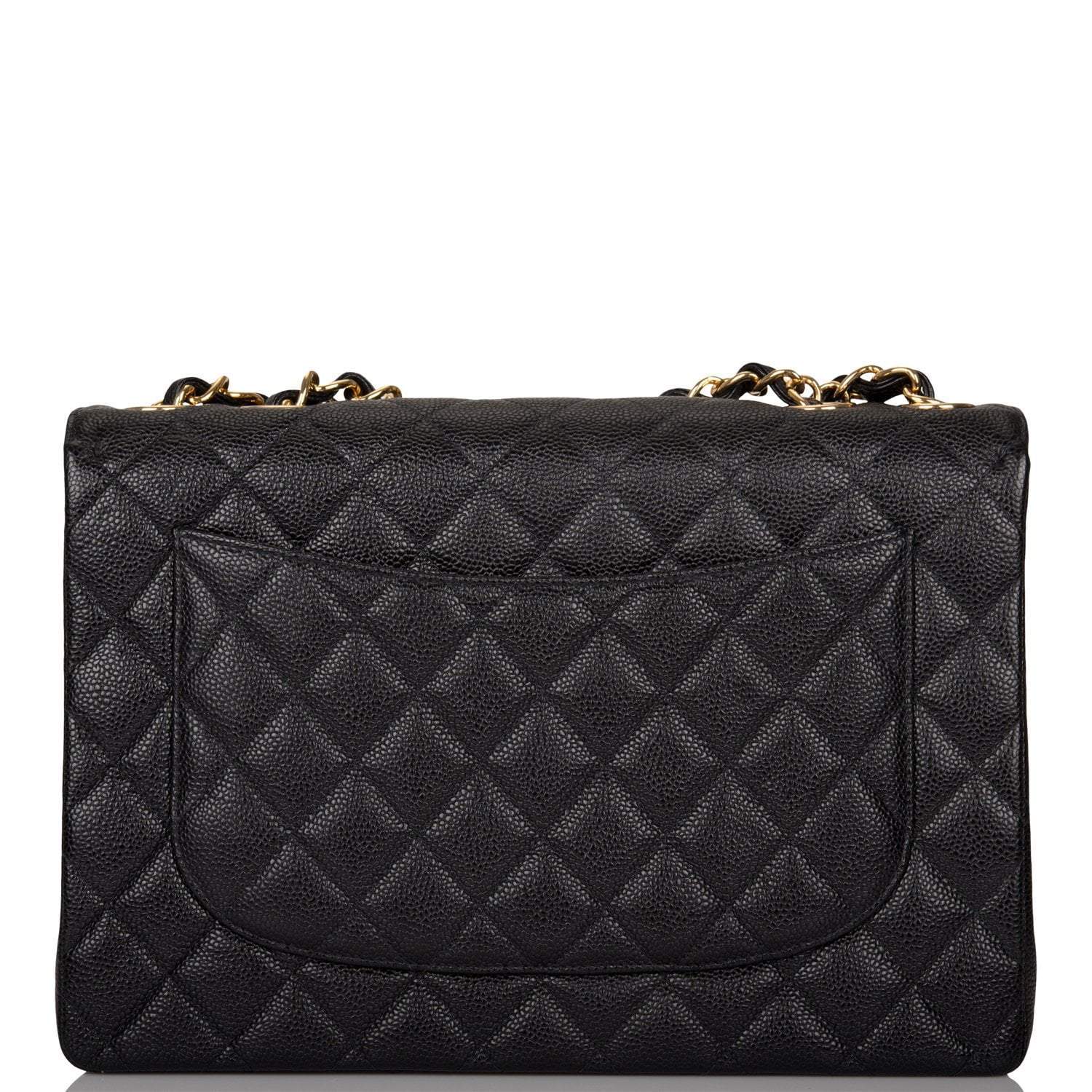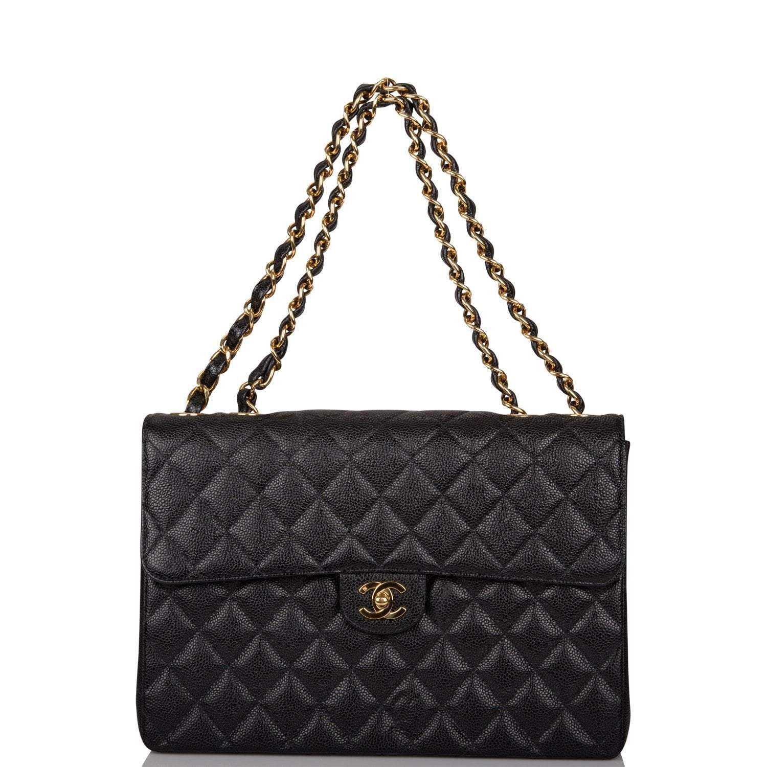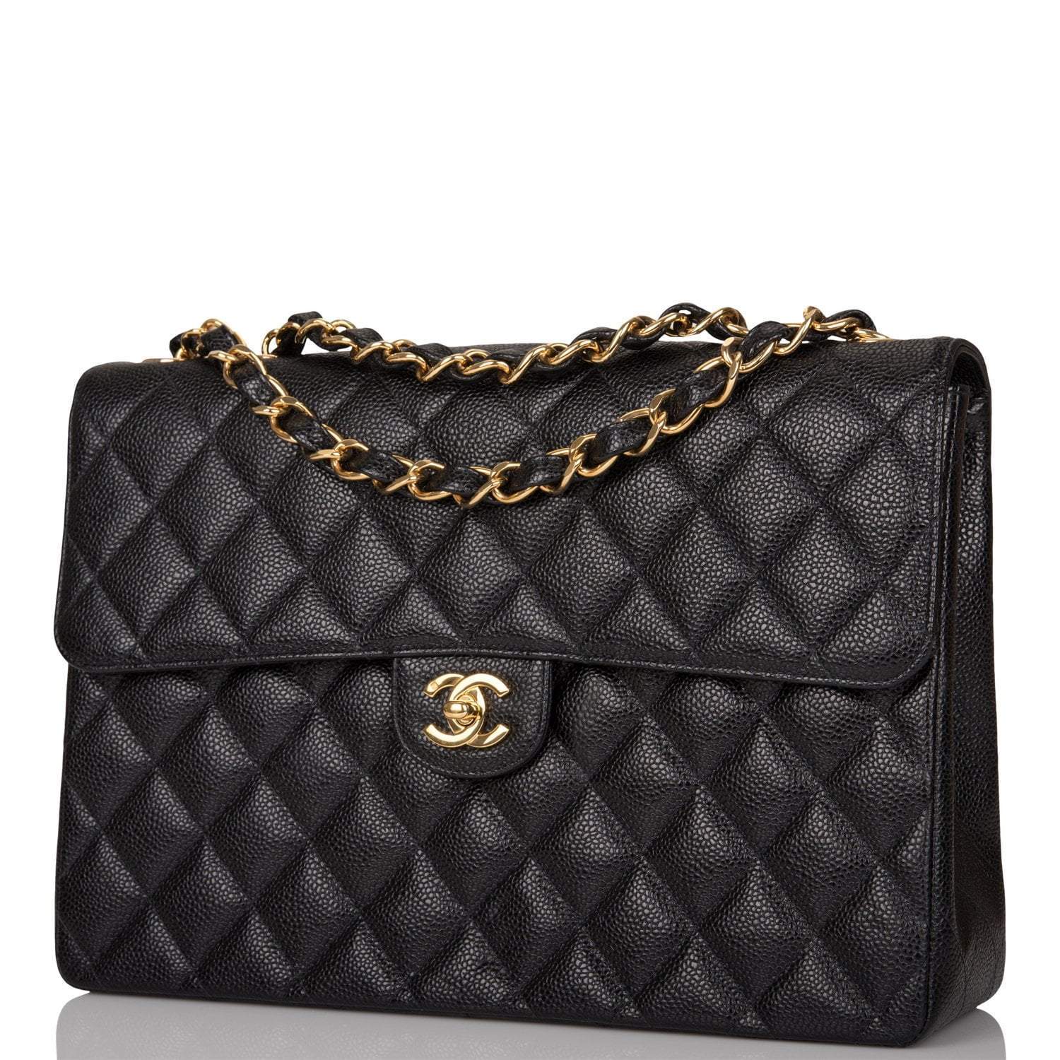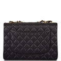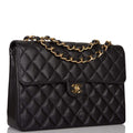 Chanel Vintage Black Quilted Caviar Jumbo Single Flap Bag Gold Hardware