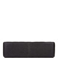 The interior is lined in black leather and has one open slit pocket and one zipper compartment on the rear wall.
