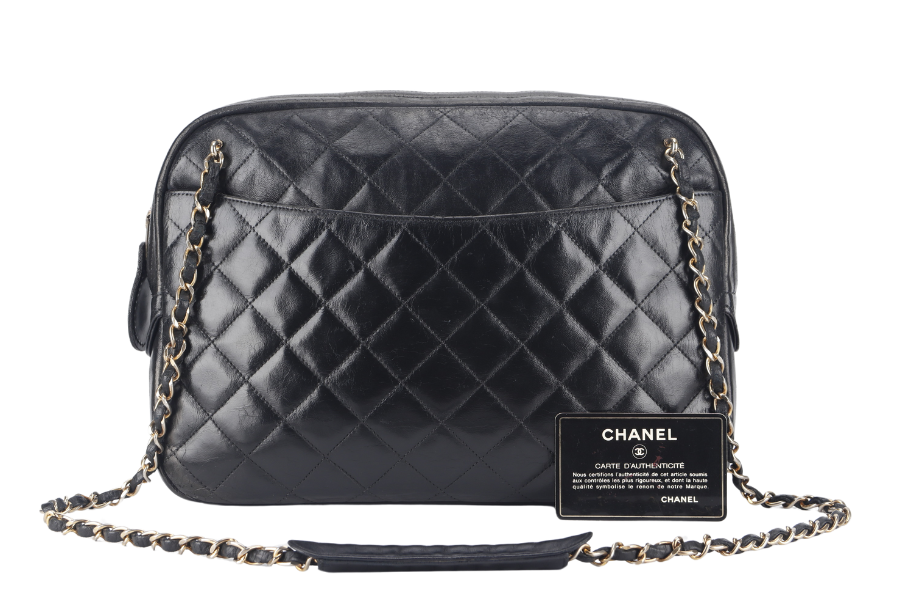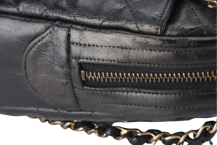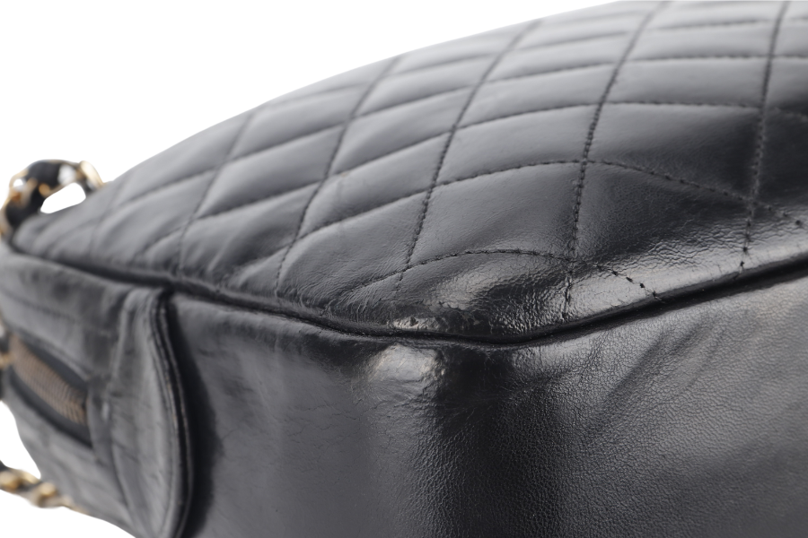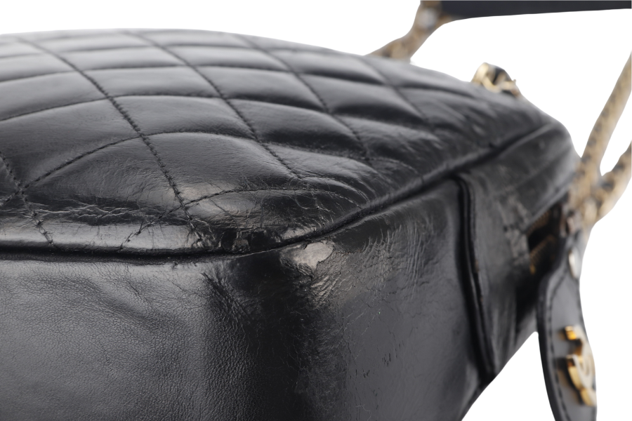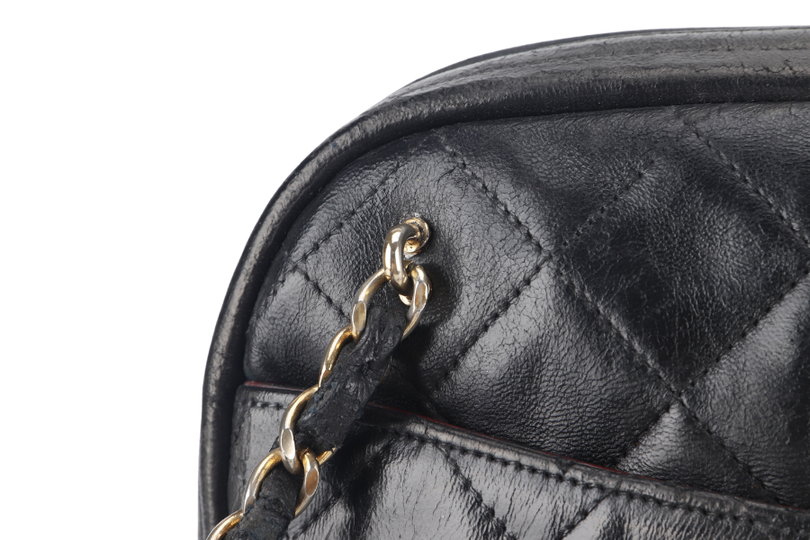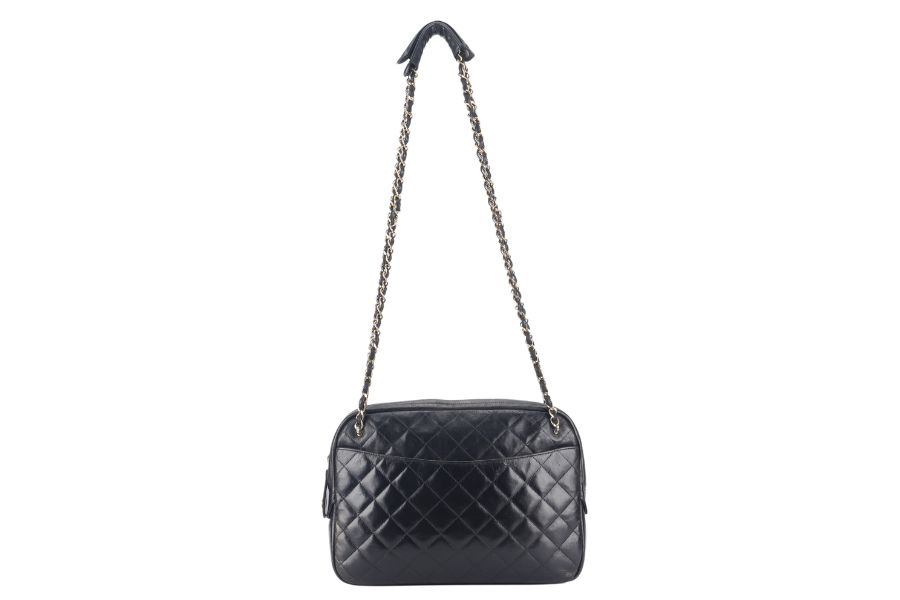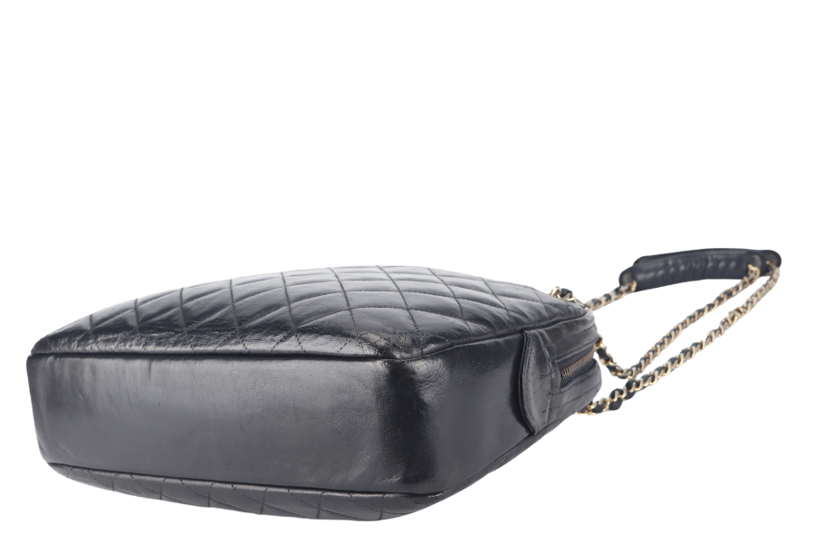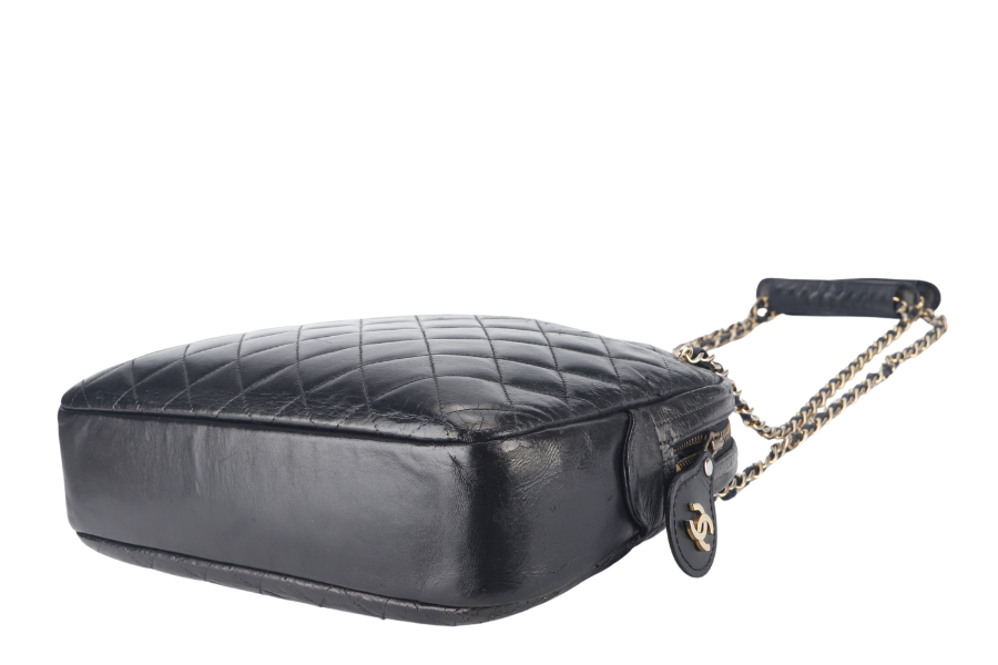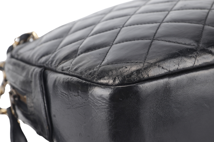 CHANEL VINTAGE CAMERA BAG (117xxxx) MEDIUM BLACK LAMBSKIN QUILTED GOLD HARDWARE NO DUST COVER